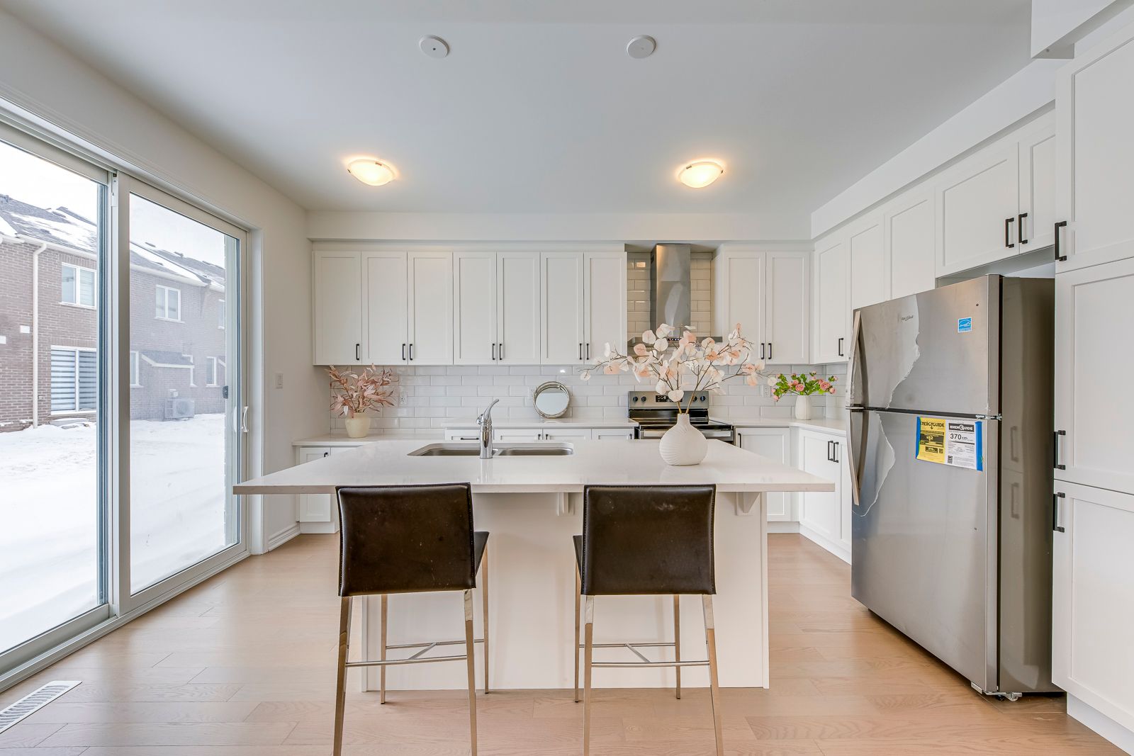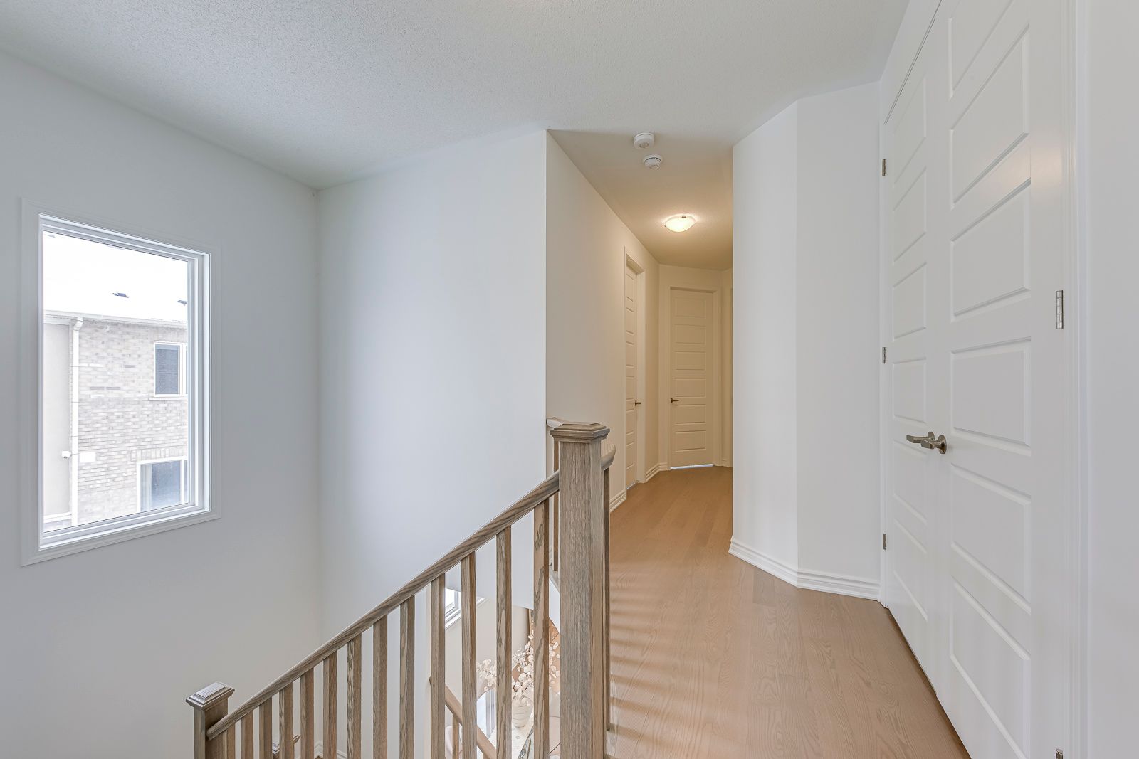 One-year-new, never-lived-in fully upgraded 1938 sq. Ft. End unit townhouse located on a quiet street of milton's mostdesirable new development subdivisions. This sun-filled home offers a thoughtfully designed layout featuring 4 spacious bedrooms, 3 modernwashrooms, 2 walk-in closets and 9 feet ceilings on both main and second floor. The open-concept main floor features abundant natural light,and a modern kitchen with a large center island, high-end cabinetry, and upgraded quartz countertops. Tasteful hardwood flooring andstaircases add elegance throughout the home, while upgraded porcelain tiles enhance all washrooms. As an end unit, this home enjoys addedprivacy and natural light, with one side backing onto peaceful backyard green space. Ideally located close to the community centre, schools,shopping, public transit, major highways, and all essential amenities, this home offers both comfort and convenience.