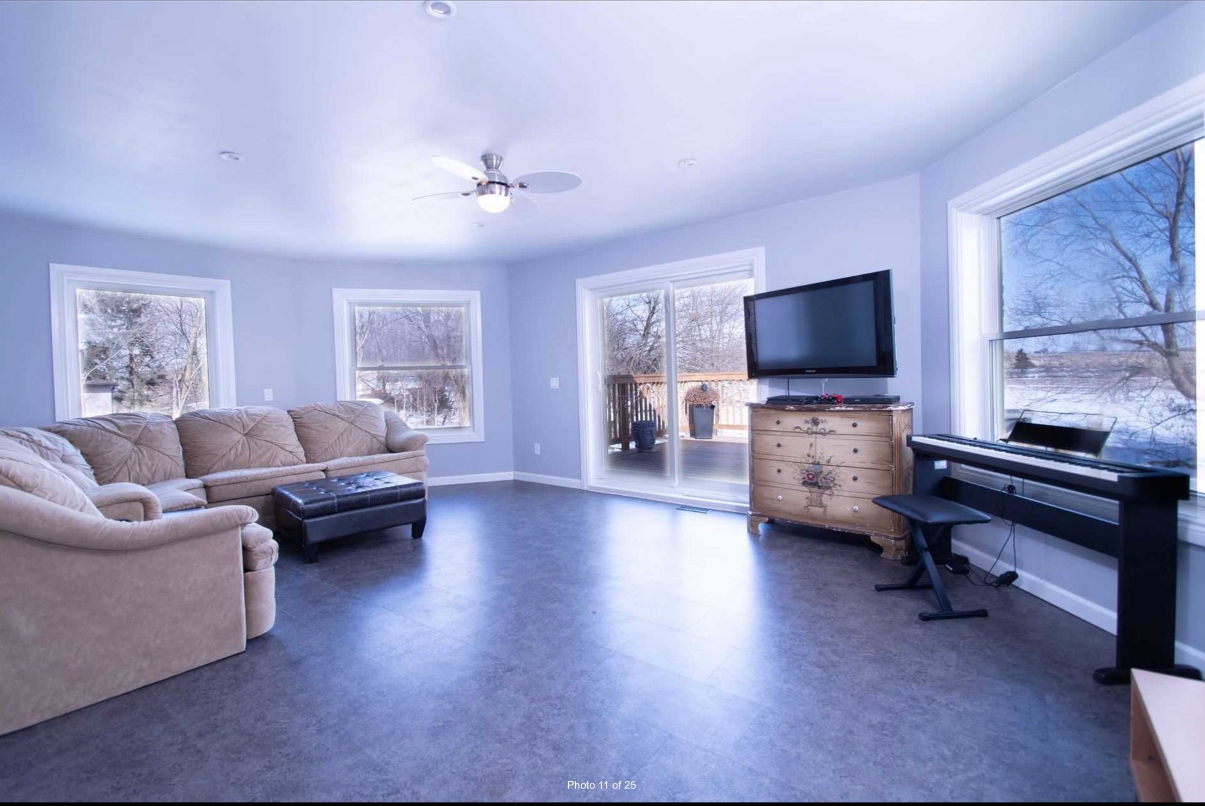 Large custom built home on over 1/2 acre lot backing on to farmland. Large family size kitchen open to bright family room with walkout to large deck, spacious rooms, many recent upgrades, zoning allows for home based business. Very bright and spacious finished walk out basement with 4 br's recently renovated kitchen, separate entrance from garage & office walkout, separate laundry room.
