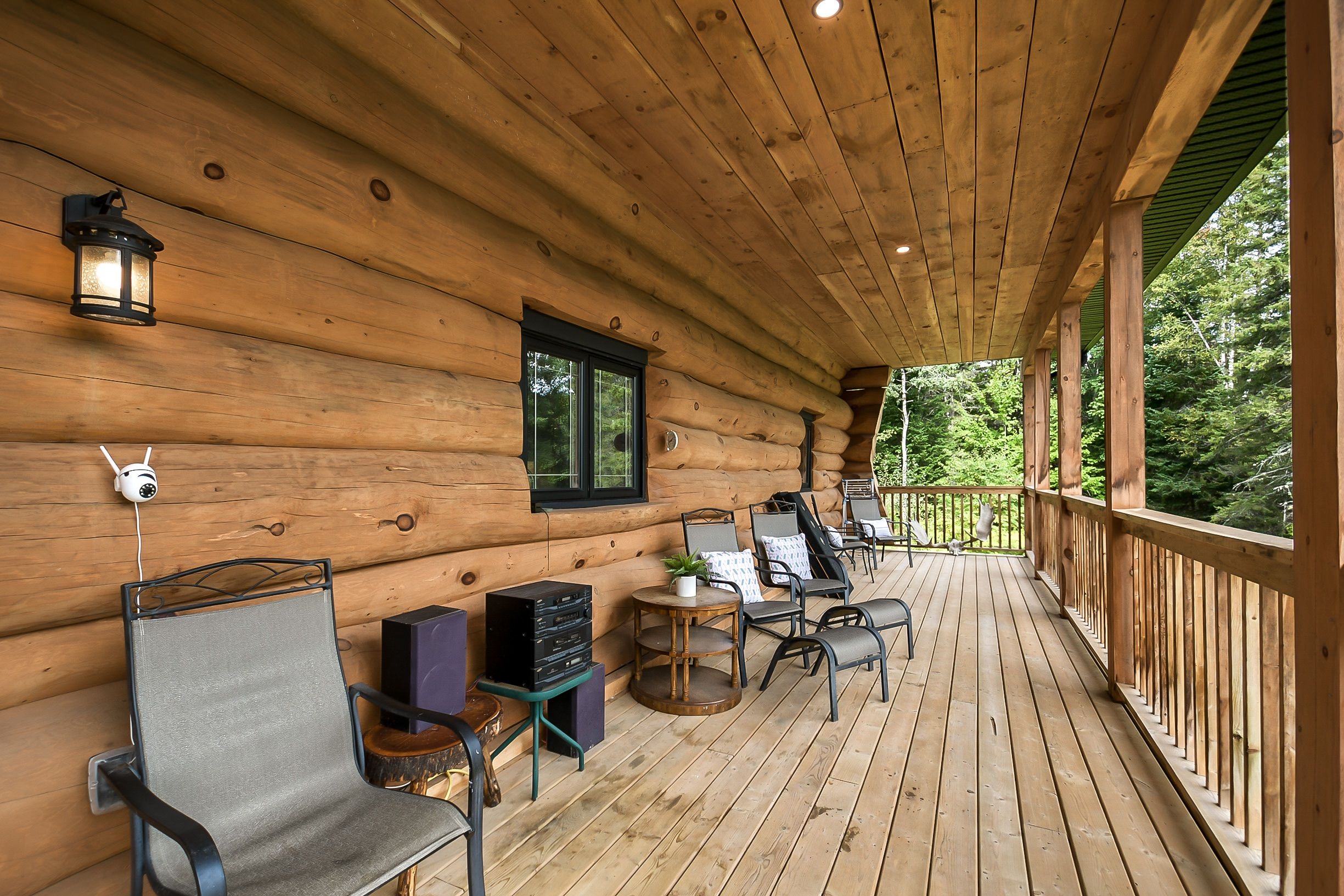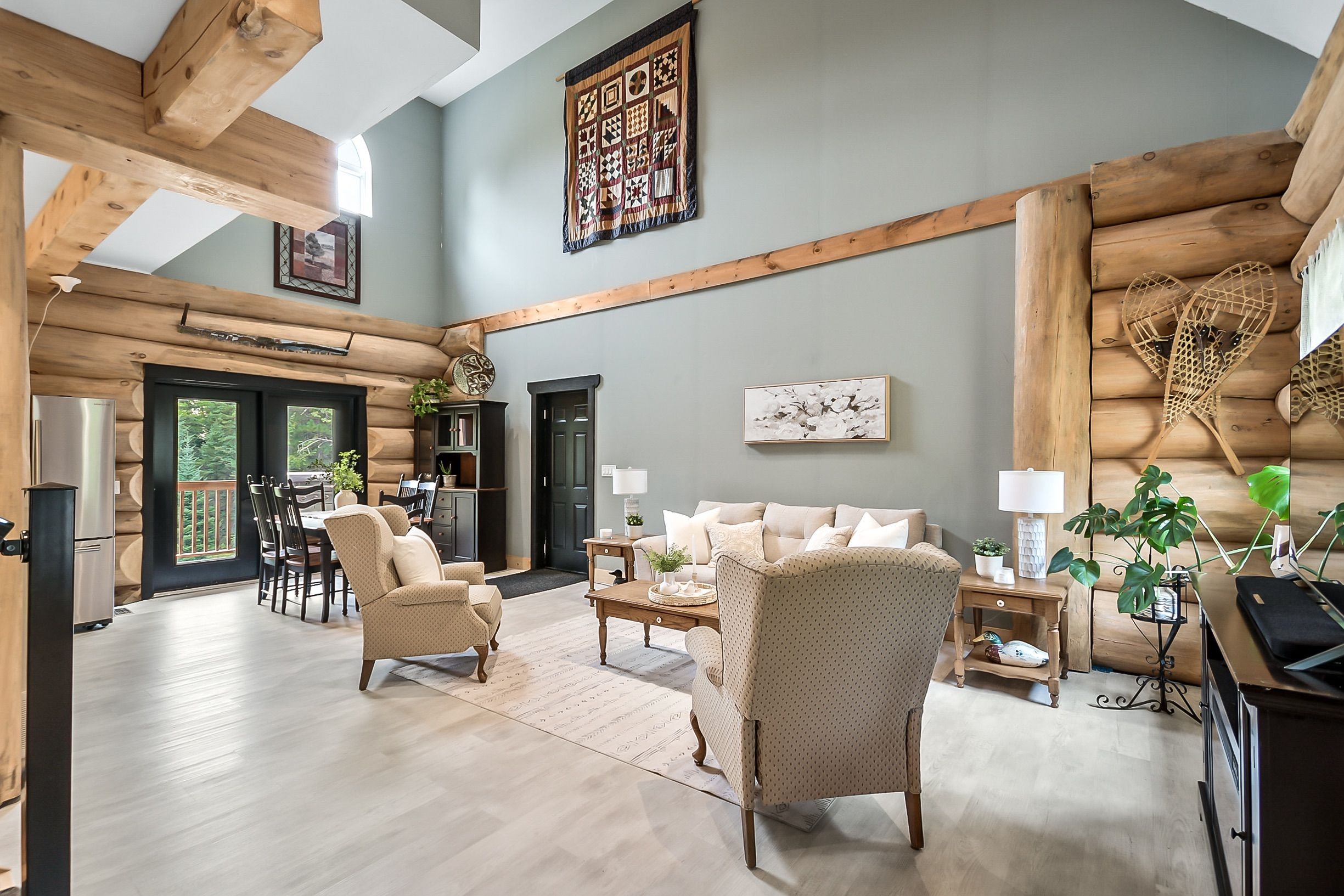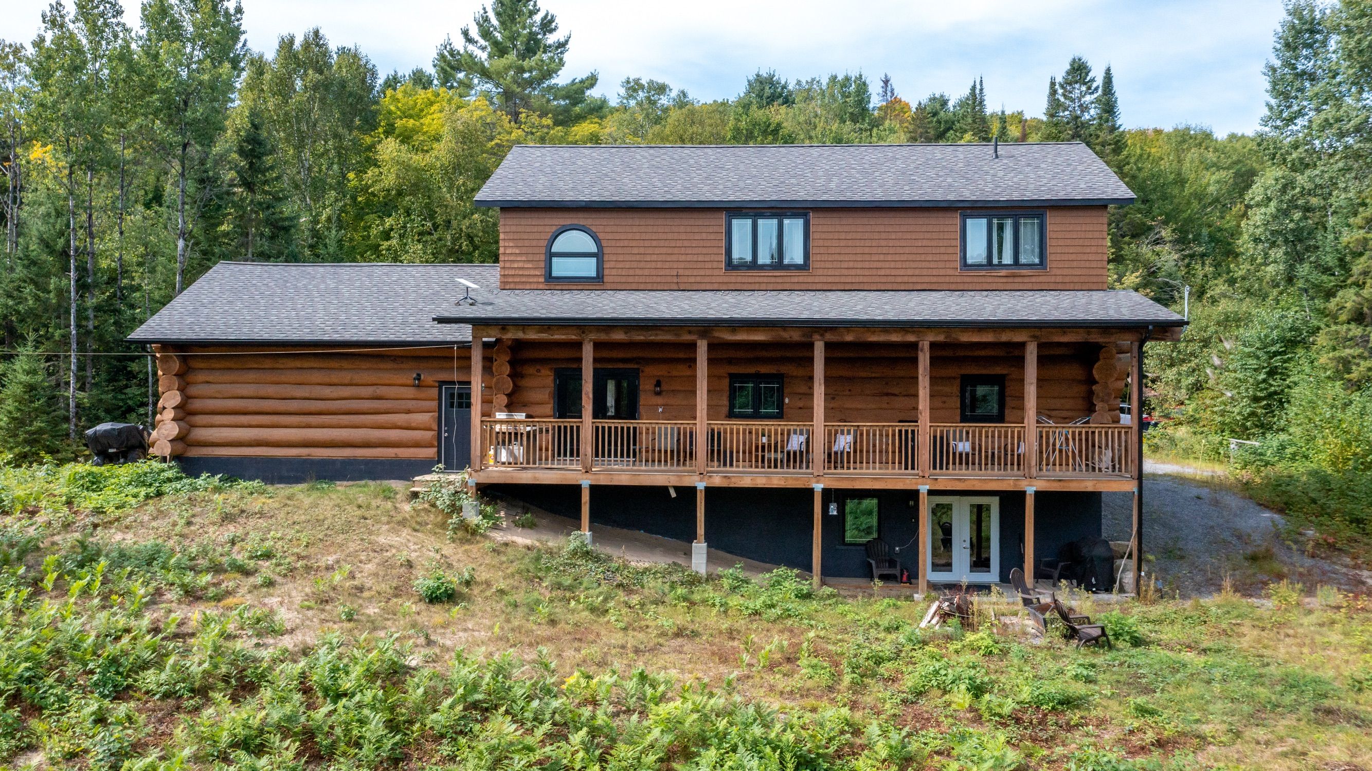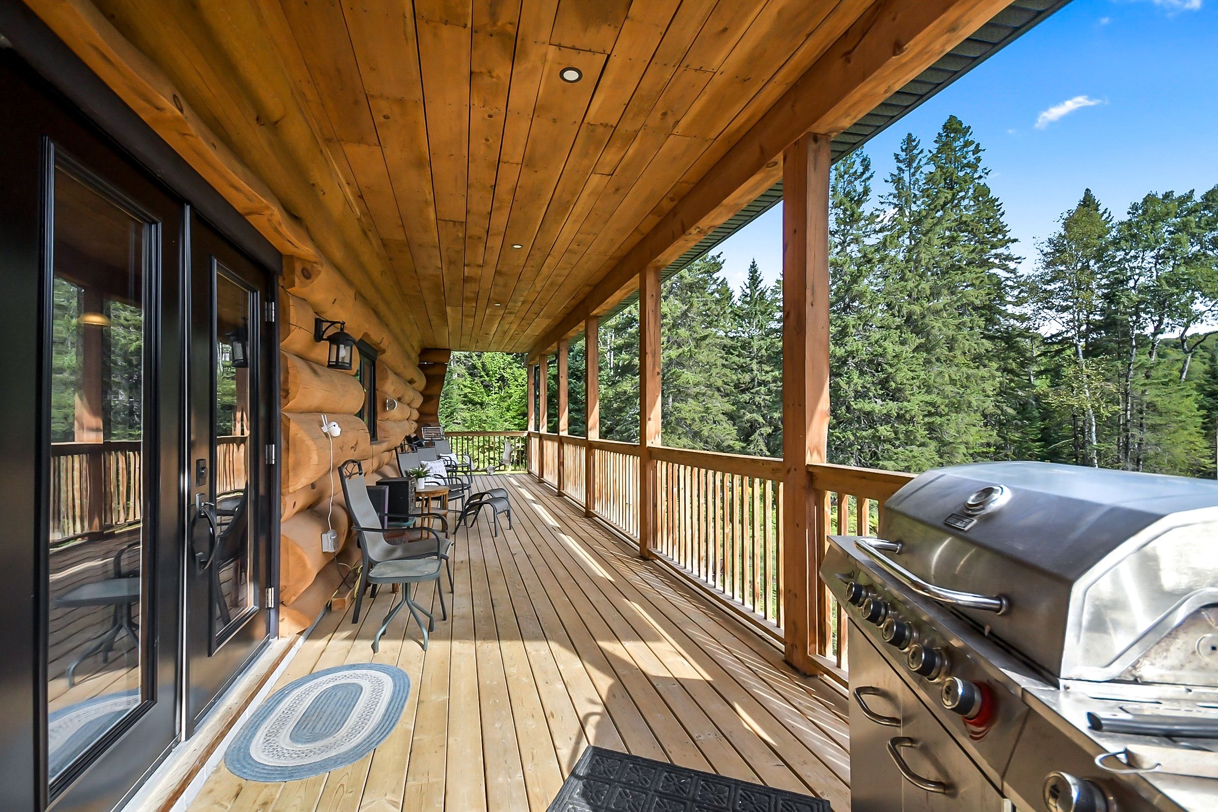 • Custom-built log home set on a peaceful 2.5-acre property.