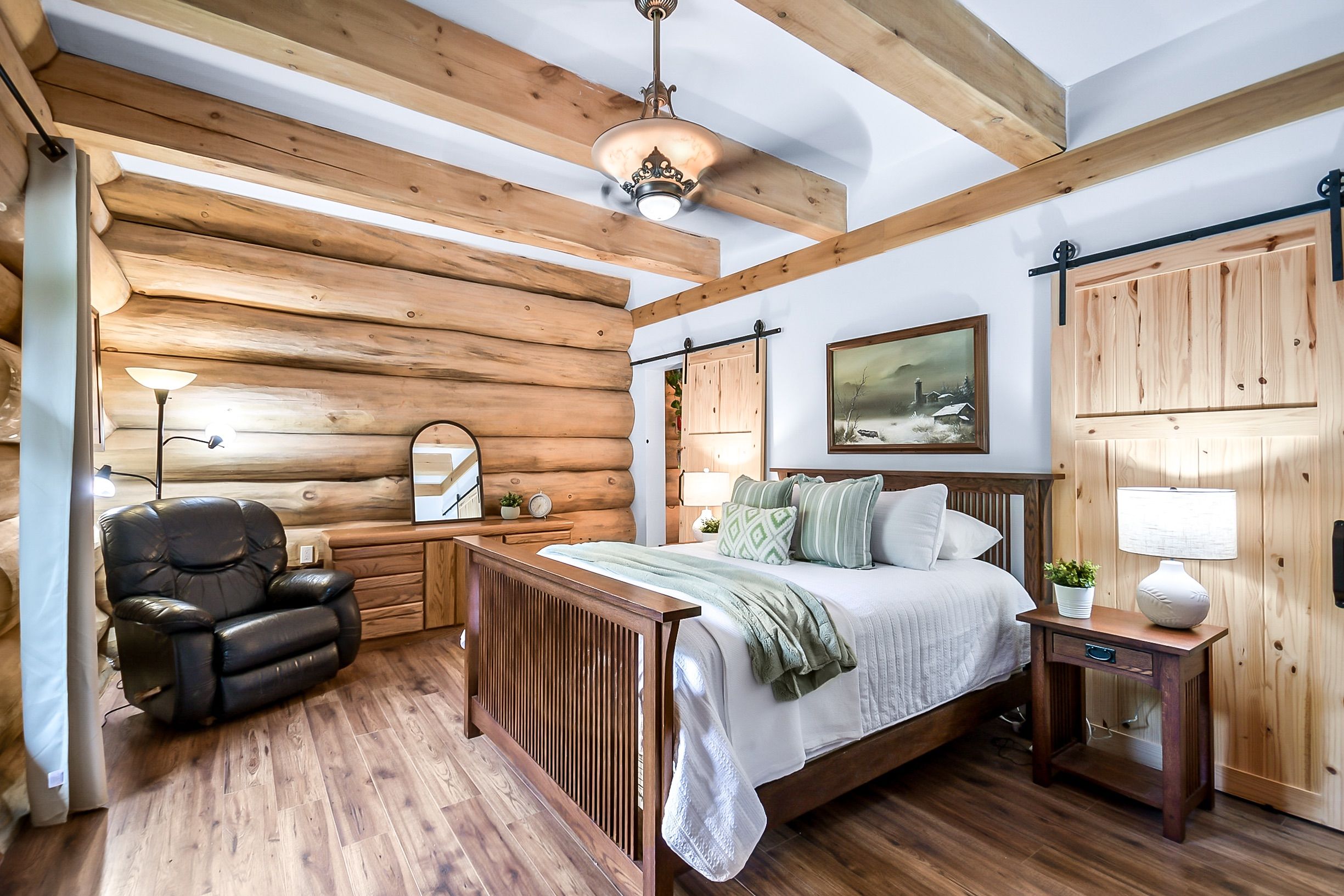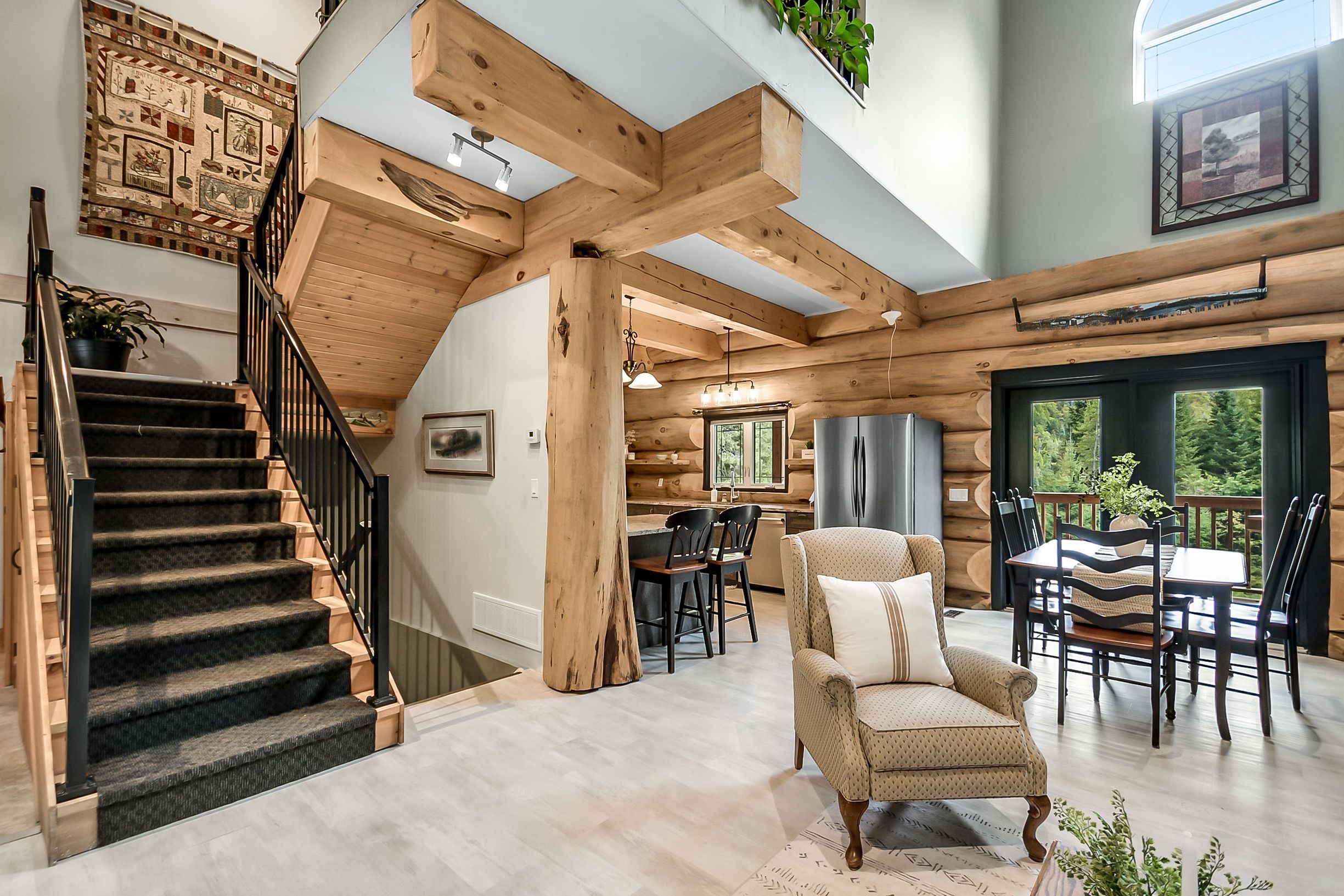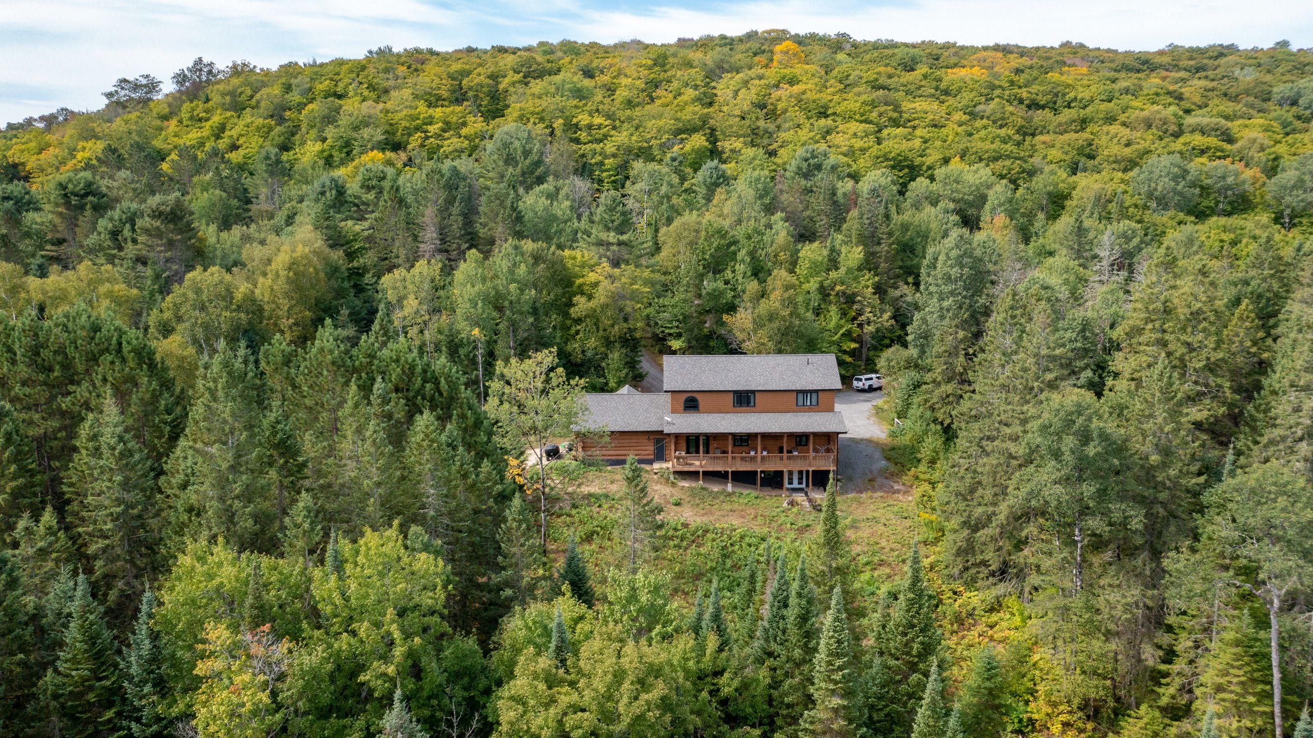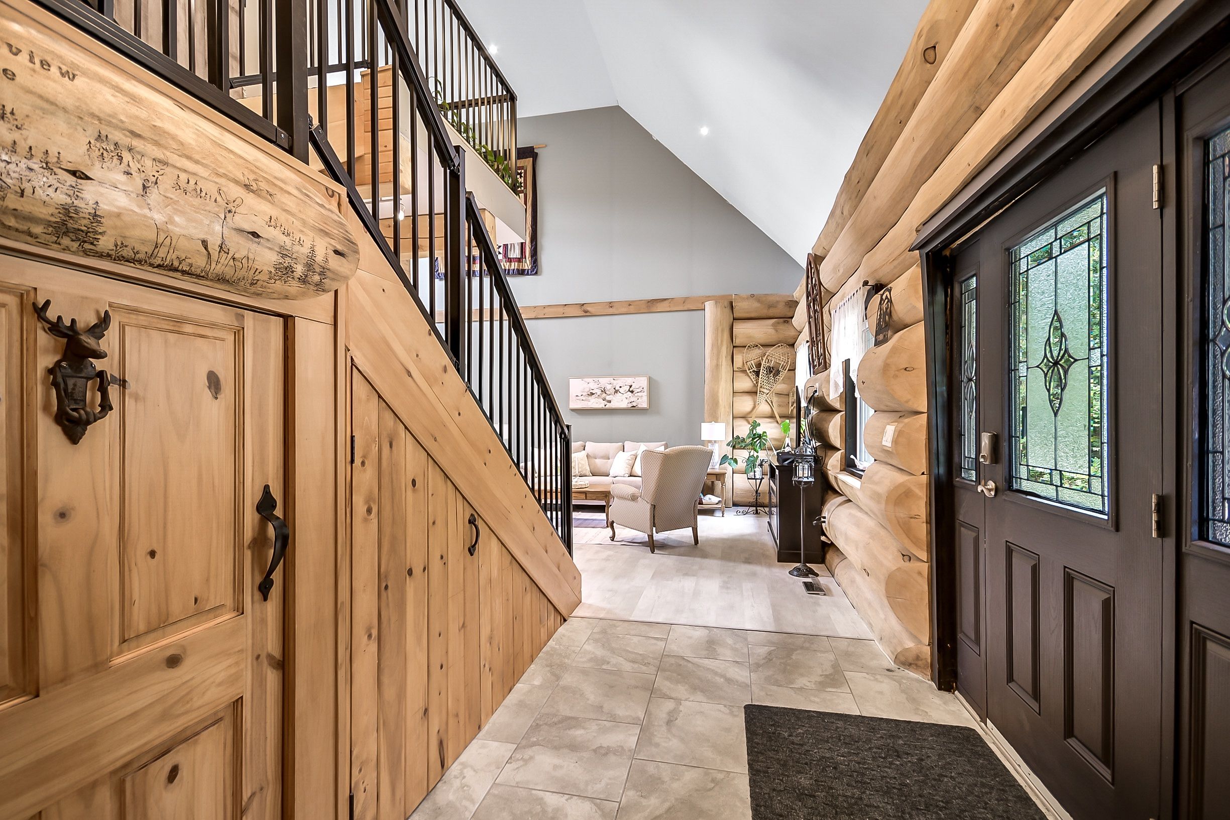• Custom-built log home set on a peaceful 2.5-acre property.