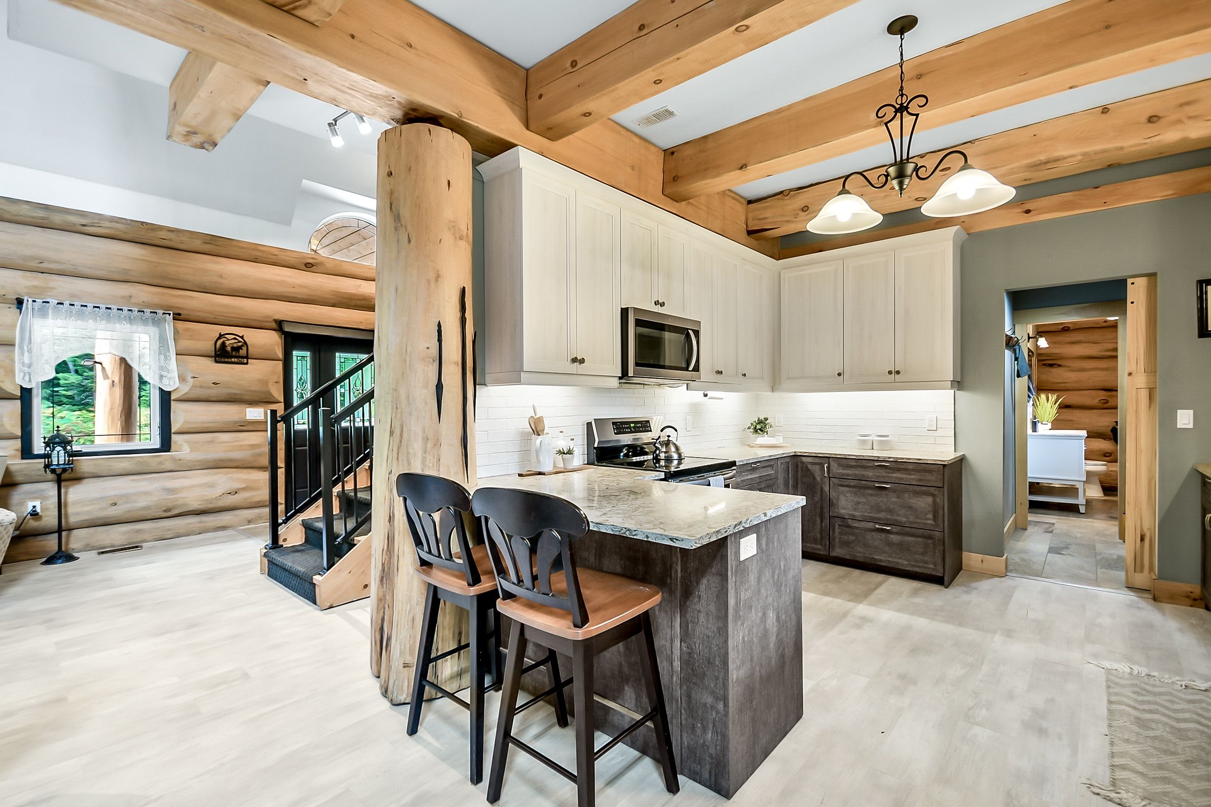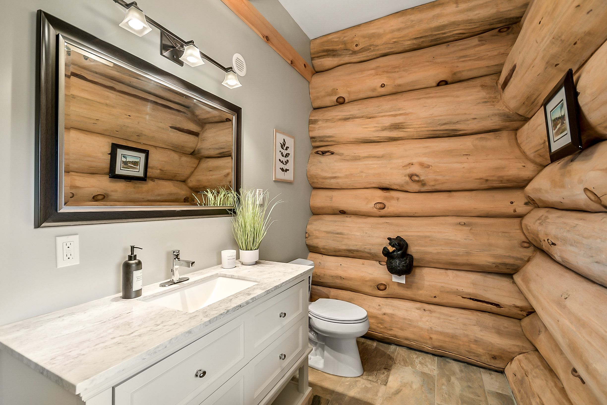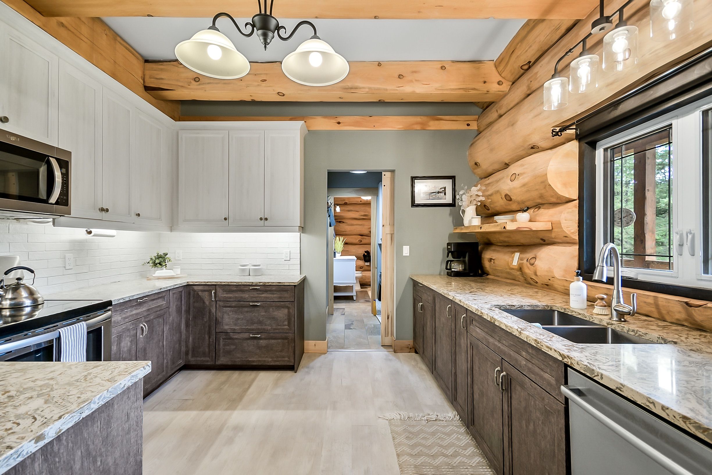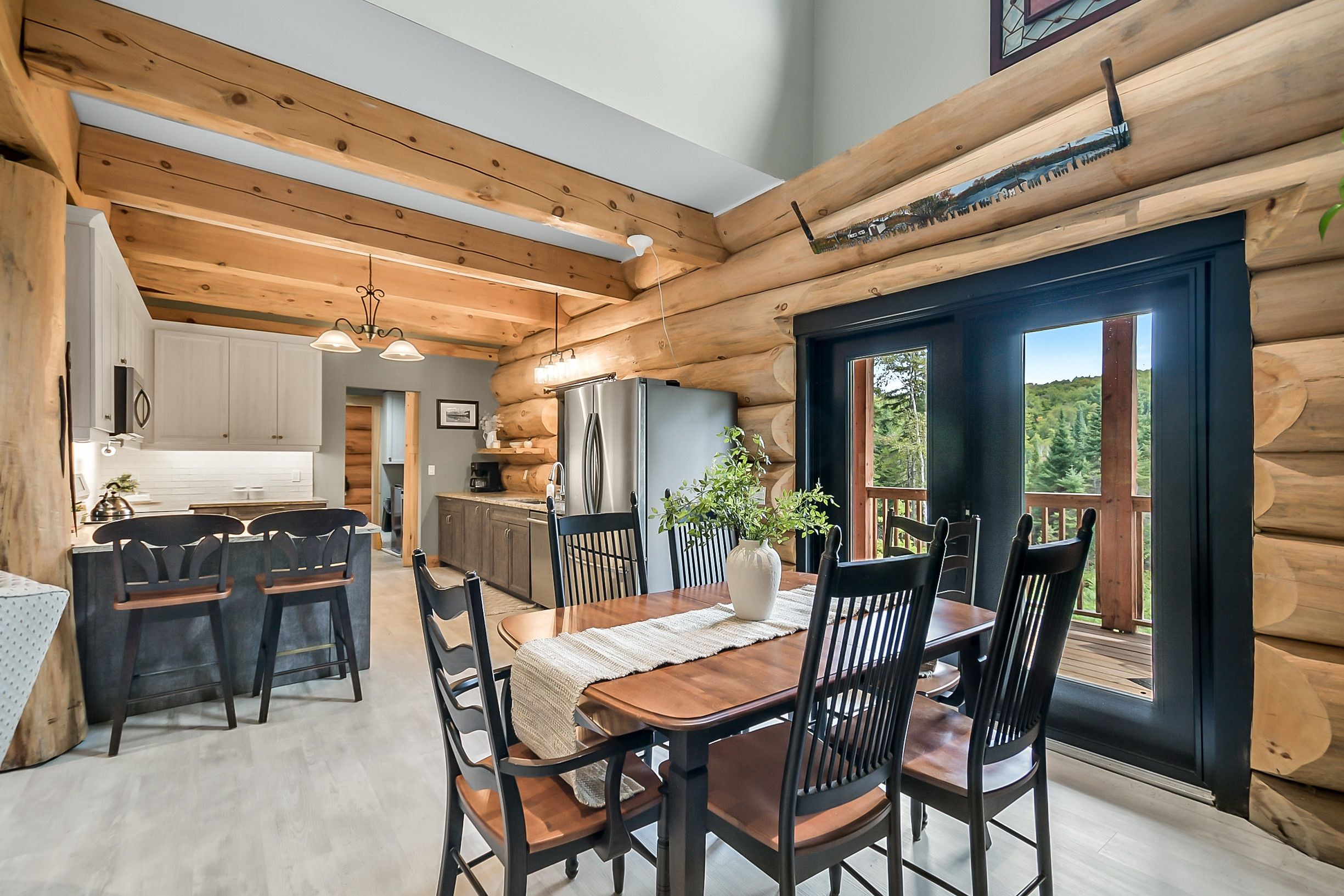• Custom-built log home set on a peaceful 2.5-acre property.