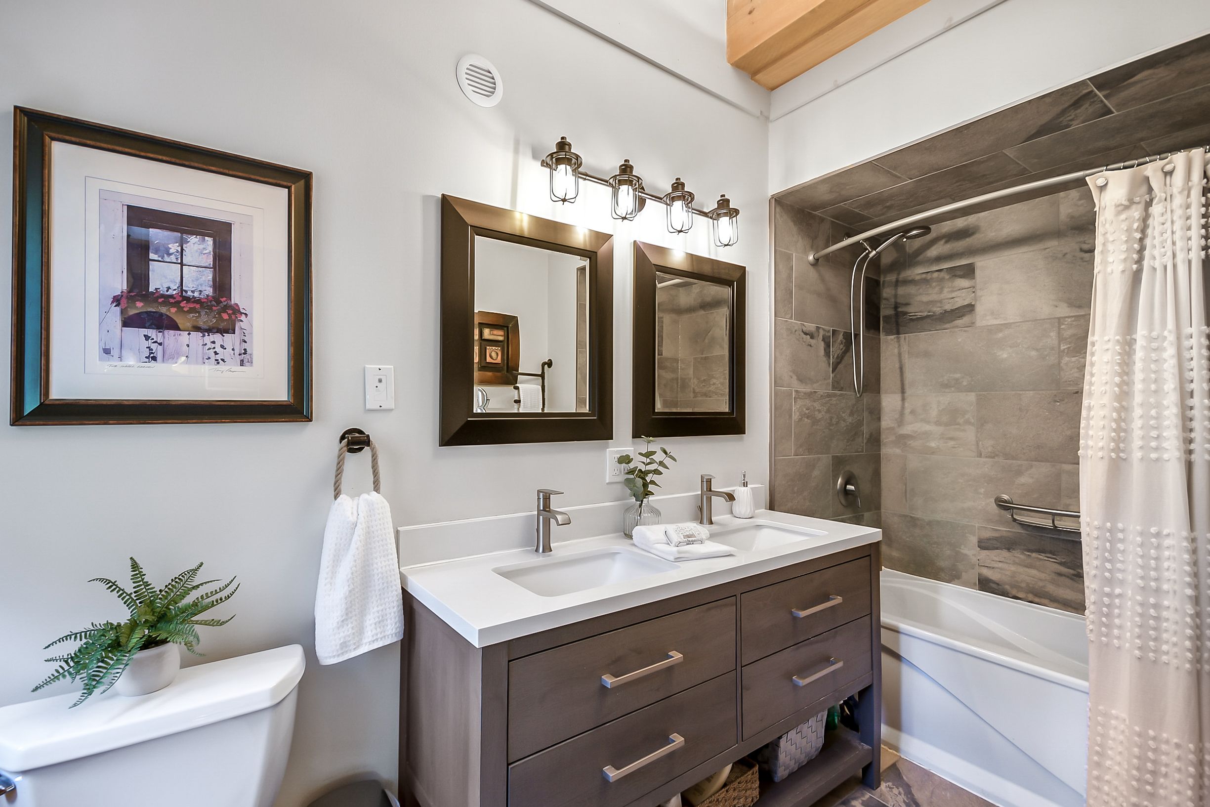 • Main floor primary bedroom with ensuite bath and additional guest rooms.