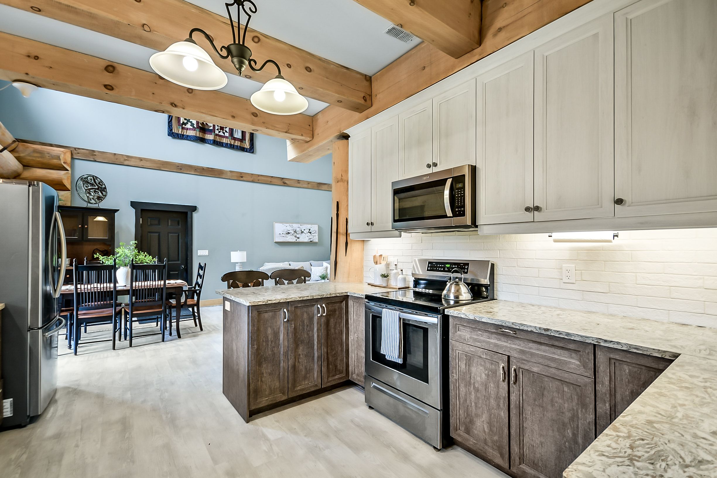 • Masterfully crafted with massive logs and soaring ceilings throughout.