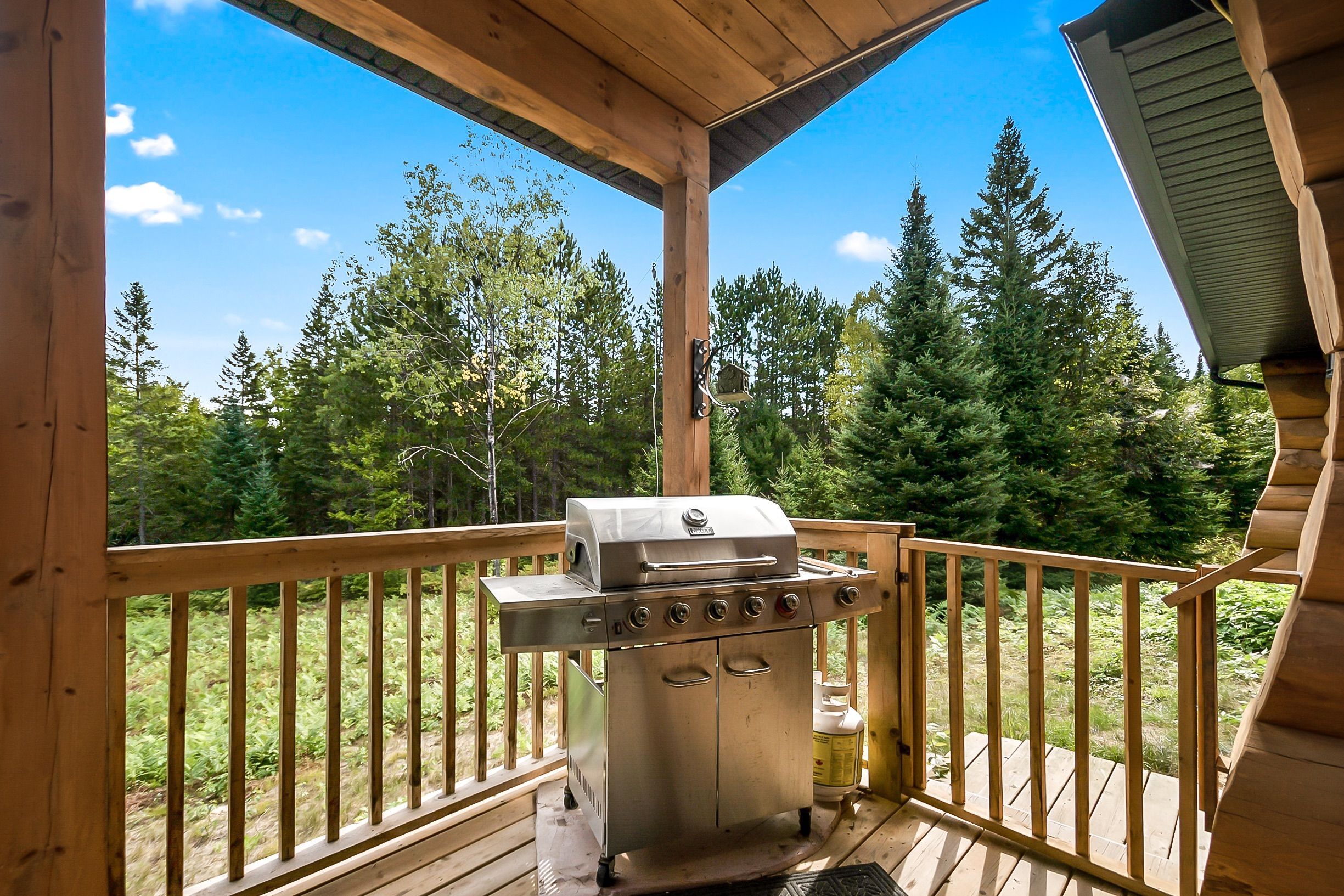 • Large covered deck offering serene views of natural surroundings.