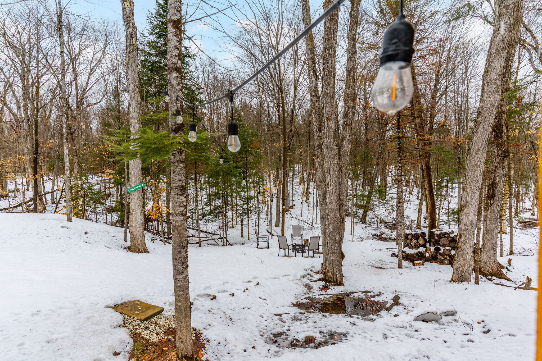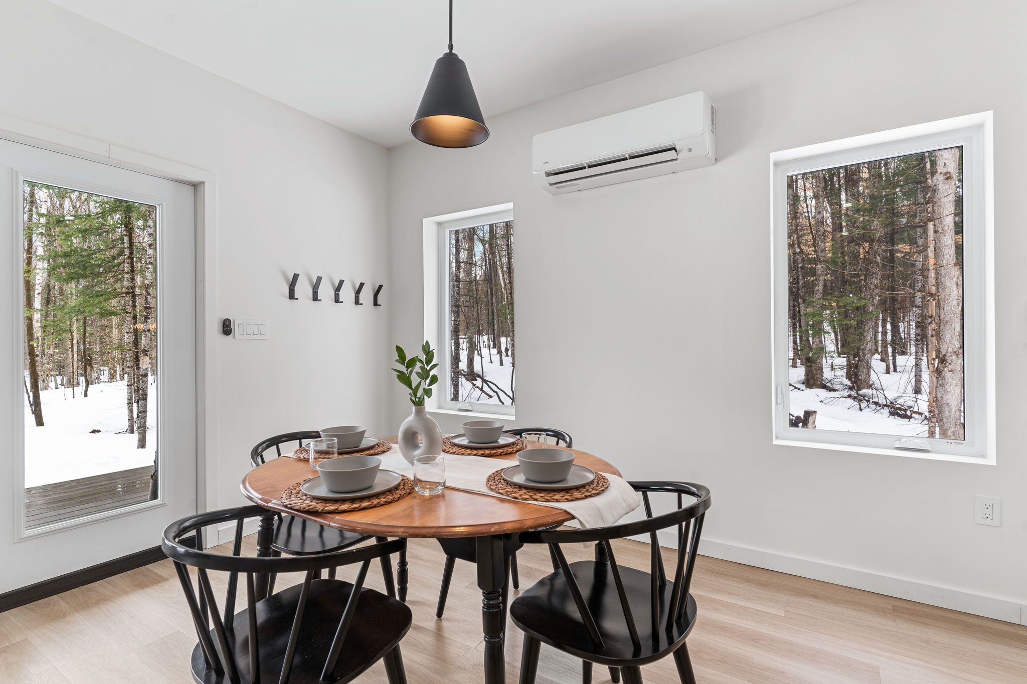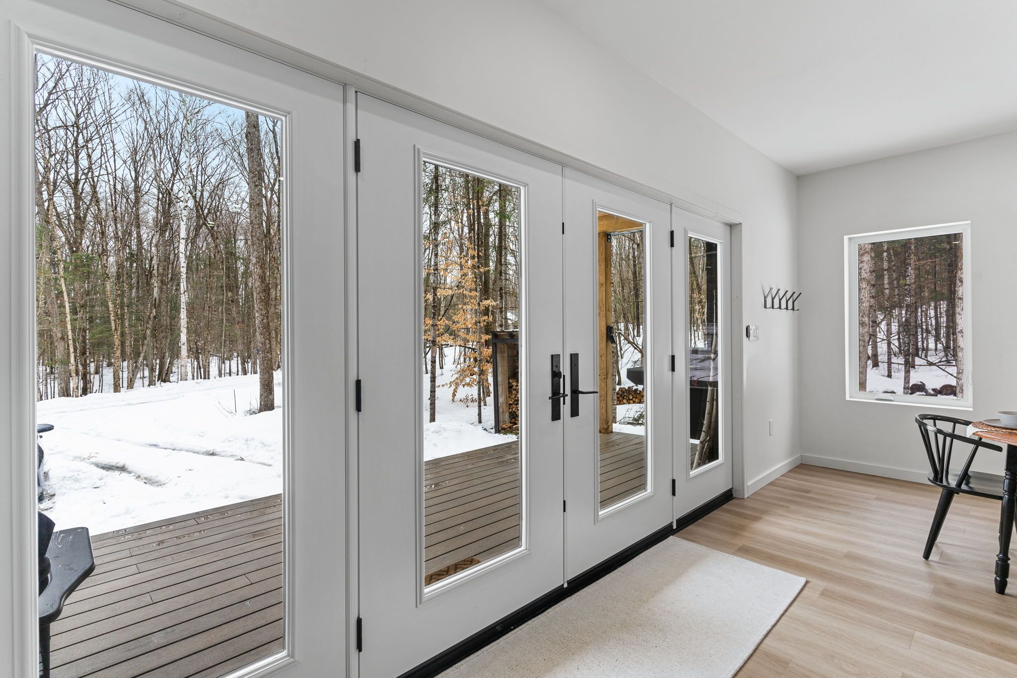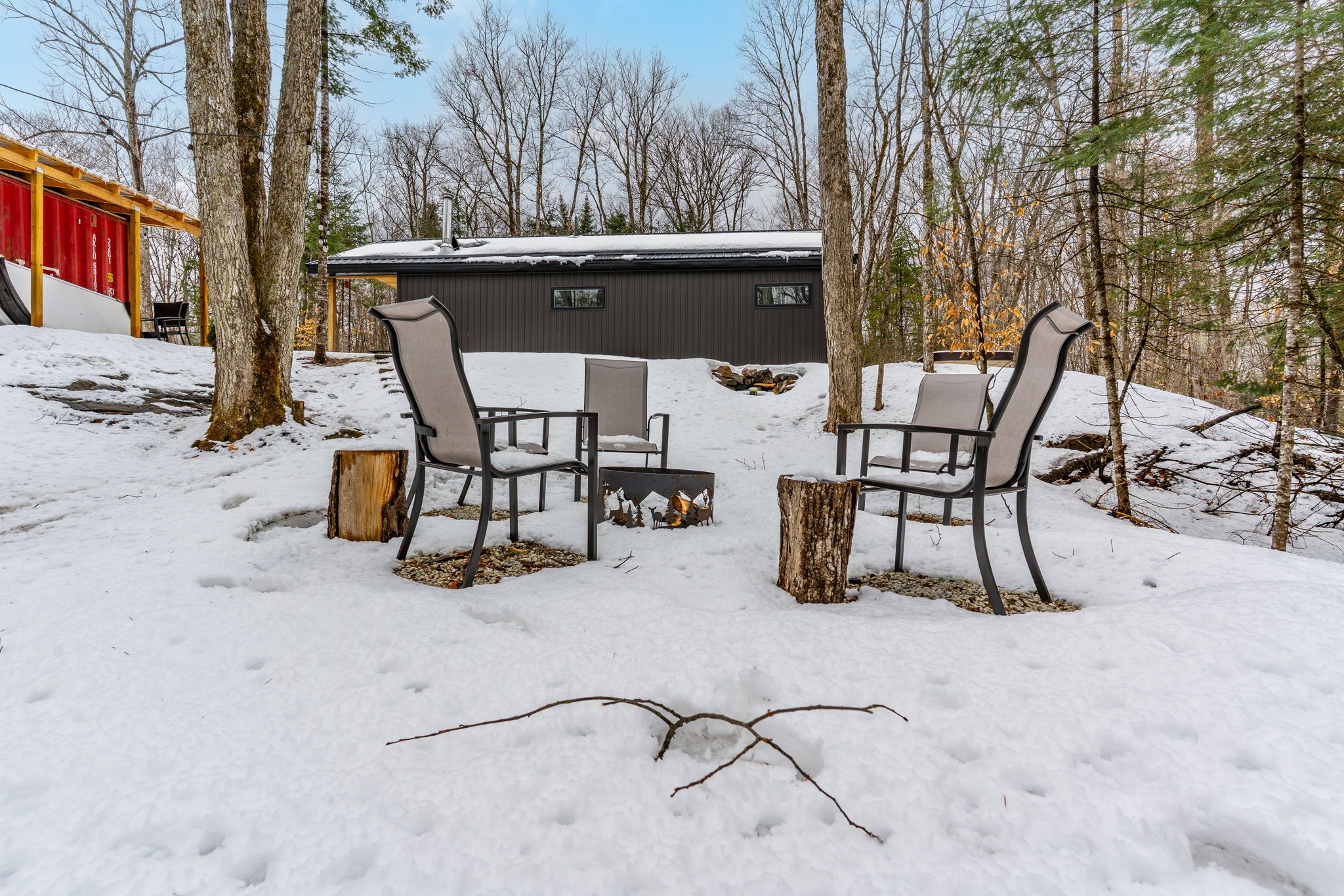 • Bright open-concept living space with a cozy woodstove for winter warmth.