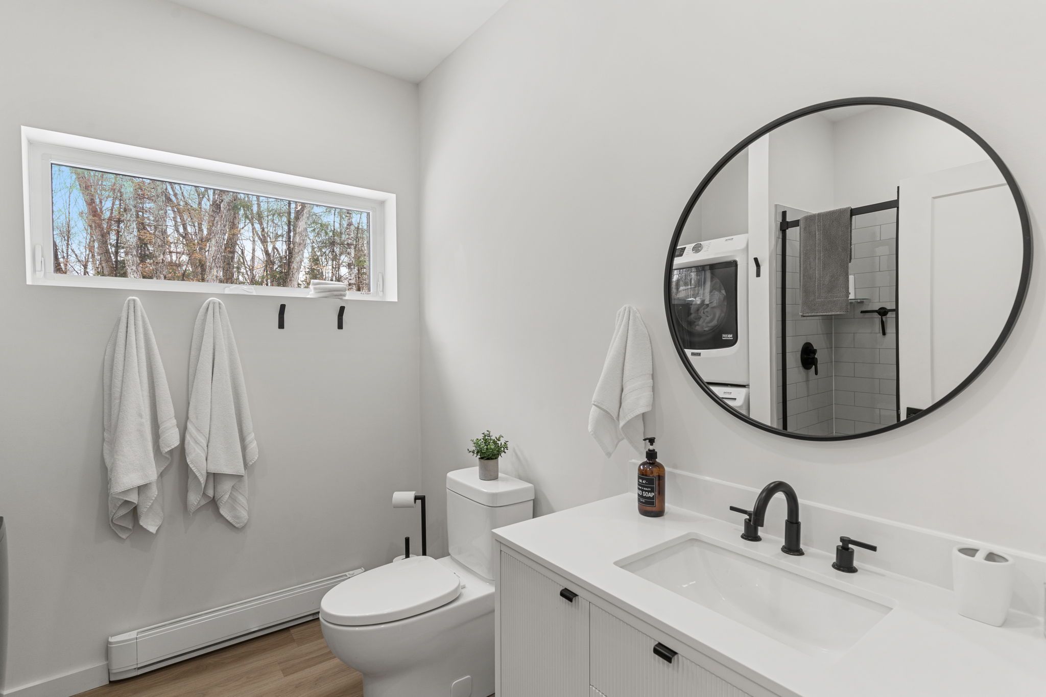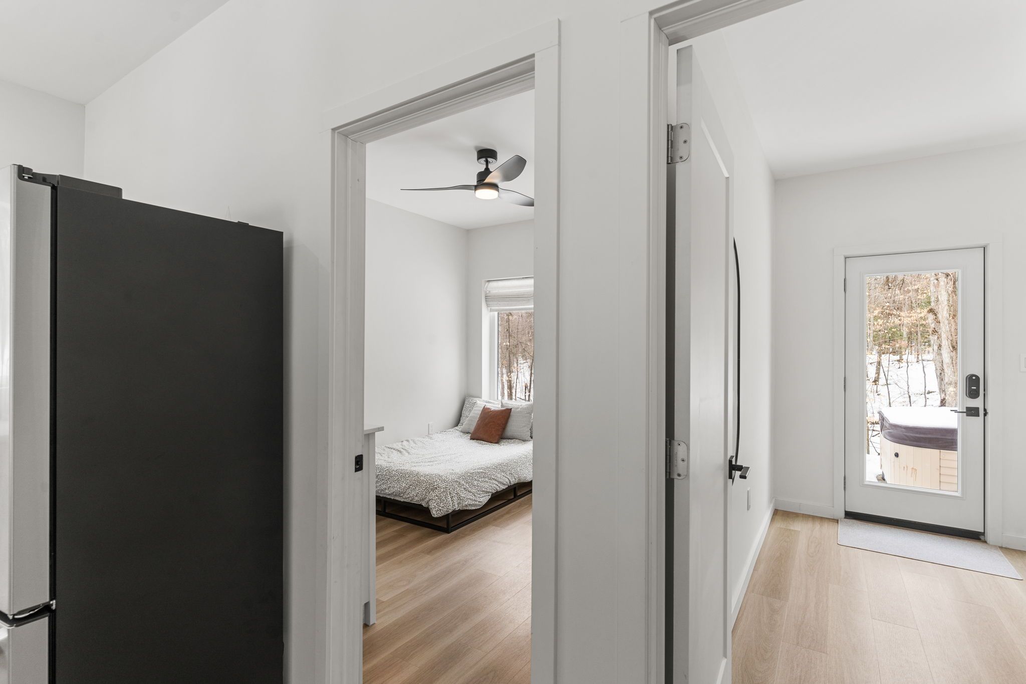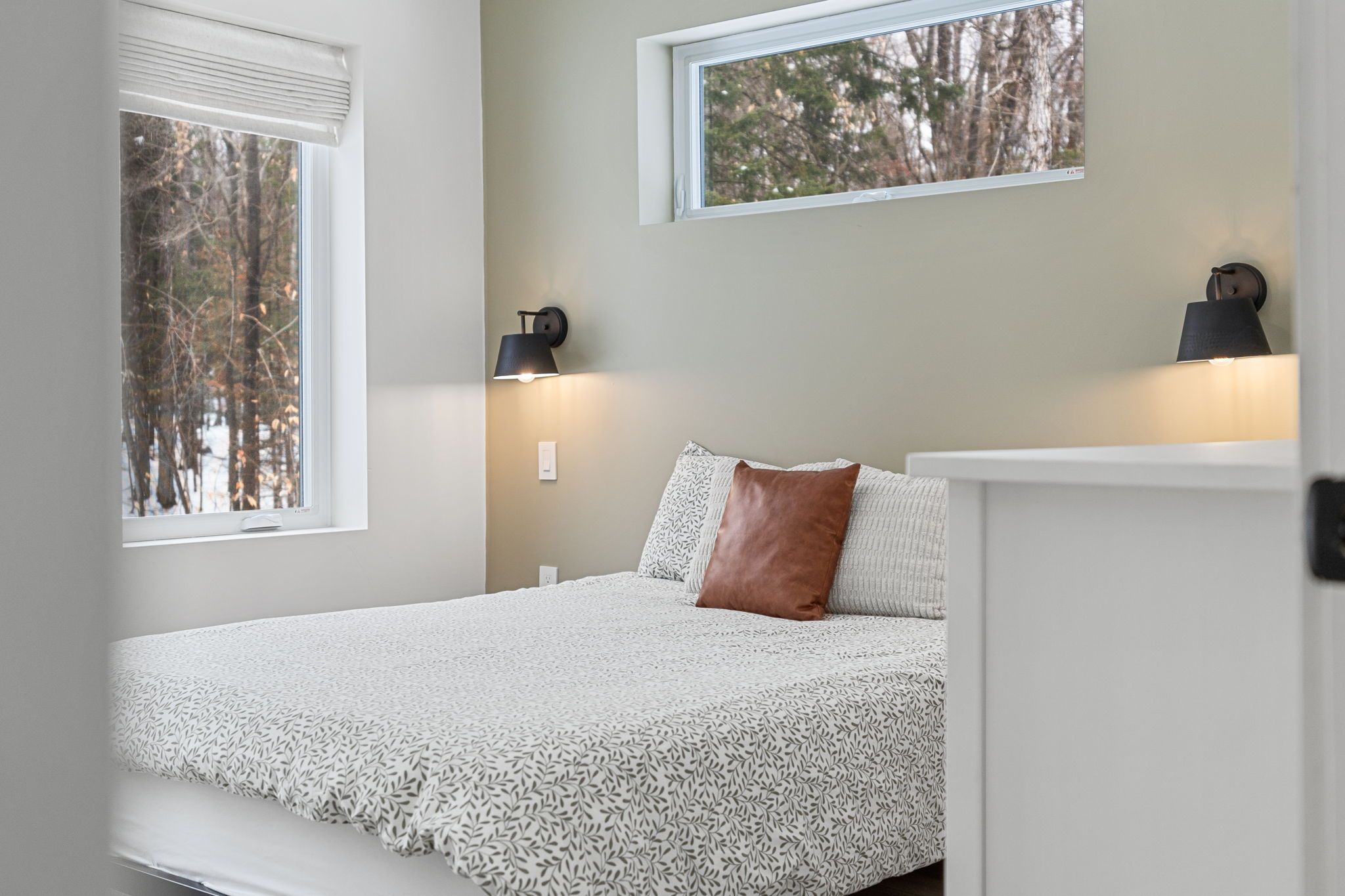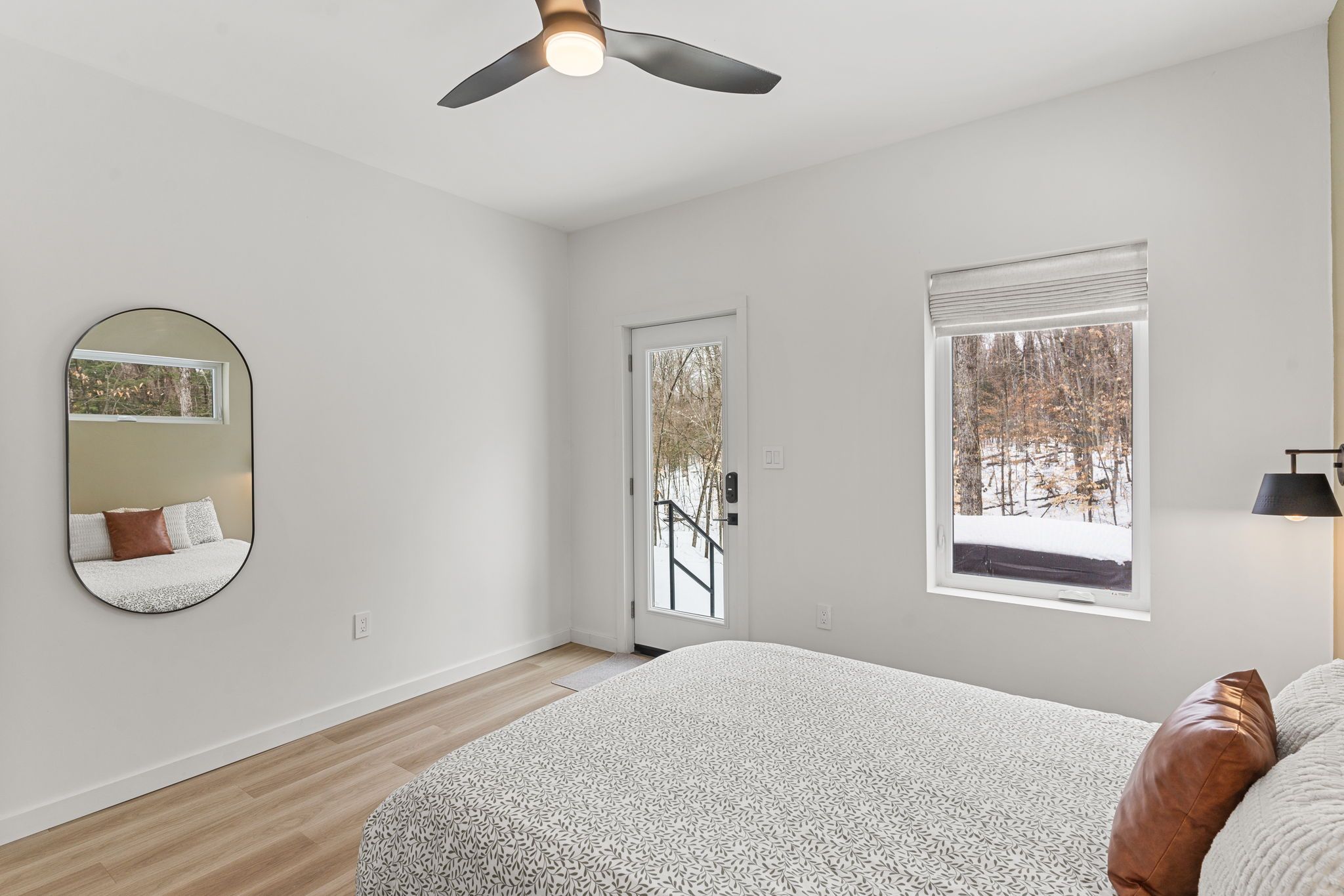 Experience the ultimate 4-season eagle lake retreat at 1366 basshaunt lake road, a stunning modern bungalow completed in 2023. Nestled on a private, well-treed lot, this home welcomes you with a spacious covered front veranda - the perfect spot to enjoy your morning coffee while surrounded by the quiet of the forest. Inside, the bright and airy open-concept living space is defined by natural light and a cozy woodstove that provides a warm, central hearth for winter gatherings. The sleek, contemporary kitchen is a chef's delight, featuring corian countertops, stainless steel appliances, and an oversized island designed for social gatherings and casual dining. The home offers two generous bedrooms, including a primary suite with a private walkout to the backyard. Outside, the level property offers plenty of usable space, a dedicated firepit area for starlit evenings, and a handy storage shed. Built for low-maintenance living, the home features a durable metal roof, efficient mini-split heating and cooling, and a sleek, modern bathroom with an integrated stackable laundry. Located in the premium eagle lake area, you are within walking distance of the basshaunt lake public access and just minutes from eagle lake's best amenities. Spend your days at sir sam's ski & ride, indulge in the spa and fine dining at sir sam's inn, or enjoy the public sandy beach and boat launch at eagle lake. With an successful short-term rental history, this turn-key property is ready to serve as your private four-season retreat or a high-performing investment in haliburton.