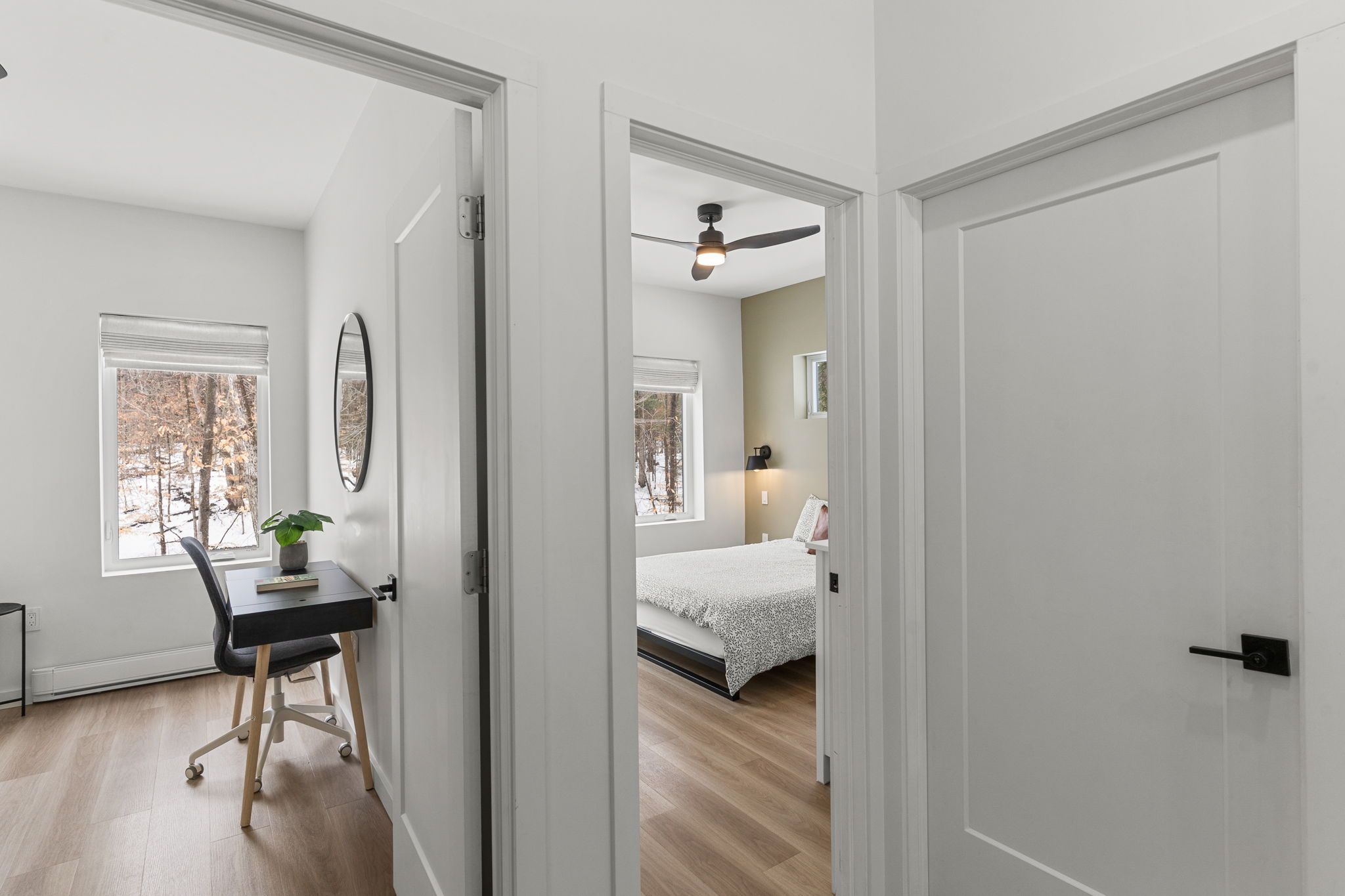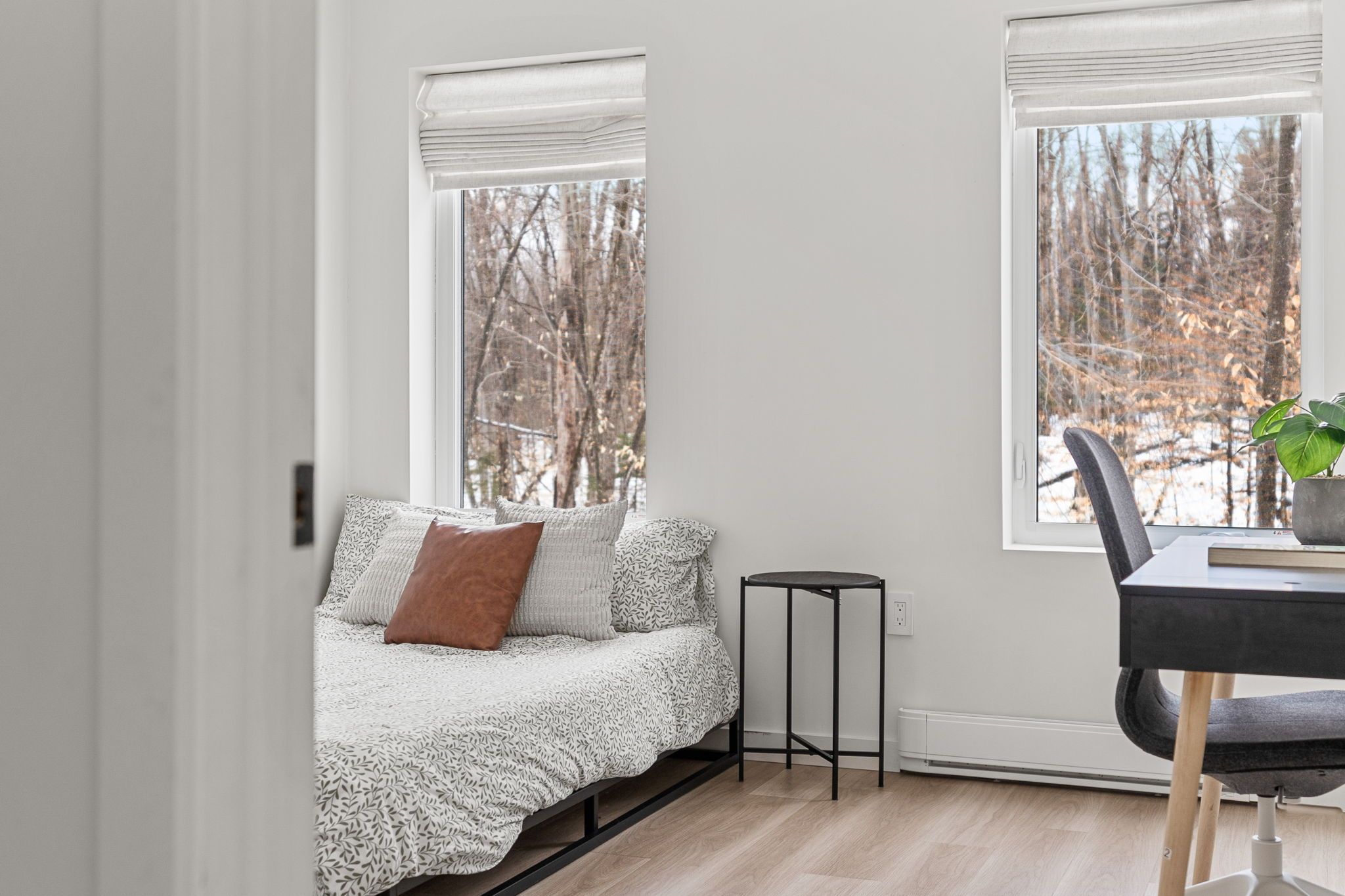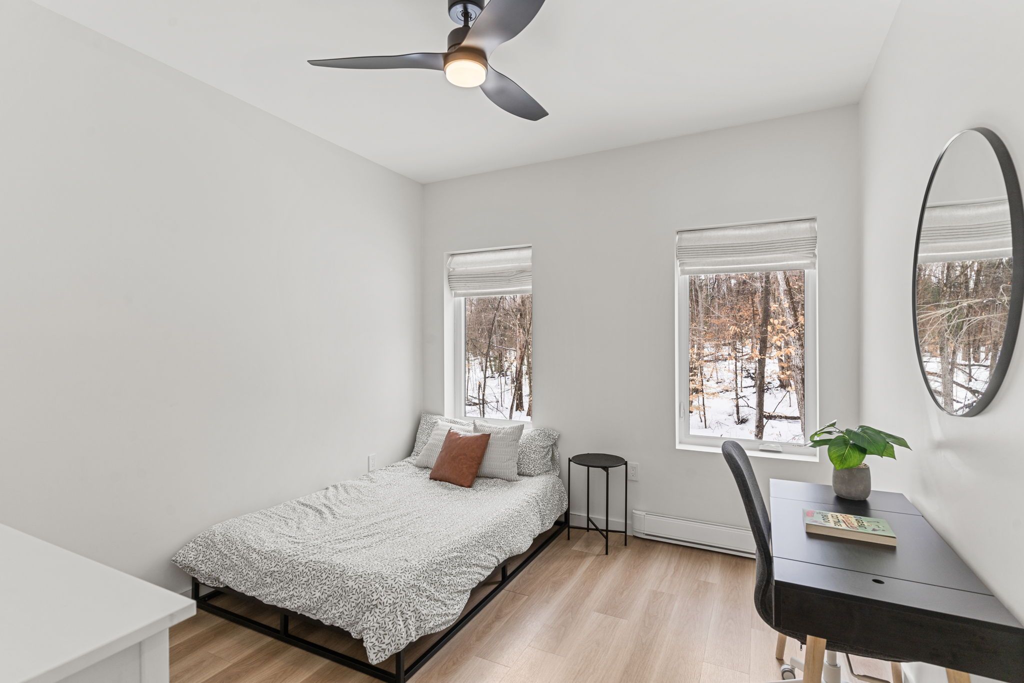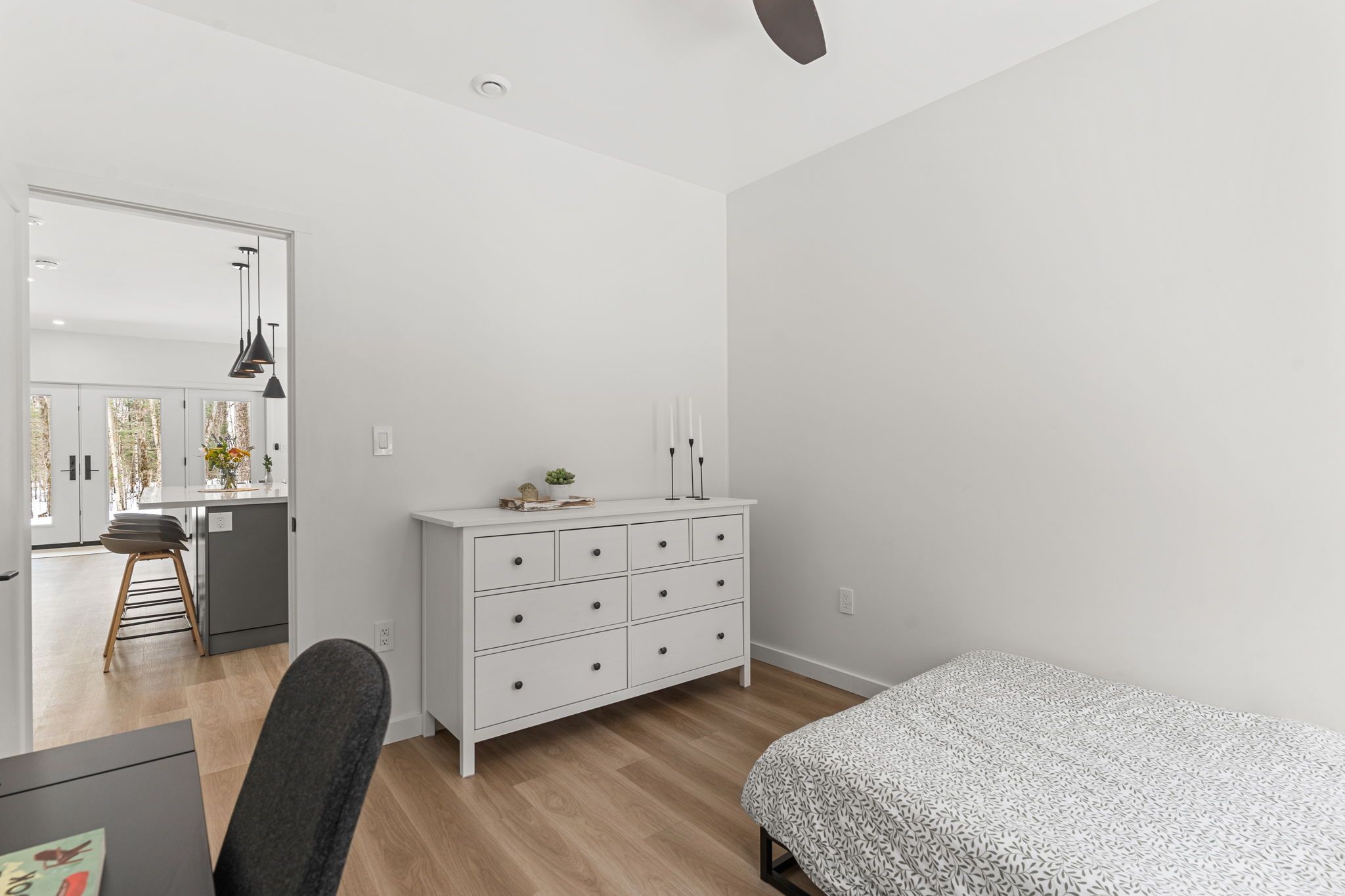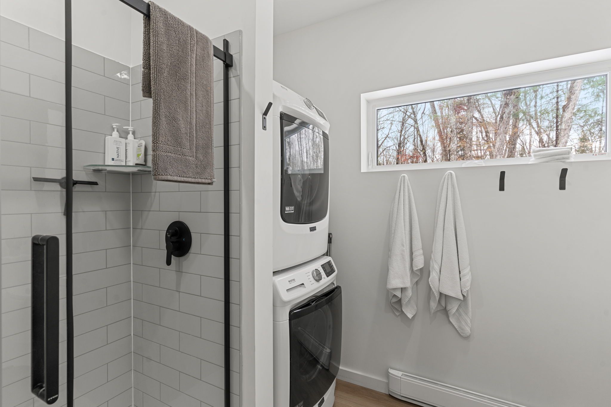 Experience the ultimate 4-season eagle lake retreat at 1366 basshaunt lake road, a stunning modern bungalow completed in 2023. Nestled on a private, well-treed lot, this home welcomes you with a spacious covered front veranda - the perfect spot to enjoy your morning coffee while surrounded by the quiet of the forest. Inside, the bright and airy open-concept living space is defined by natural light and a cozy woodstove that provides a warm, central hearth for winter gatherings. The sleek, contemporary kitchen is a chef's delight, featuring corian countertops, stainless steel appliances, and an oversized island designed for social gatherings and casual dining. The home offers two generous bedrooms, including a primary suite with a private walkout to the backyard. Outside, the level property offers plenty of usable space, a dedicated firepit area for starlit evenings, and a handy storage shed. Built for low-maintenance living, the home features a durable metal roof, efficient mini-split heating and cooling, and a sleek, modern bathroom with an integrated stackable laundry. Located in the premium eagle lake area, you are within walking distance of the basshaunt lake public access and just minutes from eagle lake's best amenities. Spend your days at sir sam's ski & ride, indulge in the spa and fine dining at sir sam's inn, or enjoy the public sandy beach and boat launch at eagle lake. With an successful short-term rental history, this turn-key property is ready to serve as your private four-season retreat or a high-performing investment in haliburton.