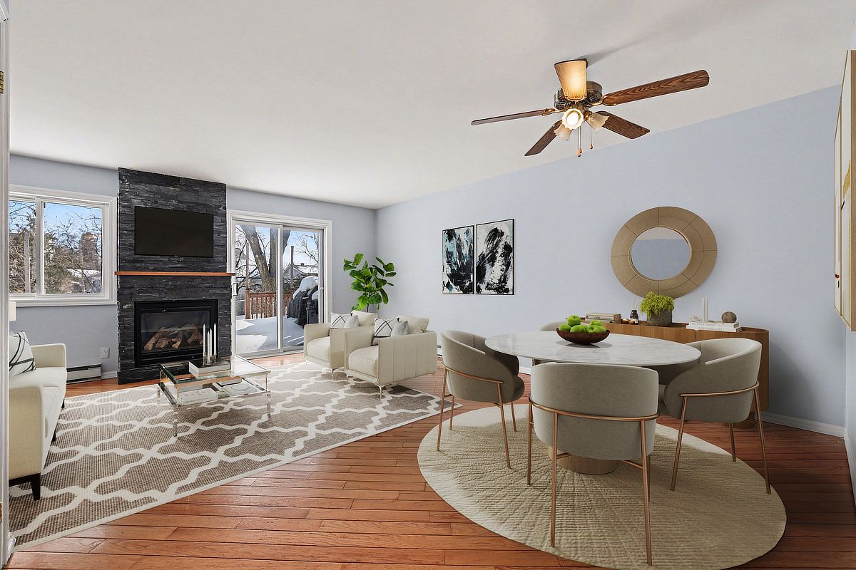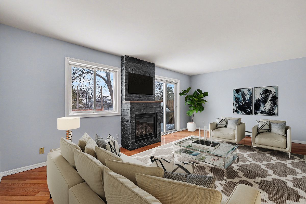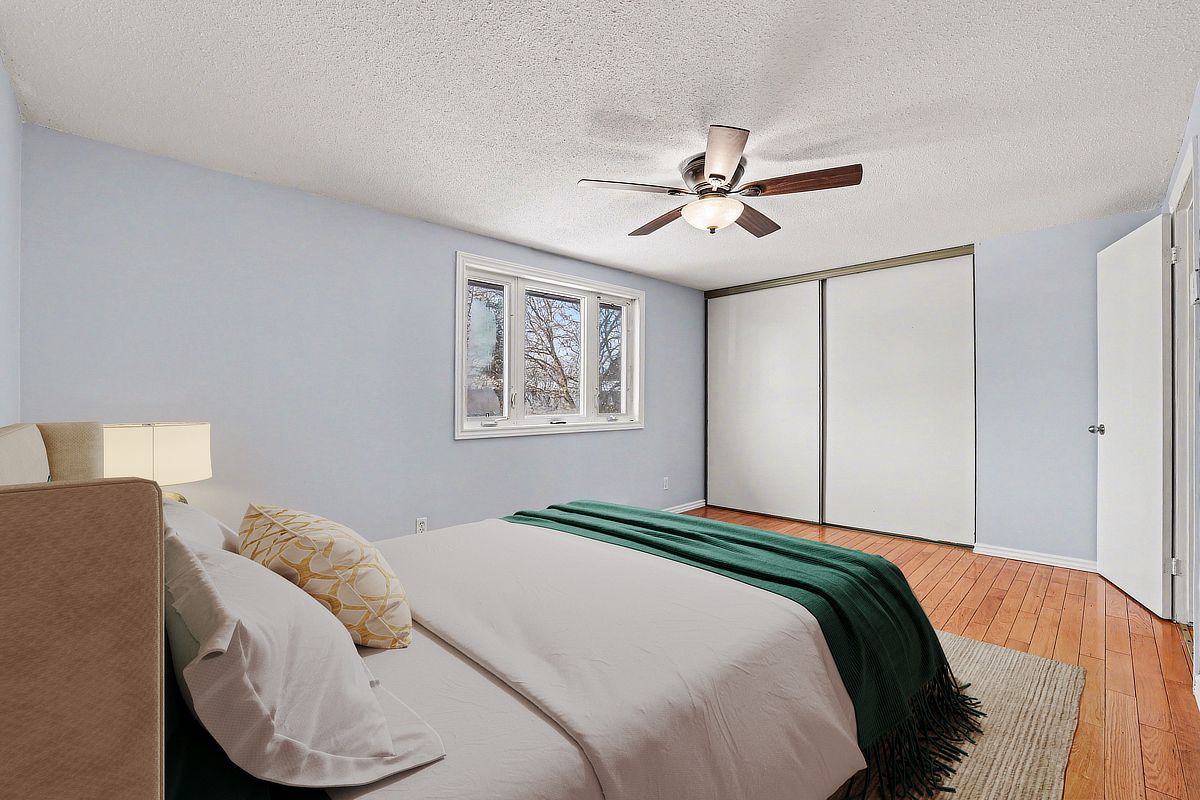 Rarely offered! Attached only by the garages on each side, this unique home offers a rare sense of privacy and separation compared to typical attached properties. Set on a deep 135 ft fully fenced lot, this beautifully refreshed, move-in ready home features hardwood flooring on two levels and is ideally located in a convenient neighbourhood close to every amenity. Freshly painted throughout in 2026, the main level offers a bright open-concept living and dining area with hardwood flooring, anchored by a cozy gas fireplace w/ blower for heating. Patio doors lead directly to the backyard, creating a welcoming space ideal for everyday living and entertaining. The beautifully updated kitchen is a standout feature, offering an excellent layout with abundant cabinetry and preparation space. Stylish updates completed in 2026 include quartz countertops, a modern backsplash and newer appliances including fridge(26), stove(26) and hood fan (26), creating a space that is both elegant and functional. A fully updated powder room with quartz counter (26) completes the main level. Upstairs, hardwood flooring continues throughout. The bright and spacious primary bedroom offers a generous closet, while two additional well-sized bedrooms provide flexibility for family, guests or a home office. A full 4-piece bathroom serves the upper level. The finished lower level adds valuable living space with a large recreation room, laundry area and ample storage. Step outside to enjoy the deep fully fenced backyard, perfect for relaxing, entertaining or family play. The attached garage provides convenient backyard access, and the extended driveway accommodates parking for up to three vehicles. Additional updates include pvc windows, roof shingles (11) & owned hot water tank (20). Ideally located just minutes to pineview golf course, parks, blair lrt, transit and the many shops and amenities along ogilvie road.