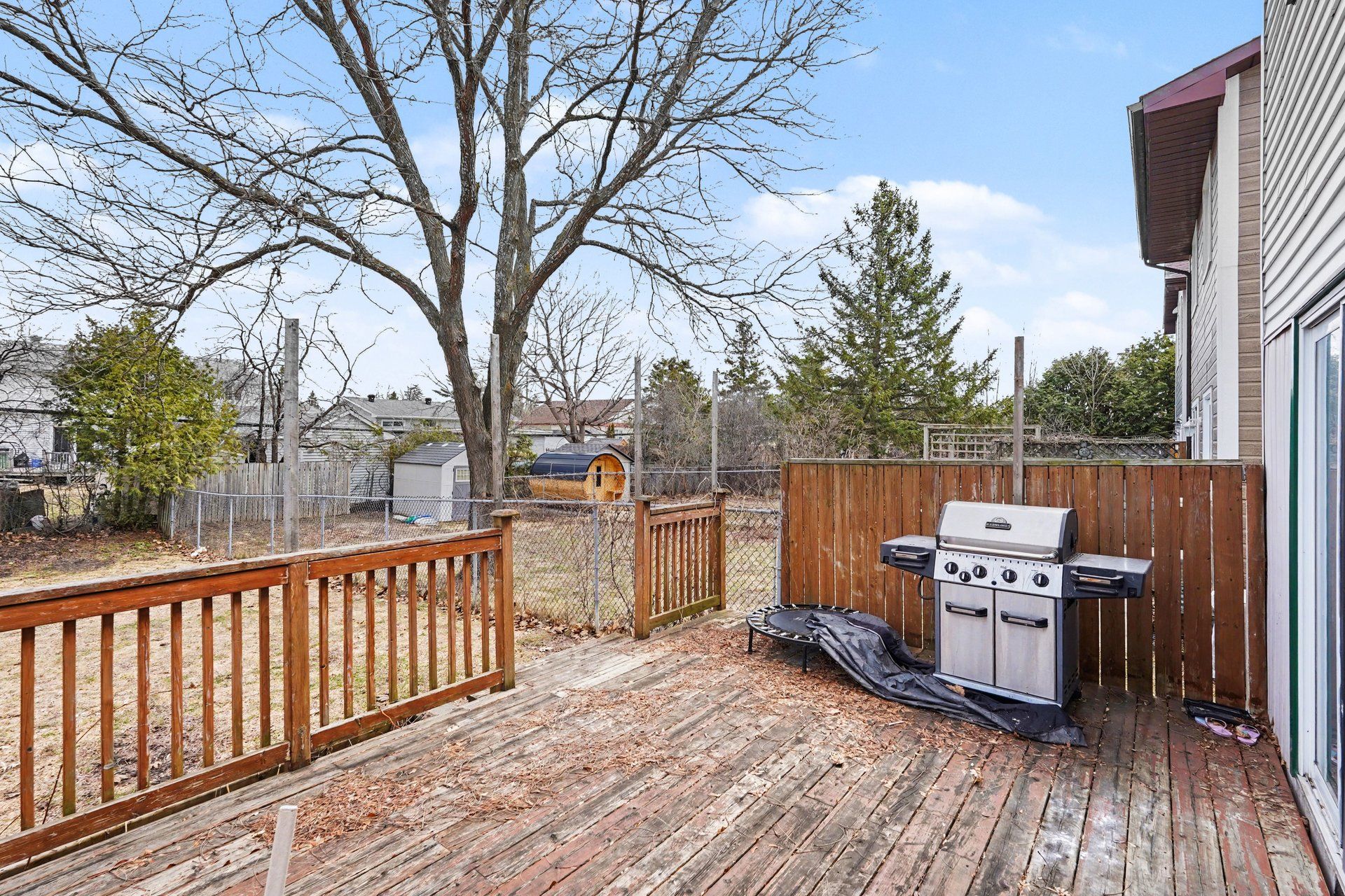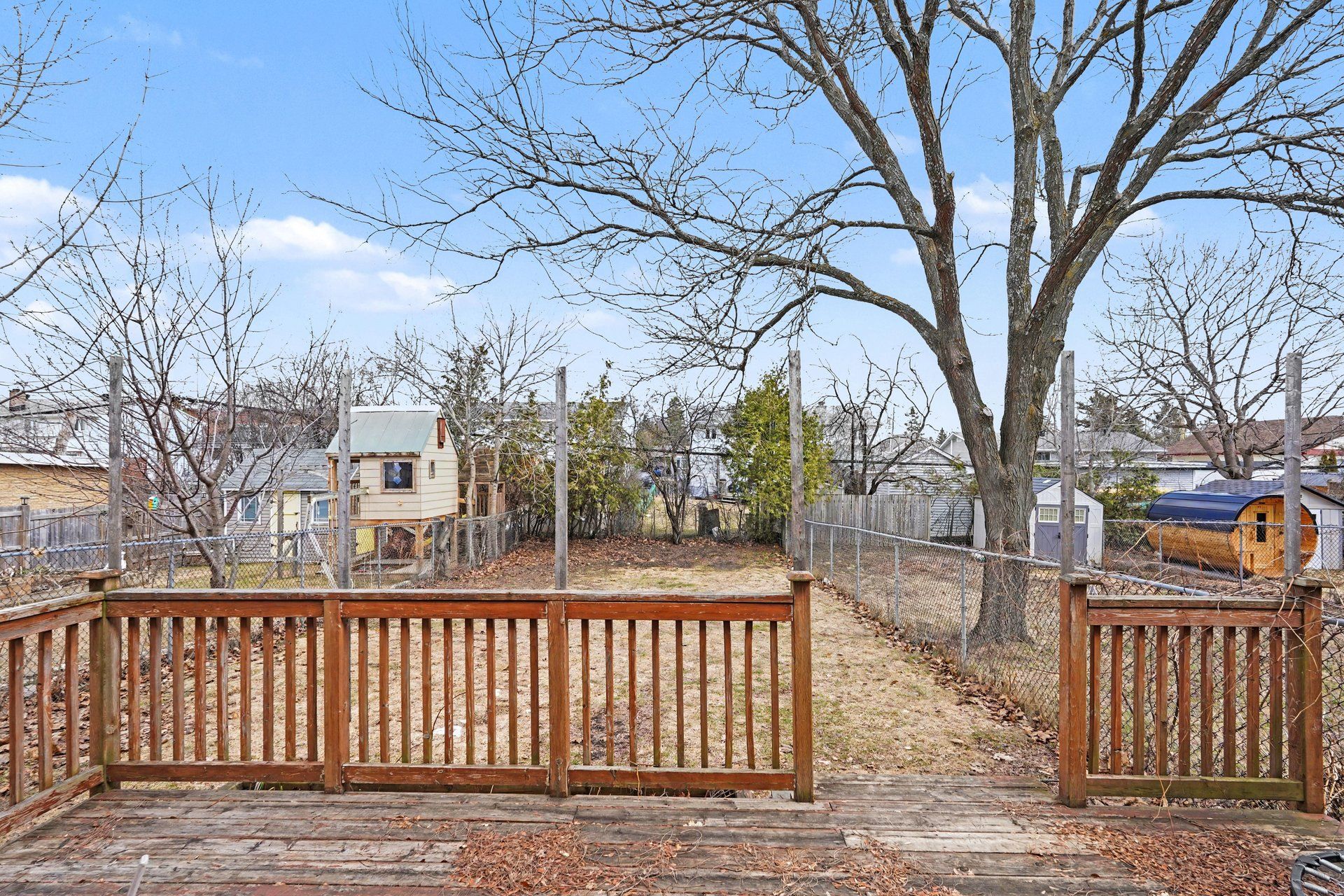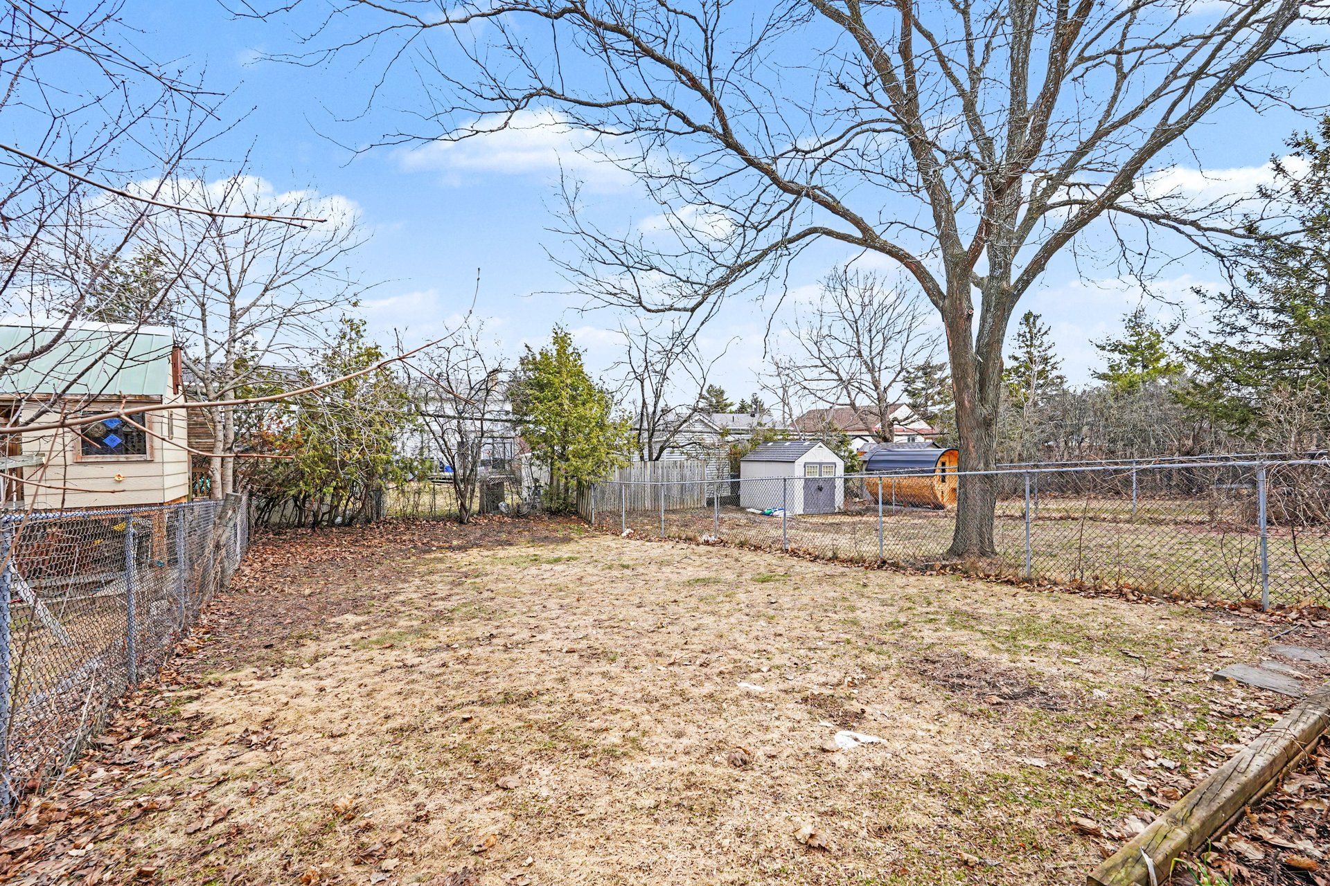 • Deep 135 ft fully fenced yard perfect for family activities and relaxation.