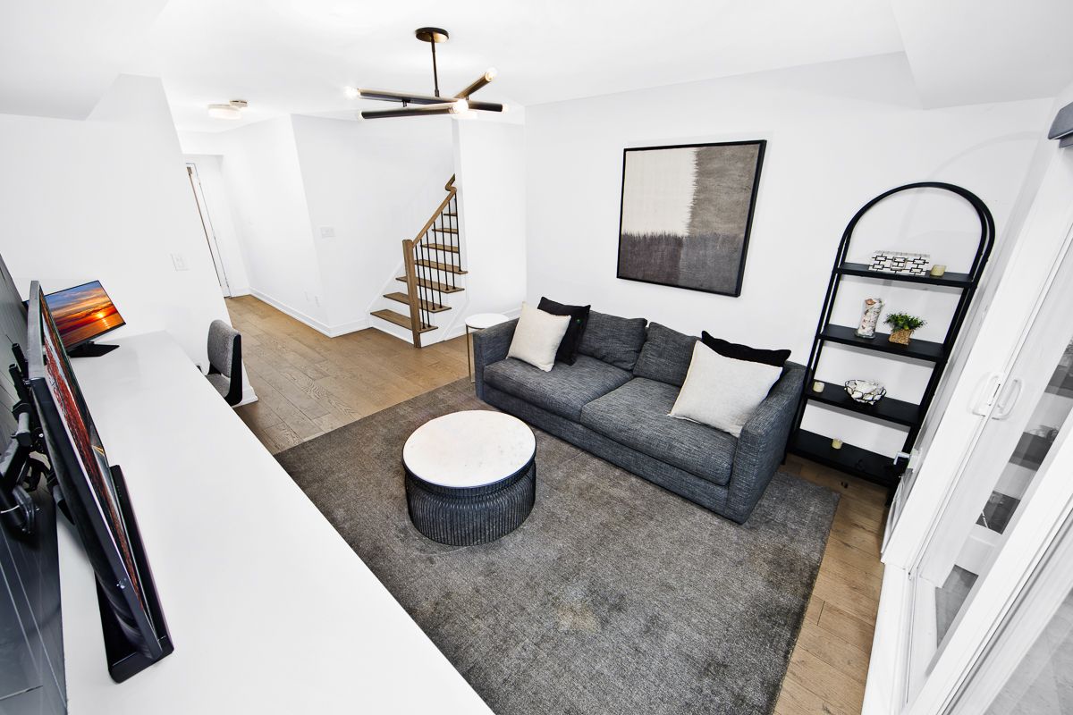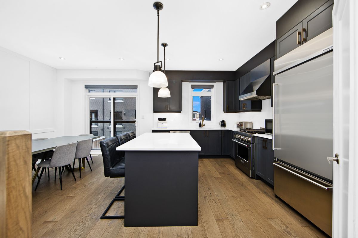 Experience the ultimate in lakeside luxury at 1367 gull crossing, a stunning 3-storey turnkey executive end-unit townhome nestled in the prestigious frenchman's bay community. Just steps from the shores of lake ontario, sandy beaches, scenic parks, and the marina, this 2,072-square-foot masterpiece feels as though it was lifted directly from the pages of a luxury home magazine. The interior is defined by exquisite hardwood floors and upgraded finishes throughout, with custom paneling and accents. The functional layout includes 3 spacious bedrooms, a versatile family room, and a fully finished basement, all complemented by four designer bathrooms, including two 4-piece baths and a lavish 5-piece primary ensuite. Featuring a chef-inspired kitchen that serves as a true showpiece with its massive island and commercial-grade stainless steel appliances. Custom built-in cabinetry, elegant countertops, and a cozy gas fireplace add a level of sophisticated millwork rarely seen, while multiple private balconies offer the perfect vantage point for coastal breezes. Outside, the property is professionally landscaped with premium stonework in both the front and back, providing a sleek, low-maintenance exterior that matches the home's high-end modern aesthetic. With its unbeatable location with quick access to 401, go transit, pickering town centre and so much more. This turnkey home is ready for you to move in. Don't miss this gem!