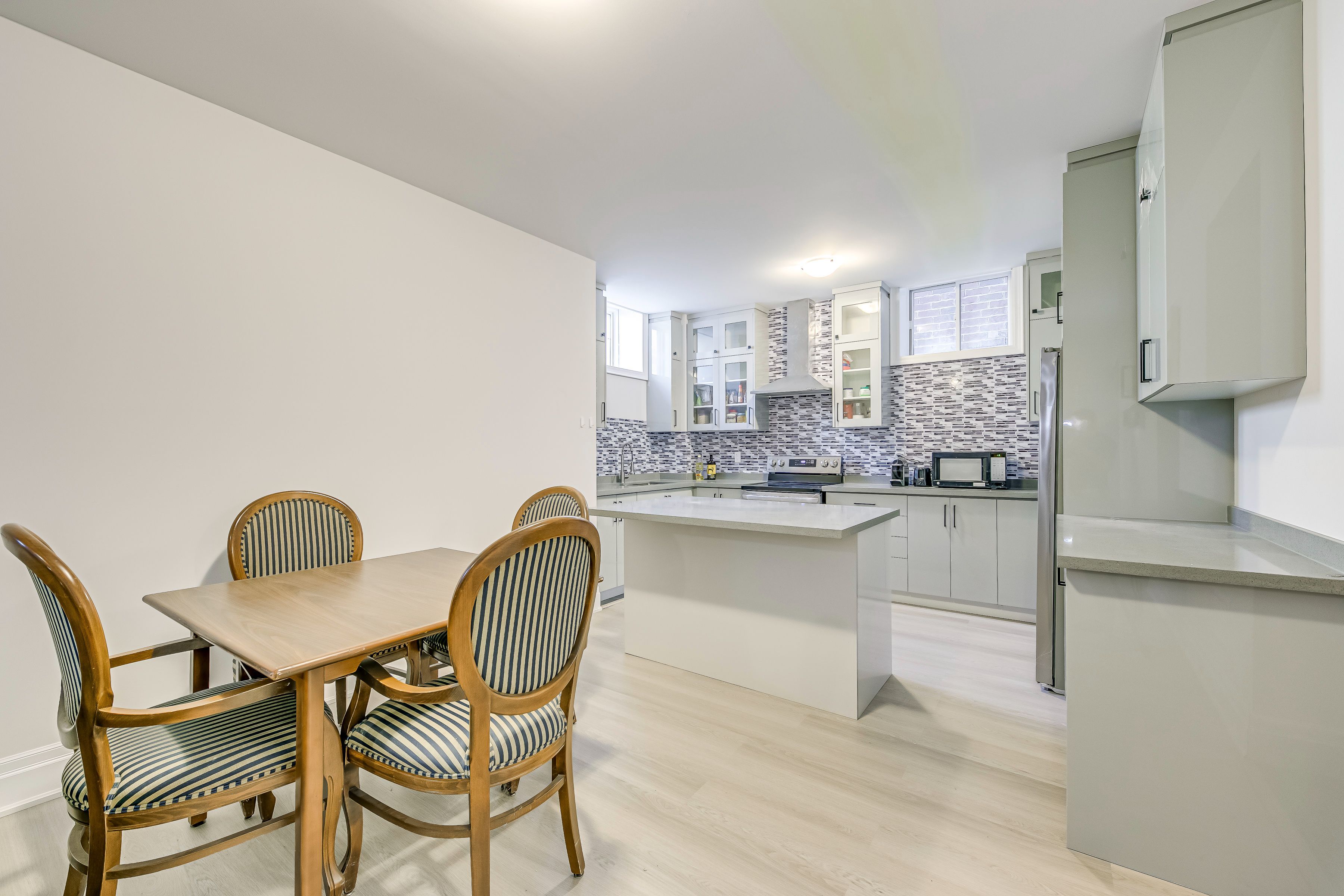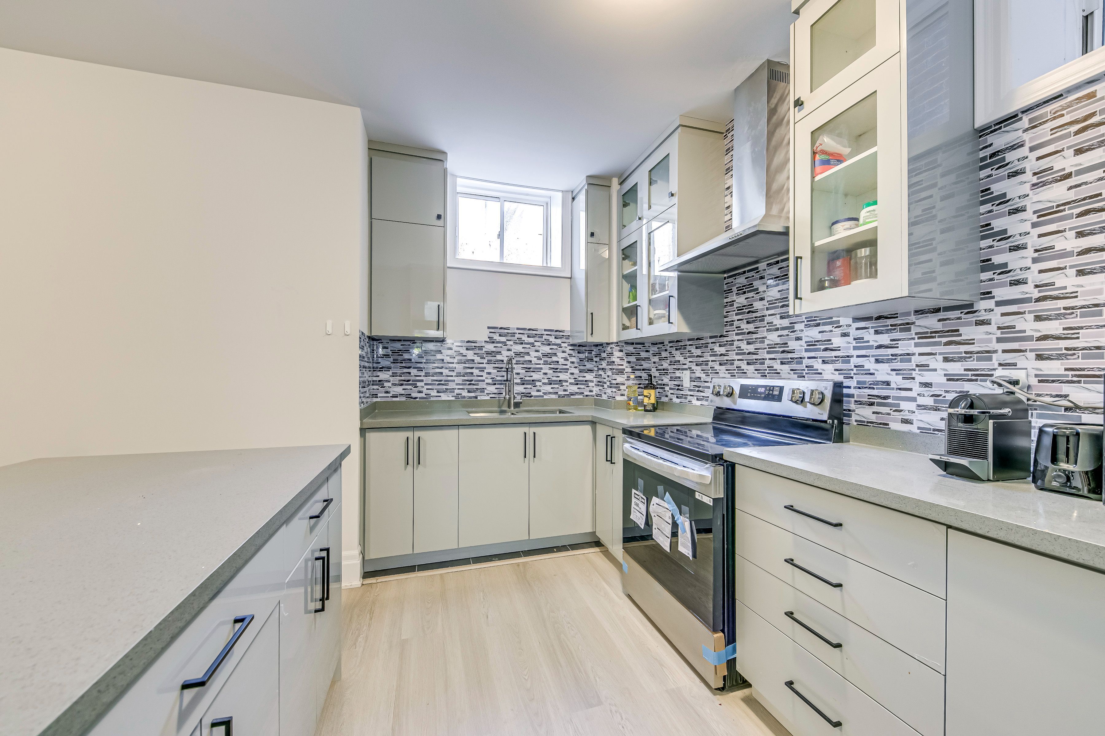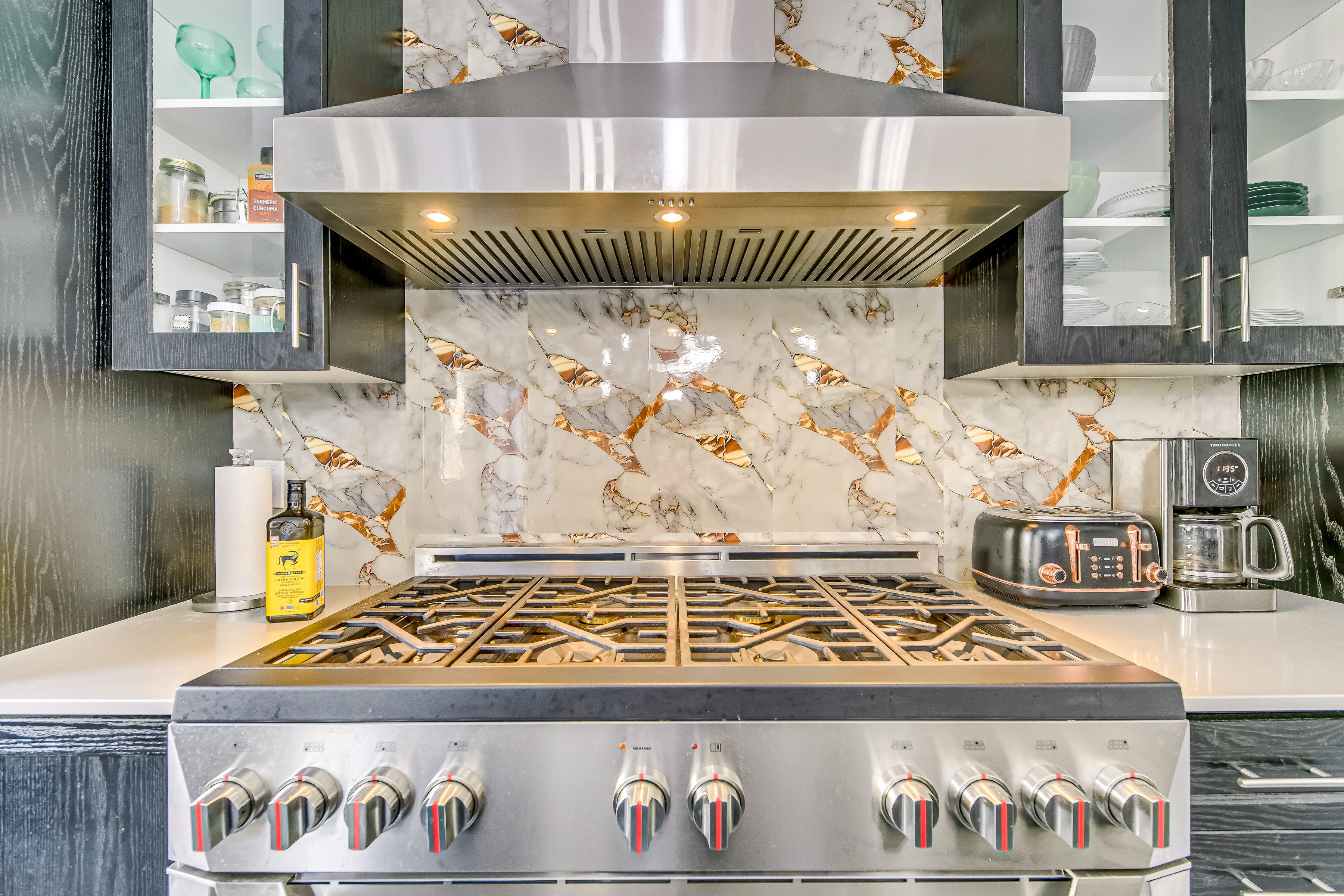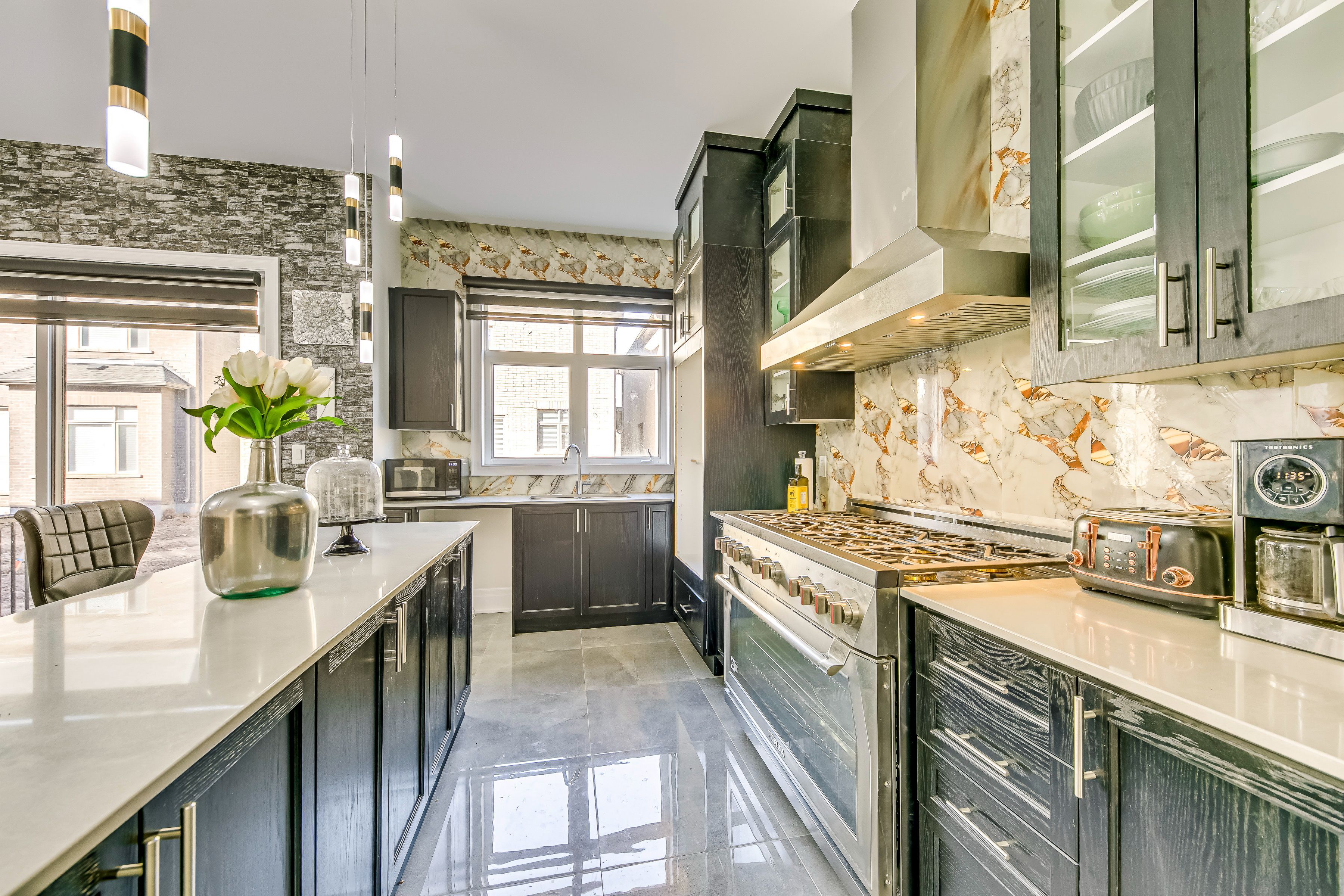 • Modern kitchen with high-end appliances, quartz countertops, and ample storage.