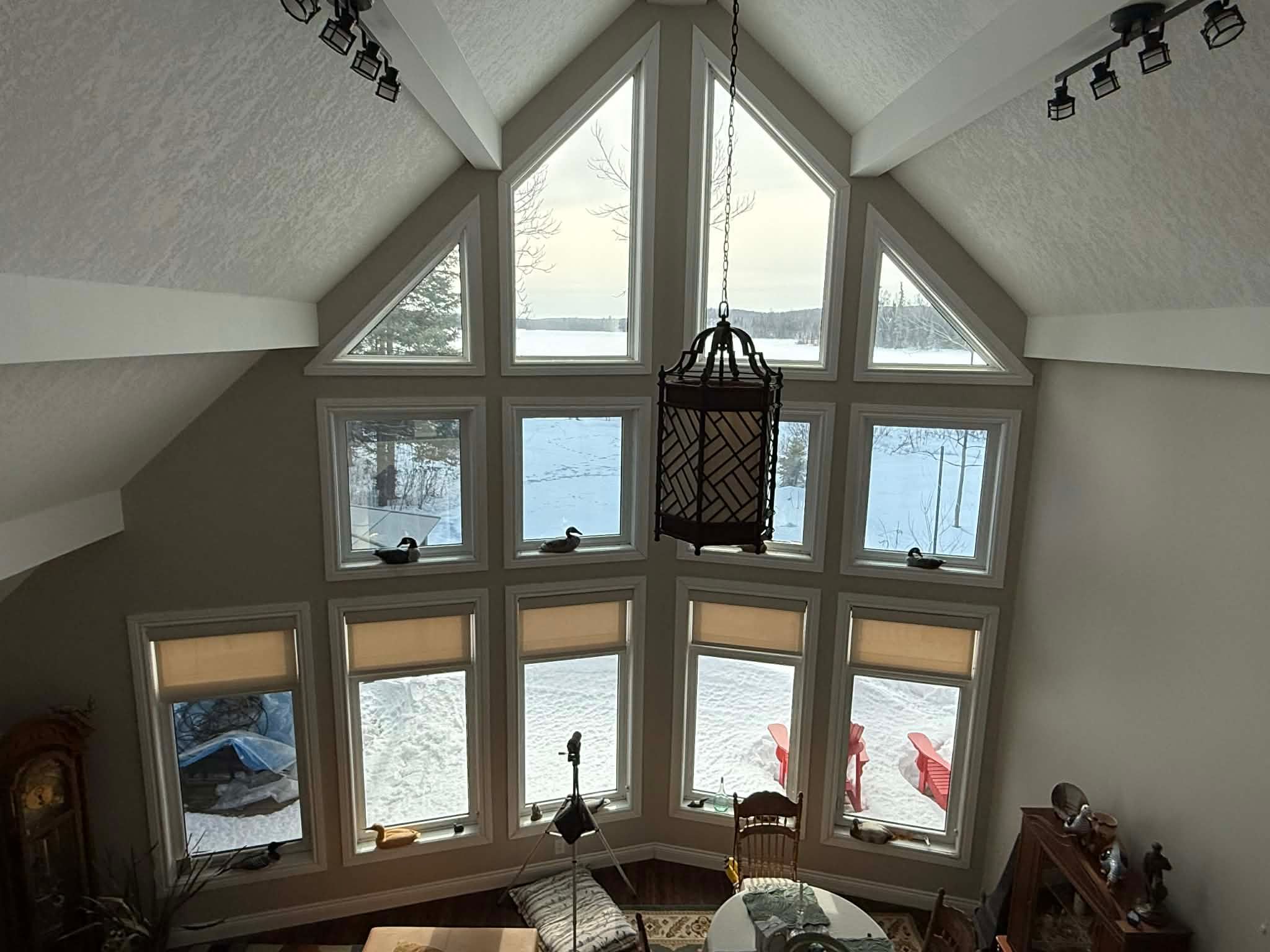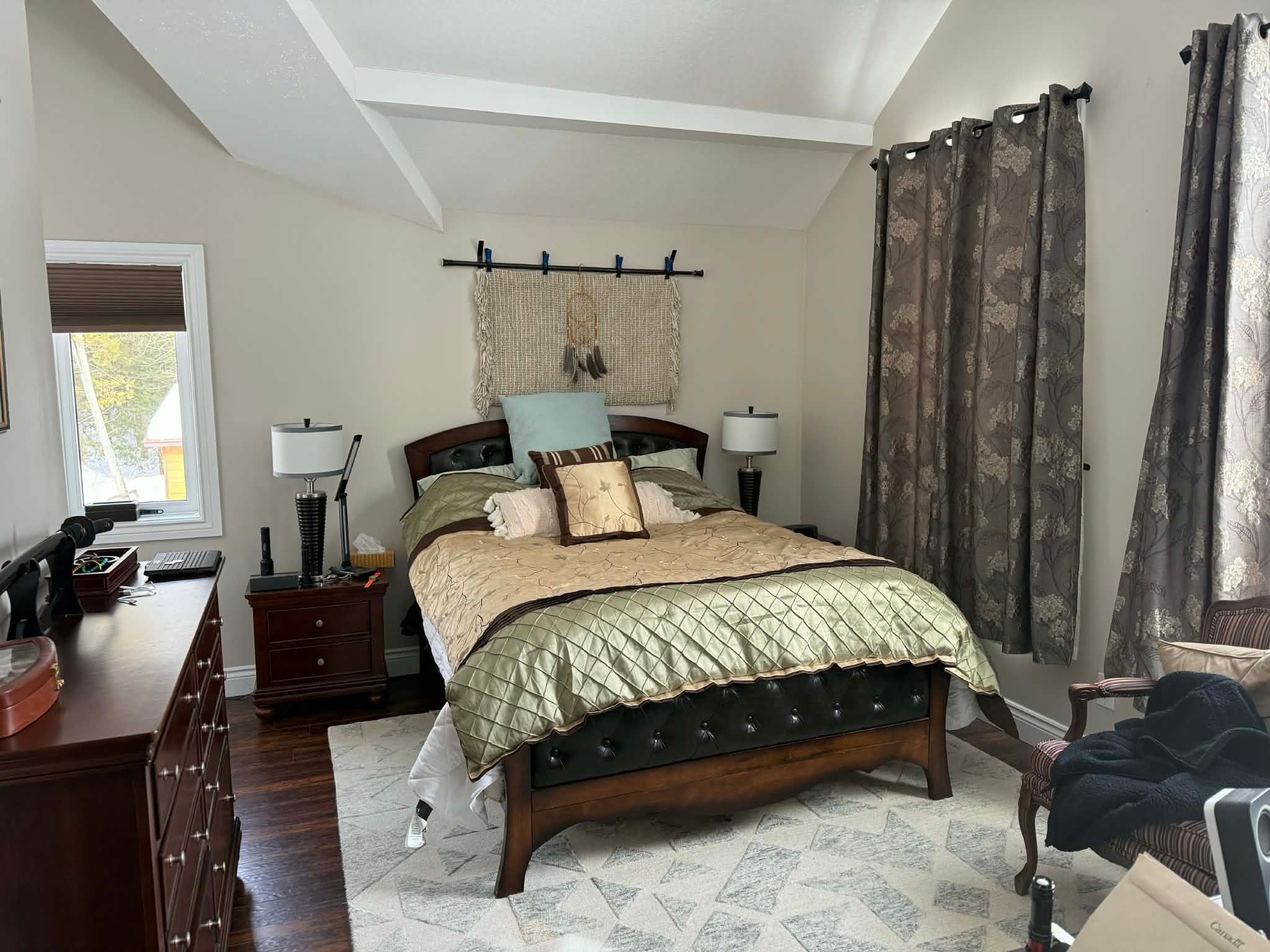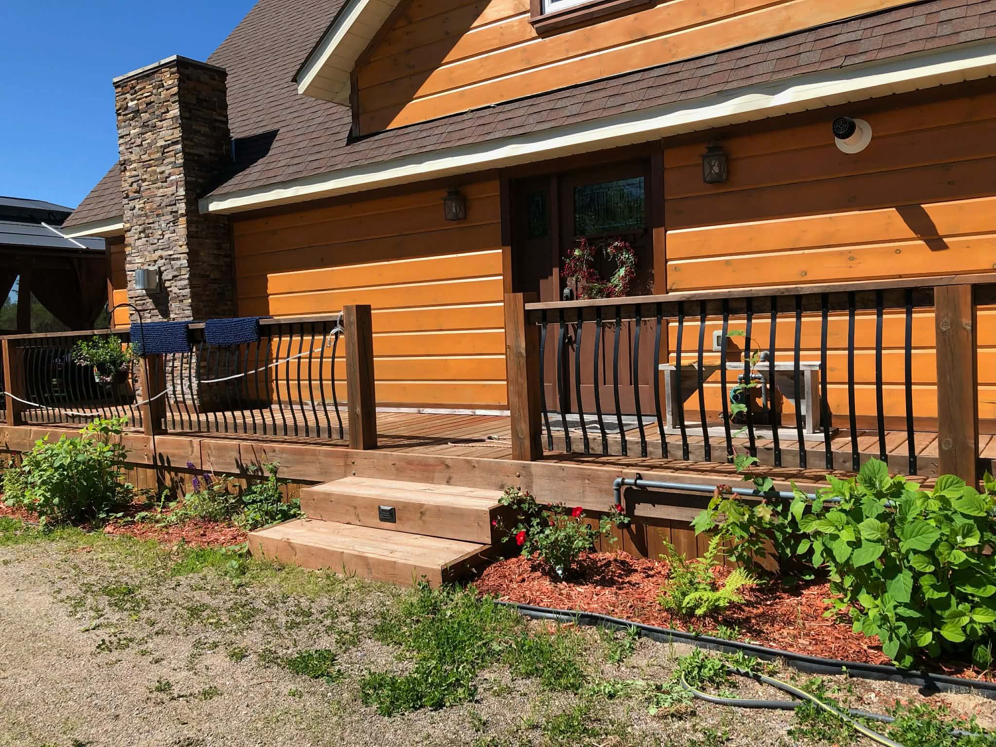 Welcome to this spectacular 1. 5-storey chalet set on just under 3 acres, with 220 ft of southern exposure on beautiful jack lake-only minutes from highway 11. Soaring vaulted ceilings, hardwood floors, and floor-to-ceiling windows flood the home with natural light and frame the breathtaking lake views throughout. The open concept kitchen features granite countertops, built-in stainless steel appliances, a propane stove, fridge, dishwasher, and a wine cooler seamlessly built into the island/breakfast bar. The open-concept dining and living areas are ideal for entertaining, and are enhanced by a cozy propane fireplace that is battery controlled and walkout to wraparound decking overlooking the water. The main floor offers two spacious bedrooms and a beautifully finished 4-piece bath with granite vanity, slate flooring, and a tub/shower with glass doors. Upstairs, the loft overlooks the main living space and leads to a private primary suite complete with a walk-in closet, abundant natural light, and a 4-piece ensuite featuring slate flooring, a glass shower, and double granite-topped vanities. Additional features include a security system, smart thermostat, air circulation system, and the home is roughed-in for in-floor heating-adding comfort, efficiency, and peace of mind. Outside, enjoy a 24' dock for all your water toys, a 20' x 10' garage, and two additional 10' x 12' sheds for storage. Whether you're looking for a year-round home or a peaceful country retreat, this jack lake property delivers the perfect blend of comfort, style, and waterfront living. Book your private showing today.