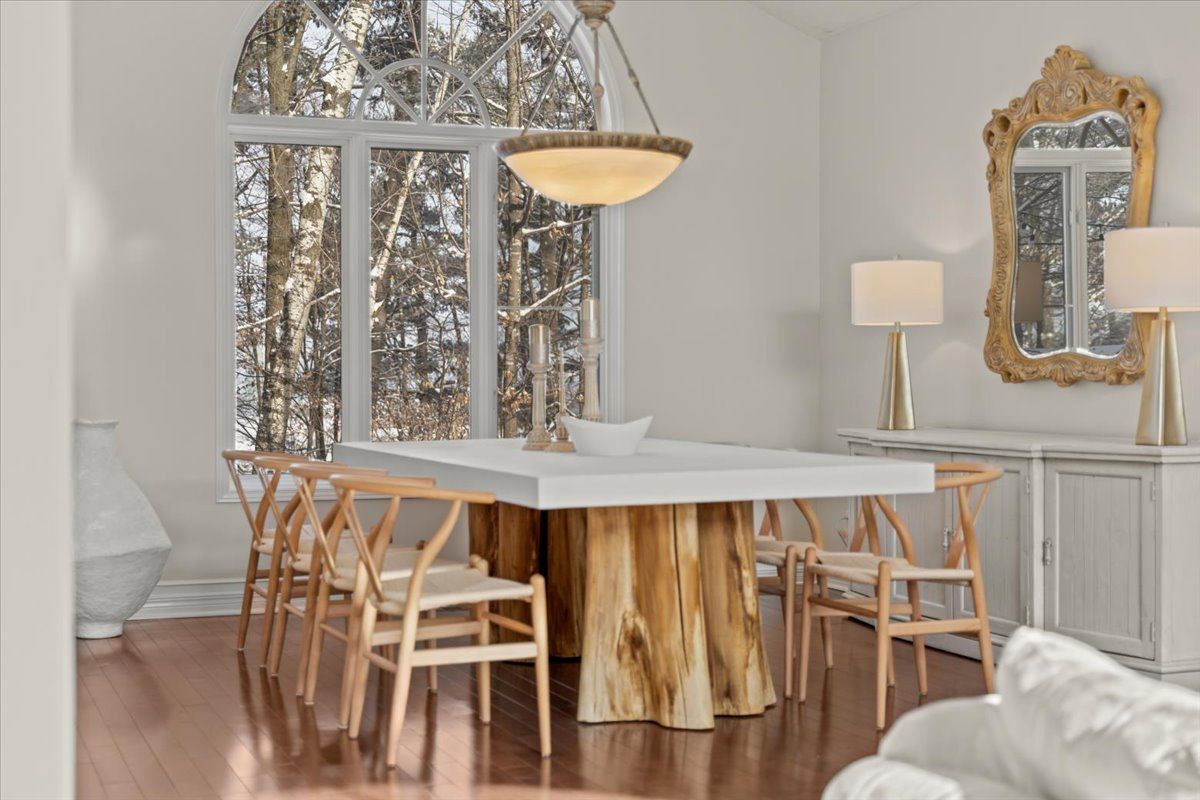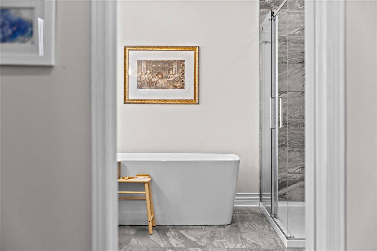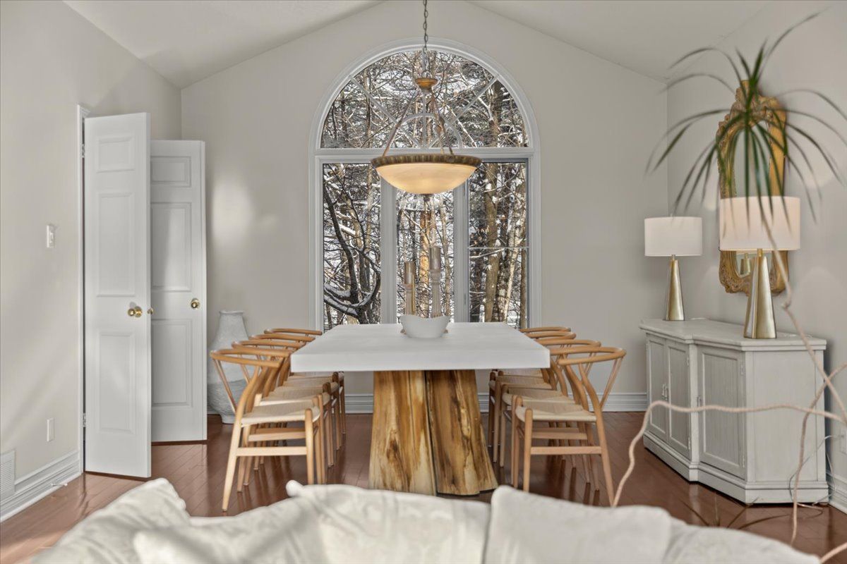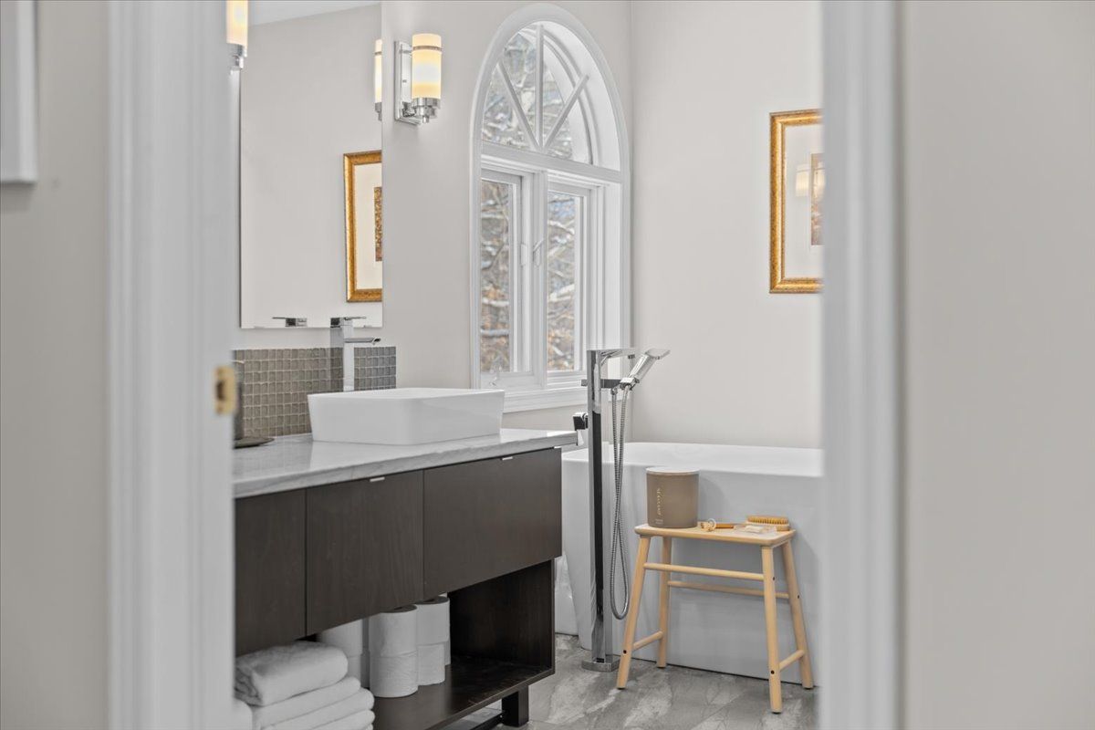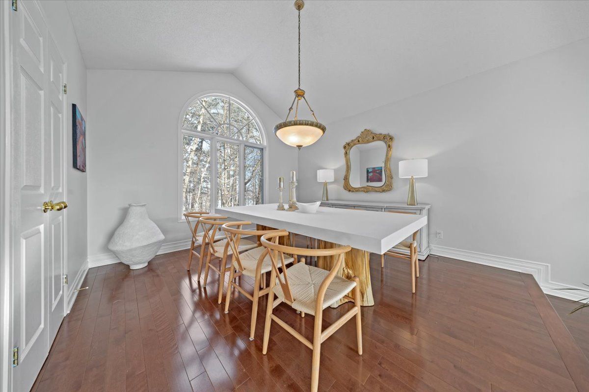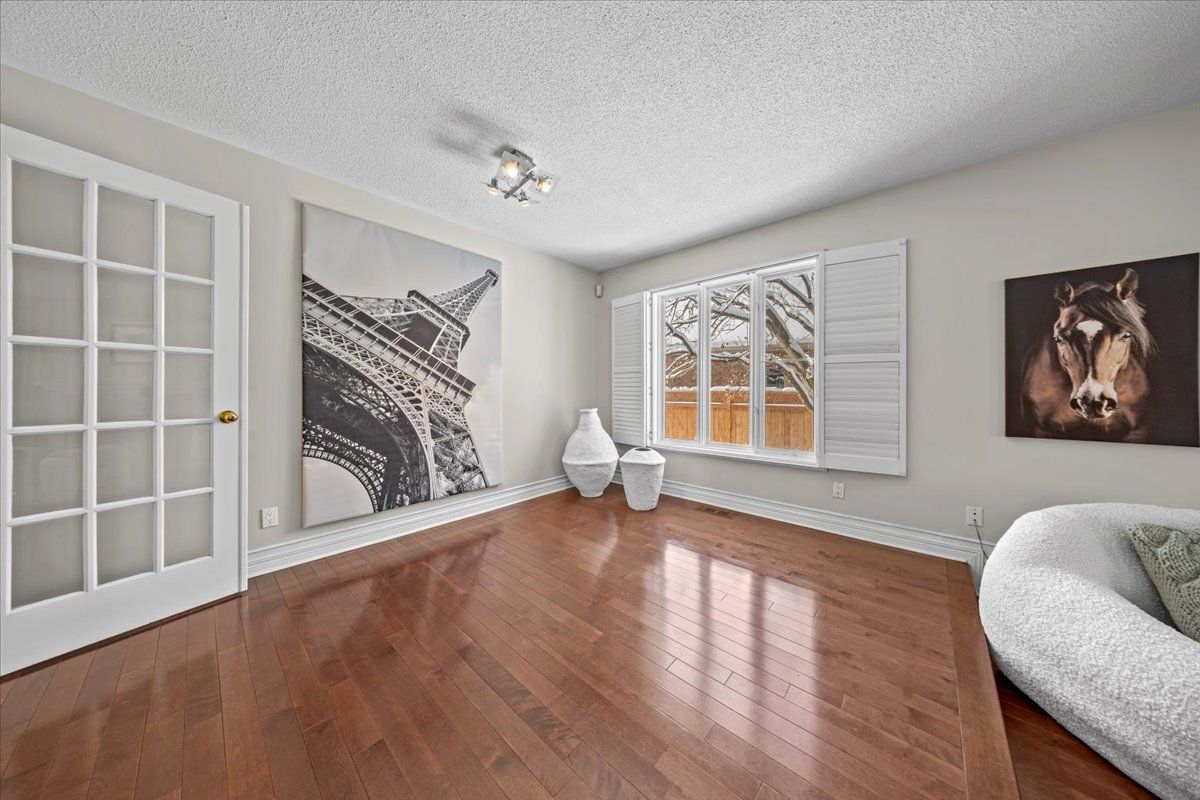 Prestigious 4+1 bedroom home w/pie-shaped rear yard backing onto ravine, twin garage doors, multiple roof peaks, curved transom windows, brick front exterior, interlock walkway, covered front entrance, modern front door w/vertical transom, foyer w/ceramic tile & closet, high baseboards, victoria-style open hardwood staircase & 2-storey high ceiling, living room w/vaulted ceilings, wide-plank hardwood flooring & oversized windows, dining room w/ravine views & butler doors, stylish centre-island kitchen w/granite countertops, recessed sink, pot drawers, marble backsplash, detailed upper and lower mouldings, custom hood-fan, built-in oven & microwave, 4 x burner induction cooktop, deep 24-inch pantry w/pull-out shelving, eating area w/panoramic windows & twin garden doors onto elevated entertainment-sized deck, sunken family room w/pot lighting & wood-burning fireplace framed in marble, open main-floor den w/glass doors & california shutters, 2-pc powder room, main-floor laundry room w/soaker sink & side-door entrance, 2nd level landing w/hardwood, mezzanine railings & linen closet, primary bedroom retreat w/french doors, multiple windows, soft pot lighting, updated spa-style ensuite w/double raised boxed sinks & waterfall taps, quartz-topped vanity, oversized ceramic tile flooring, double-wide glass shower w/rain head and european faucet, stand alone soaker tub positioned w/serene ravine views, deep double-sided walk-in closet, 3 x additional bedrooms w/generous closet space, 4-pc main bathroom w/extra linen storage & window bench seat, straight staircase to multifunctional recreation room w/9-ft high ceilings, twin oversized chest-height windows, coffered ceiling, pot lighting, gas fireplace & entertainment bar, 5th bedroom w/double closets, 3-pc bathroom w/stand-up shower, exercise room w/seasonal closet, storage room w/built-in shelving, rear yard framed by mature trees & side fencing, 2x car garage w/inside access, 24 hour irrevocable on offers