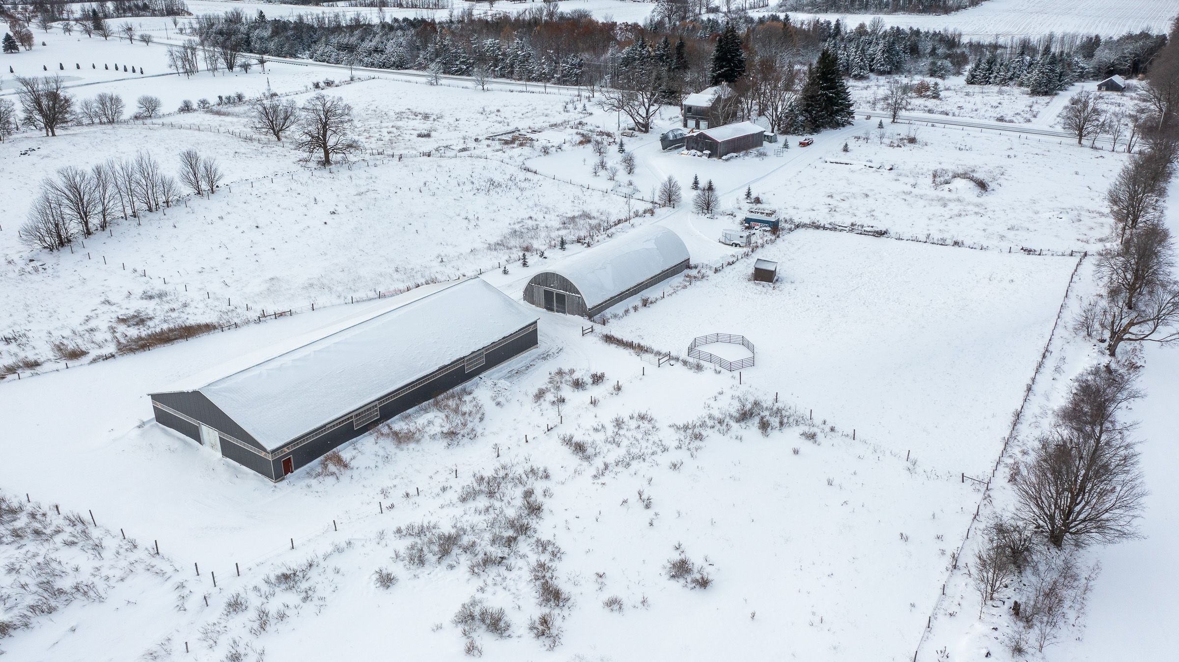 Step inside this meticulously crafted home on 150 acres, centrally located between meaford, grey highlands, and the blue mountains. The interior blends rich textures and thoughtful design, preserving history with custom wood features made from the original farmhouse. A brick-backed fireplace with a classic black wood stove anchors the spacious great room, while the chef's kitchen features bold red cabinetry, a bright blue island, open shelving, a farmhouse sink, and a high-performance professional-style electric range with smooth cooktop, multiple burners, and double ovens. Heated polished concrete floors flow through the living, kitchen, dining, and four-season sunroom, which opens to a private deck perfect for outdoor dining. The primary bedroom is a private retreat with double walk-in closets, access to the covered balcony, and a walk-through to an extra-large office and family room with a second balcony. Three additional bedrooms and one and a half baths provide space for family and guests. An oversized mud/laundry room with built-in storage, large tile shower, and direct access to the two-car garage. Outside, the home blends historic character with modern style, featuring weathered wood siding on the original home paired with a clean-lined contemporary addition. The land includes two large hardwood stands, about 100 acres of open land-much in hay and suitable for cash cropping-with the balance in pasture, naturally drained soil, and excellent fencing on the front 50 acres. The rocklyn creek adds more beauty in all seasons as it meanders through the property . A fully insulated, in-floor heated 32x64 shop with 10 kw solar, a 42x92 coverall barn (2014) with heated tack and feed room, ten 12x12 stalls, oversized aisles, and ample storage, plus a 4-year-old 74x144 riding arena, make this property ideal for agricultural or equestrian pursuits.
