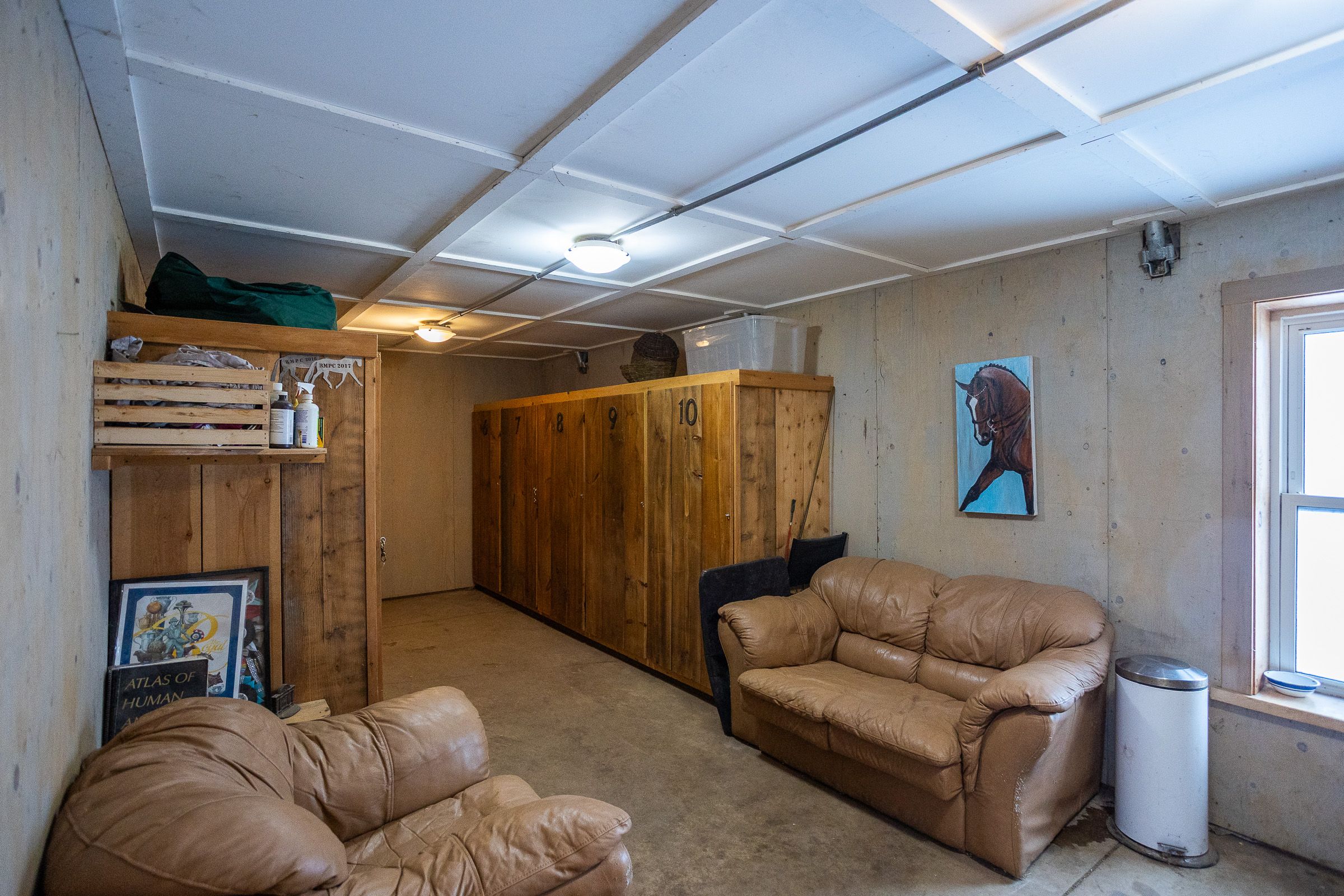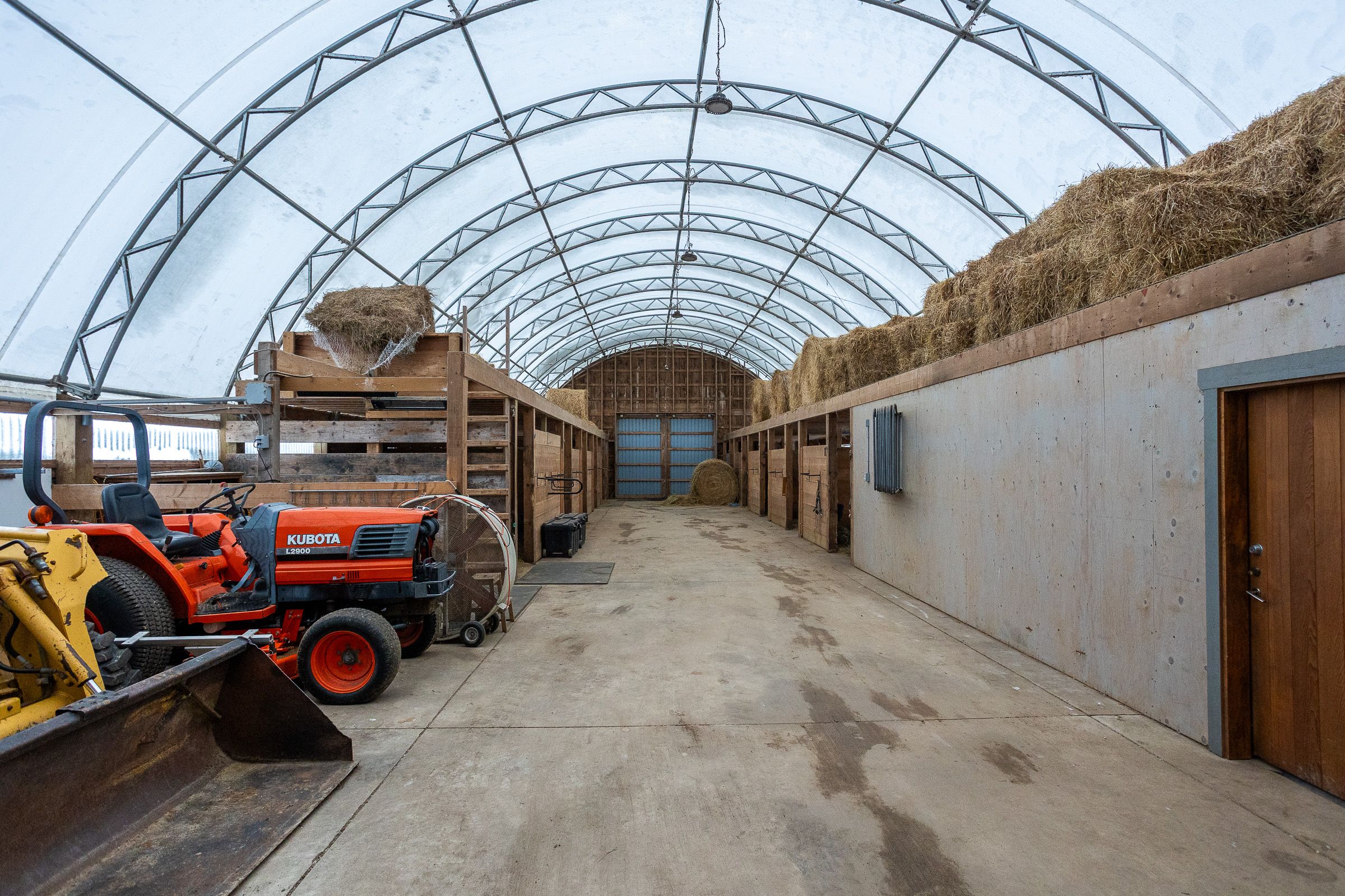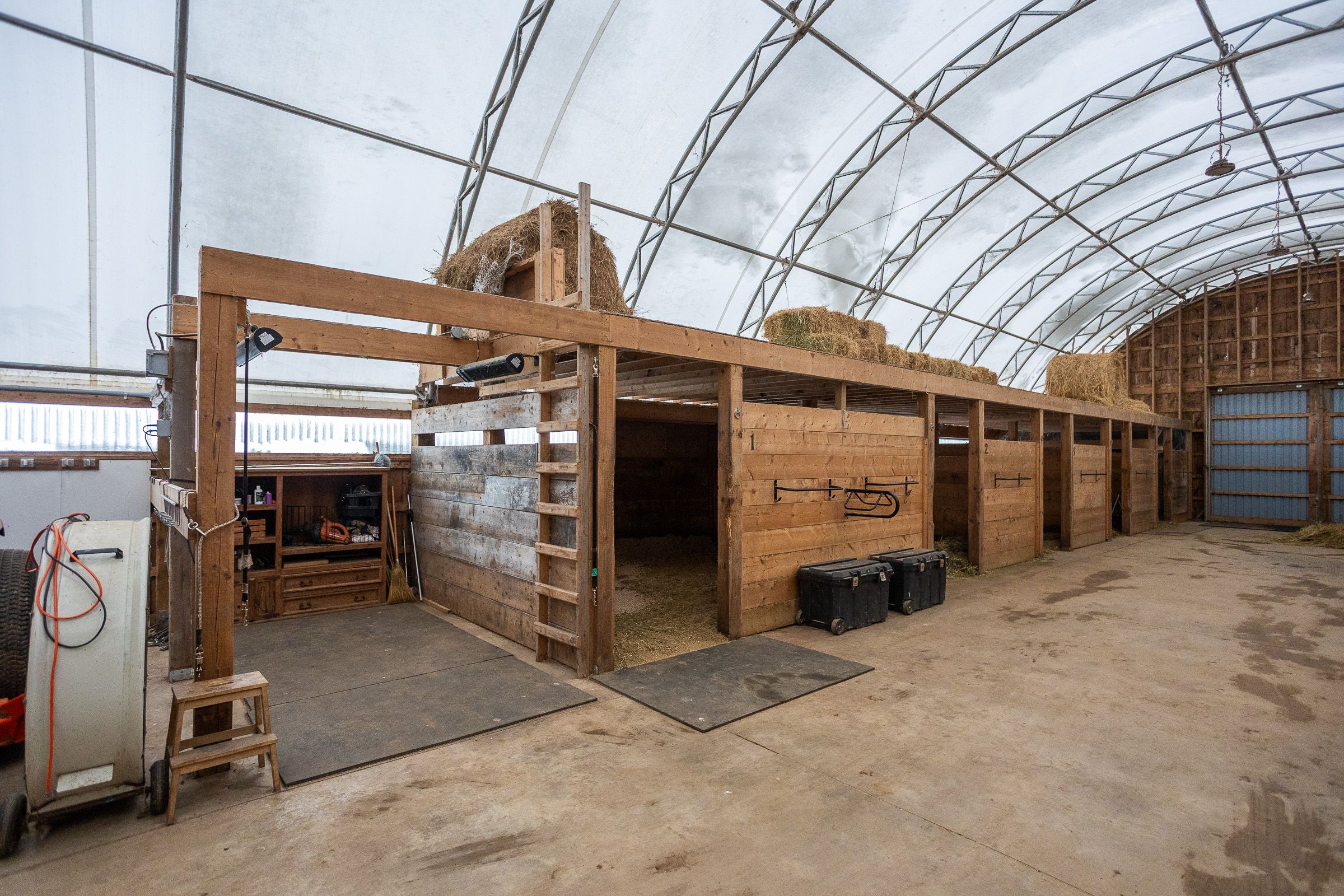 • Outdoor space includes a heated shop, barn, and riding arena for equestrian activities.
