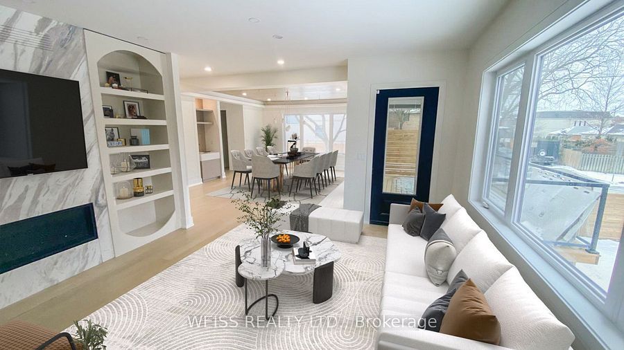 This exquisit home exemplifies elegant & luxury family living,which cannot be rebuilt, at the present asking price. It is a large residence in a desirable location. Premium finishes beautifully-executed custom features at every turn. Generous 4 +1 bedrooms, 7 bathrooms, finished basement with two separate walkouts. 4 car driveway & attached garage. Heated/snow melt system for both front and side exterior stairs, with automatic weather sensor. Extraordinary fenced backyard corner lot -amenable to build a pool-**see pool rendering ** outstanding principal spaces presenting extra high ceilings, beautiful-wide plank engineered hardwood floors and decorated ceiling treatment. Family room w/ gas fireplace, built-in bookshelves & bay windows. Beautiful dining room, gracious chefs kitchen w/ marble countertops, high-end appliances, 2 sinks stations. Central island & breakfast area. Walk out to a large deck with natural gas bbq connection. Rough-in for electric awning over deck . Family room and basement with walk-outs to backyard. Stylish office featuring integrated bookcases & bay window. Impeccably conceived second floor with wet bar & built in bar fridge. Primary suite with 6-piece ensuite of spa-like quality, heated floors; full size stacked washer and dryer. Wired wi-fi booster; smart home controlled hub, multiple wall mounted alexa screen for smart home control. Main floor smart wifi switches, nest thermosts, integrated security camera system with 6 cameras and nvr recorder, sonos system with built in ceiling speakers. All bedrooms have ensuite bathrooms. Well-appointed basement at 10 ft+ high ceilings, vast entertainment room w/ adjoining recreation area, nanny suite, two 4-piece bathroms & fitness room with rock climbing wall. Rooms virtually staged. So many more features- all detailed in the schedule below. Superb location short walk to everything.... *** a vendor take back first mortgage up to $2,000,000 is available to qaulified buyer at reasonable rate***.