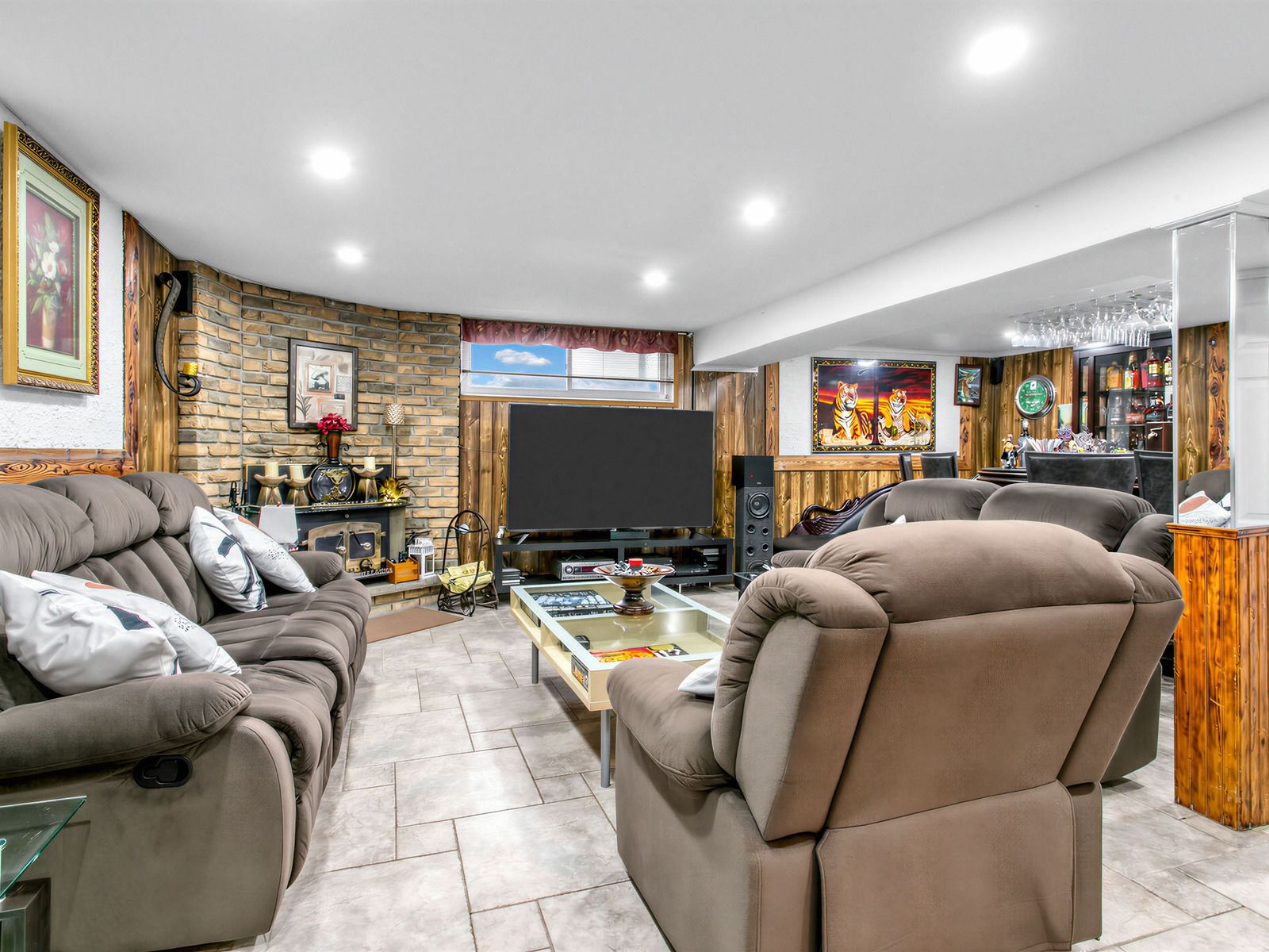 • Finished basement with fireplace, extra storage, and convenient access to garage.