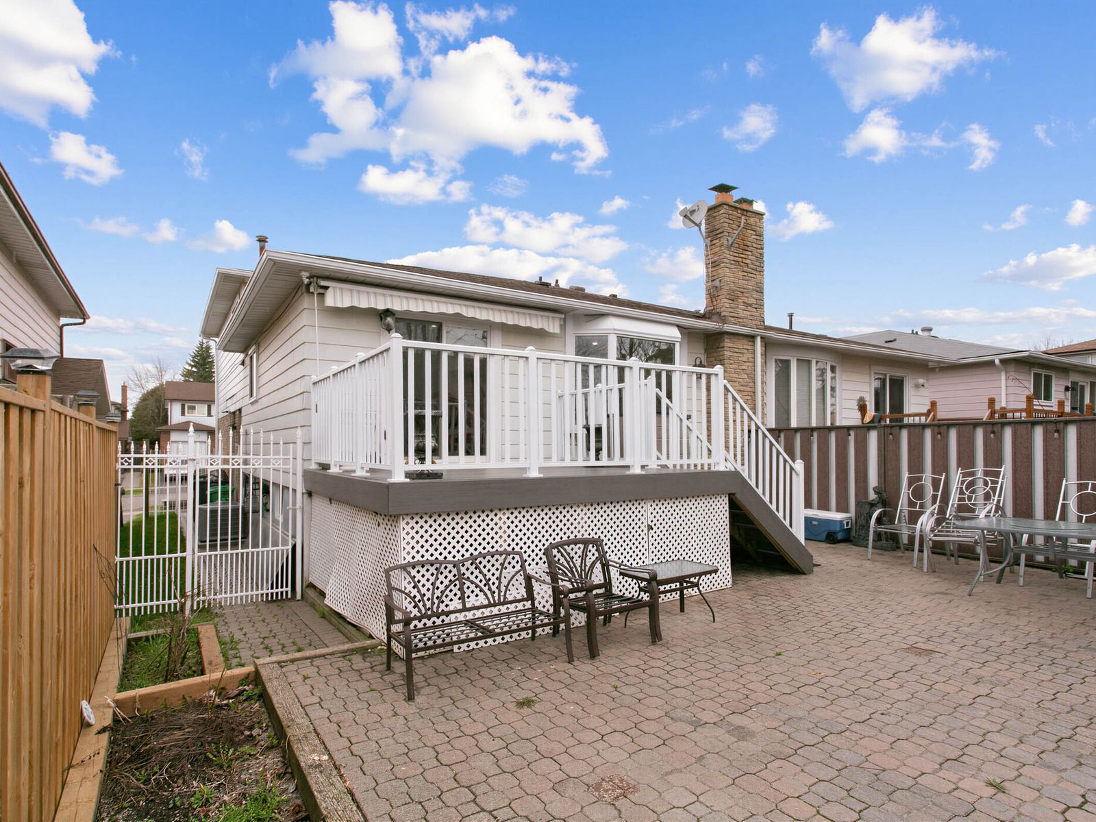 • Fully fenced backyard with interlocking, composite deck, and outdoor entertaining space.