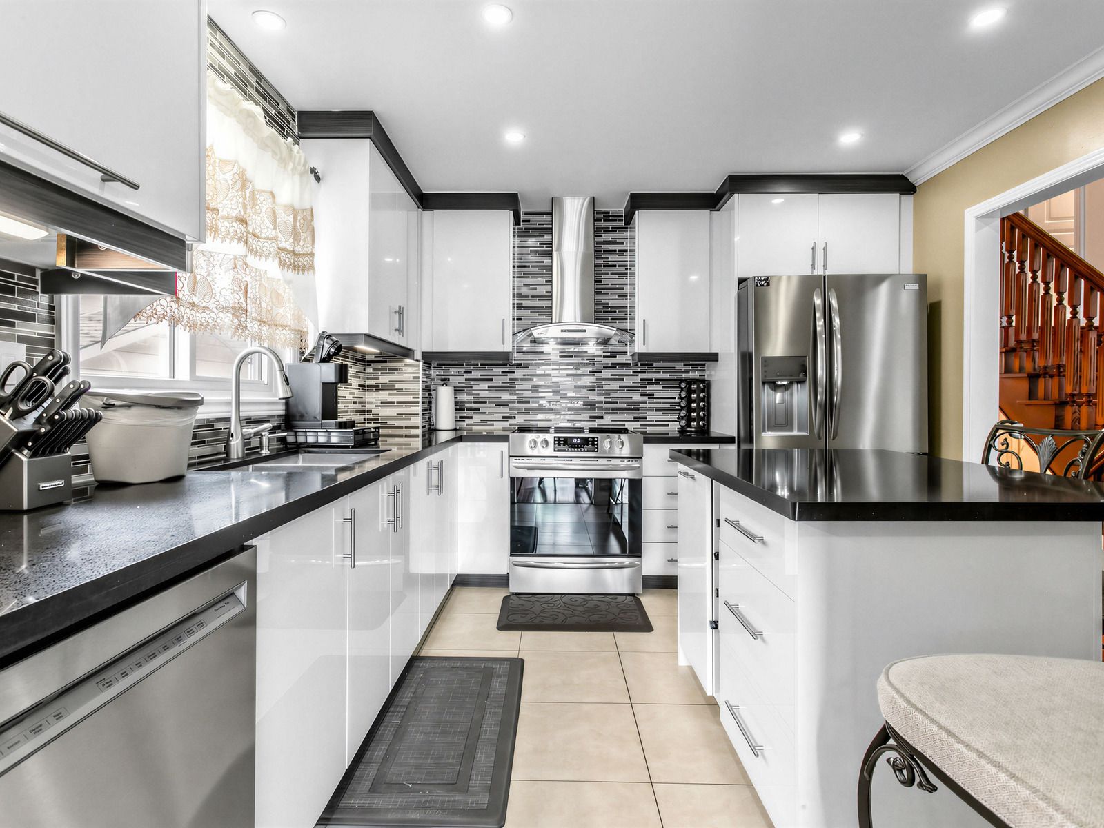 Spacious and well-located 4-bedroom backsplit home in the heart of brampton, featuring 3 full bathrooms, parking for 4 vehicles, and a finished basement. This carpet-free home has been freshly painted and offers a functional layout with a convenient main floor bedroom and ensuite-ideal for guests, in-laws, or a home office. The updated kitchen showcases quartz countertops, quartz island, modern backsplash, and newer appliances. Enjoy seamless indoor-outdoor living with a walkout to a fully fenced backyard complete with interlocking and a composite deck with aluminum railing, retractable patio canopy, and metallic gazebo-perfect for entertaining. Additional features include direct access from garage to main floor, automated garage door with remote, 5 ceiling fans with remote controls, 6 automated blinds (2024), pot lights throughout, and a new illuminated address sign. The home is equipped with 4 security cameras accessible via cellphone and an owned water filtration system. Finished basement offers extra living space, wood-burning fireplace, and over 200 sq ft of crawl space for additional storage. All tv brackets included. Located within walking distance to schools, parks, shopping, and restaurants, this is a move-in-ready home combining comfort, convenience, and thoughtful upgrades. A rare combination of space, upgrades, and location-move in and enjoy with confidence!!