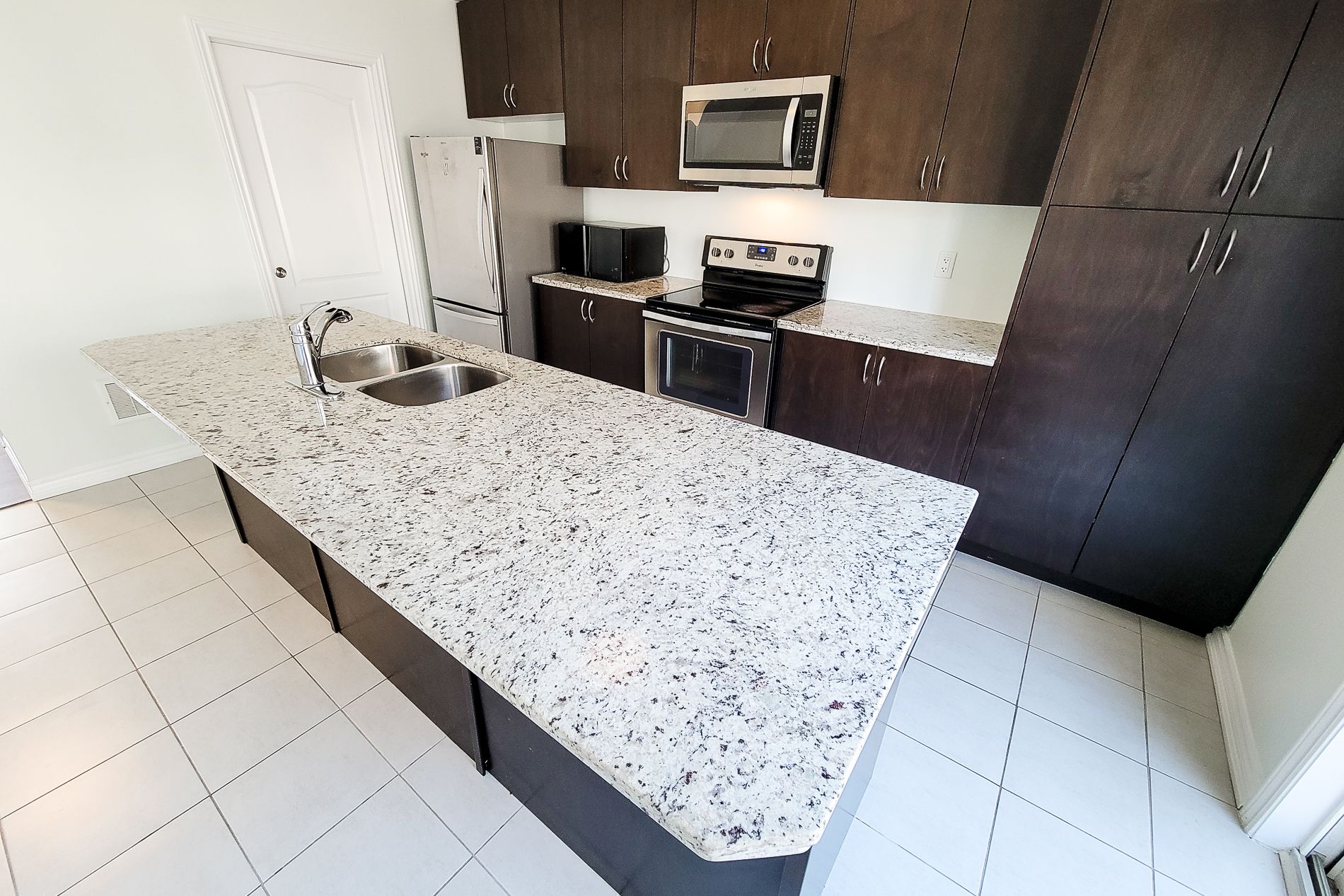 • Gourmet kitchen features quartz countertops and stainless steel appliances.