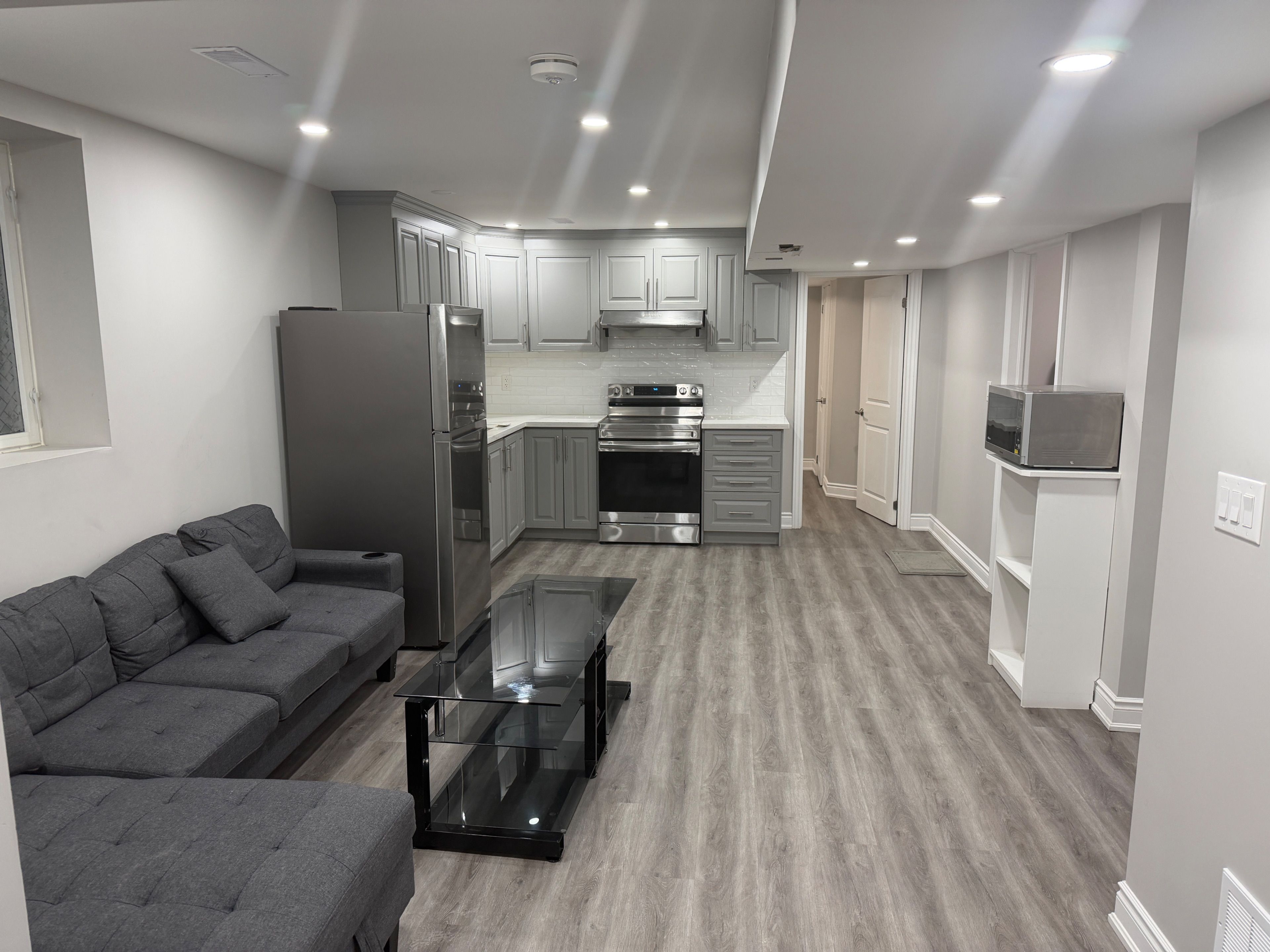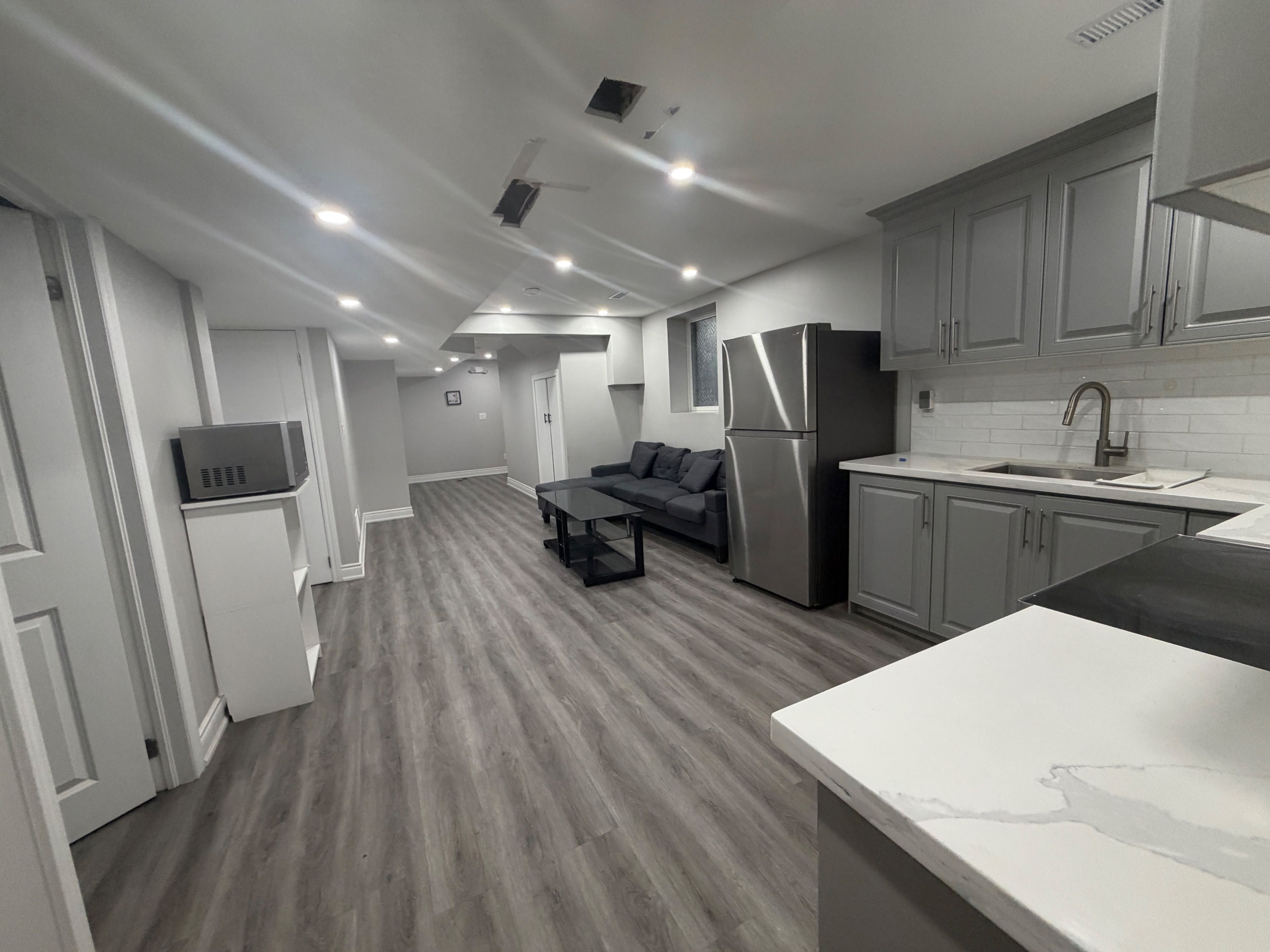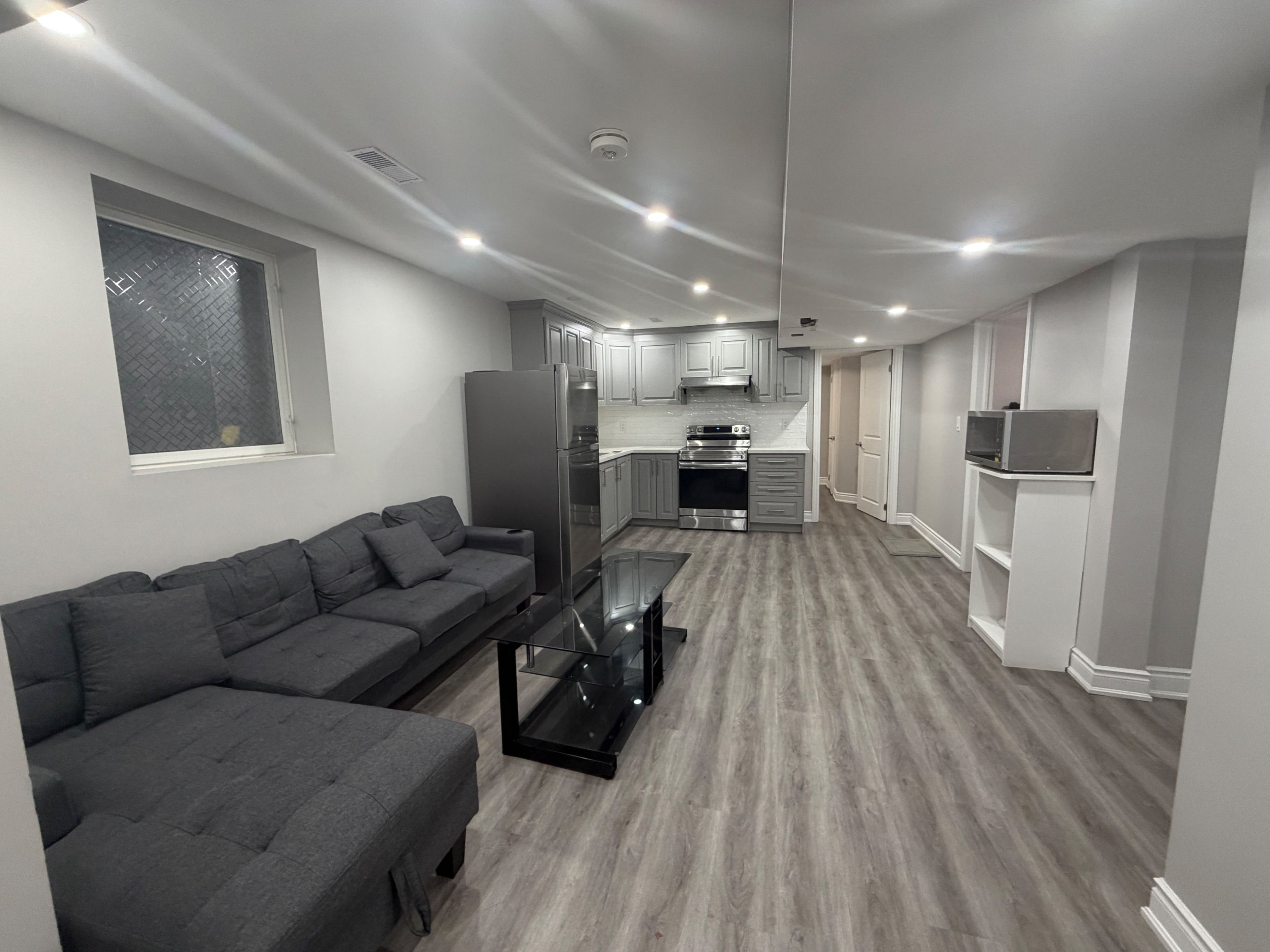 New spacious legal 2-bedroom, 1-bath basement apartment located in a high-demand neighbourhood in brampton's west end @ creditview rd & sandalwood pkwy w. This bright and well-maintained unit features a comfortable living room with laminate flooring, pot lights, and a large egress window that brings in plenty of natural light. The functional kitchen offers granite counter, a stylish backsplash, and ample counter space. Both bedrooms are generously sized and include laminate floors, closets, and windows. A modern 4-piece bathroom with standing shower with ceramic flooring completes the space. Additional features include separate laundry and a private side entrance for added convenience and privacy. Ideal for a young professional orcouple or small family. Located just steps to all amenities including mount pleasant go station, cassie campbell community centre, public transit, shopping, schools, parks, and placesof worship, with easy access to major routes.