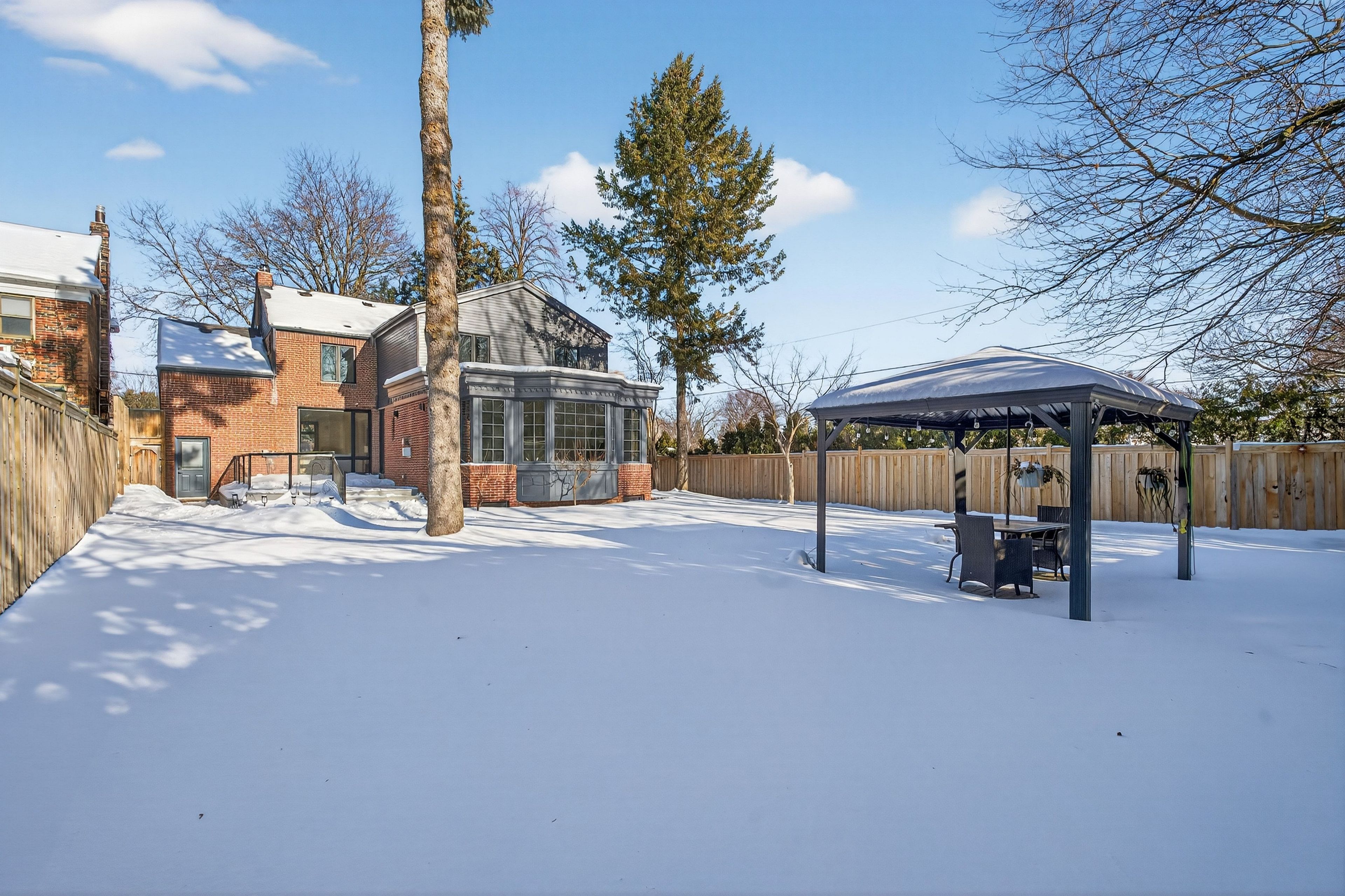 • Private backyard with a large deck and gazebo for relaxing.