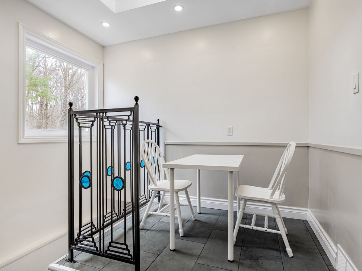 • Spacious kitchen with skylight and updated stainless steel appliances.
