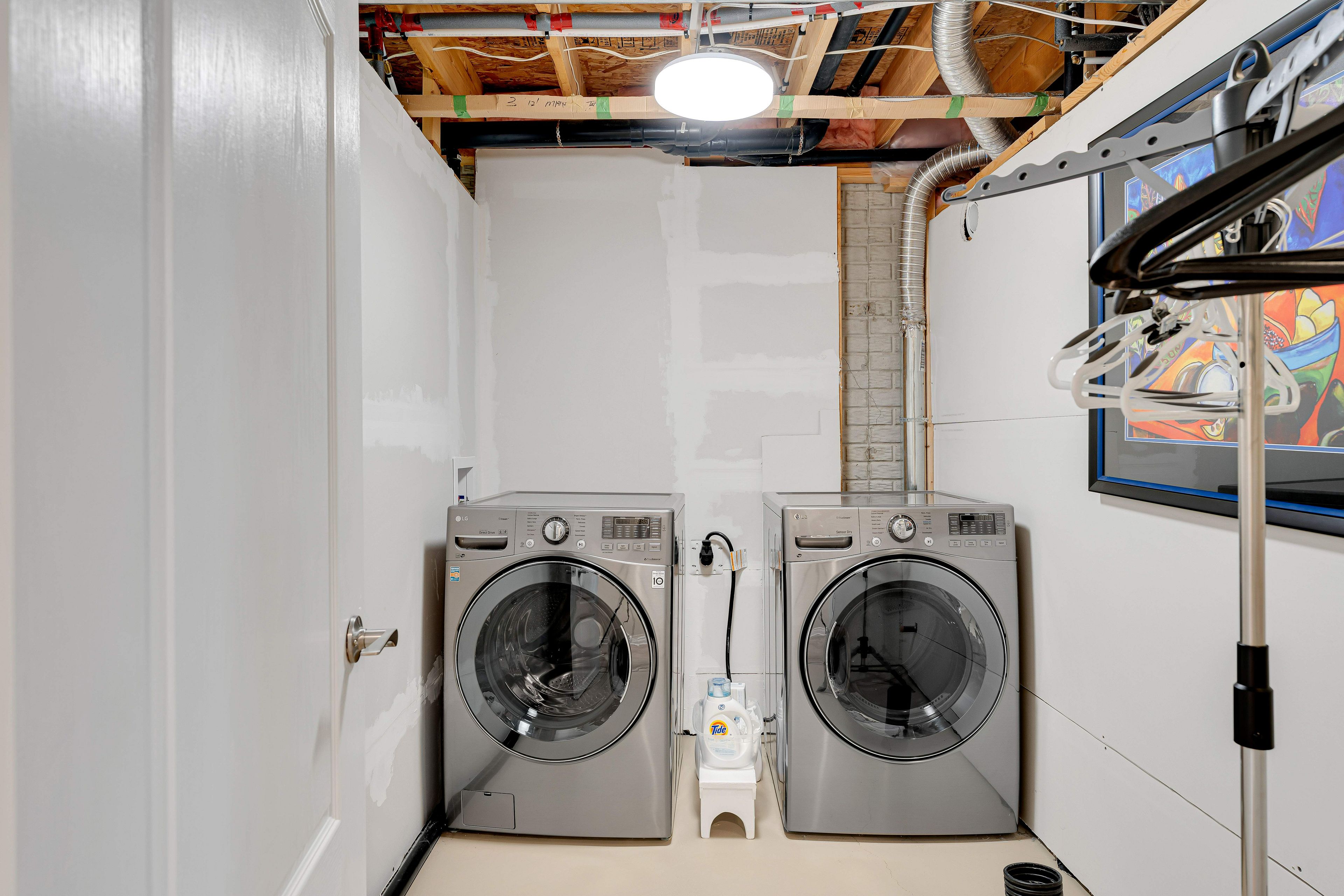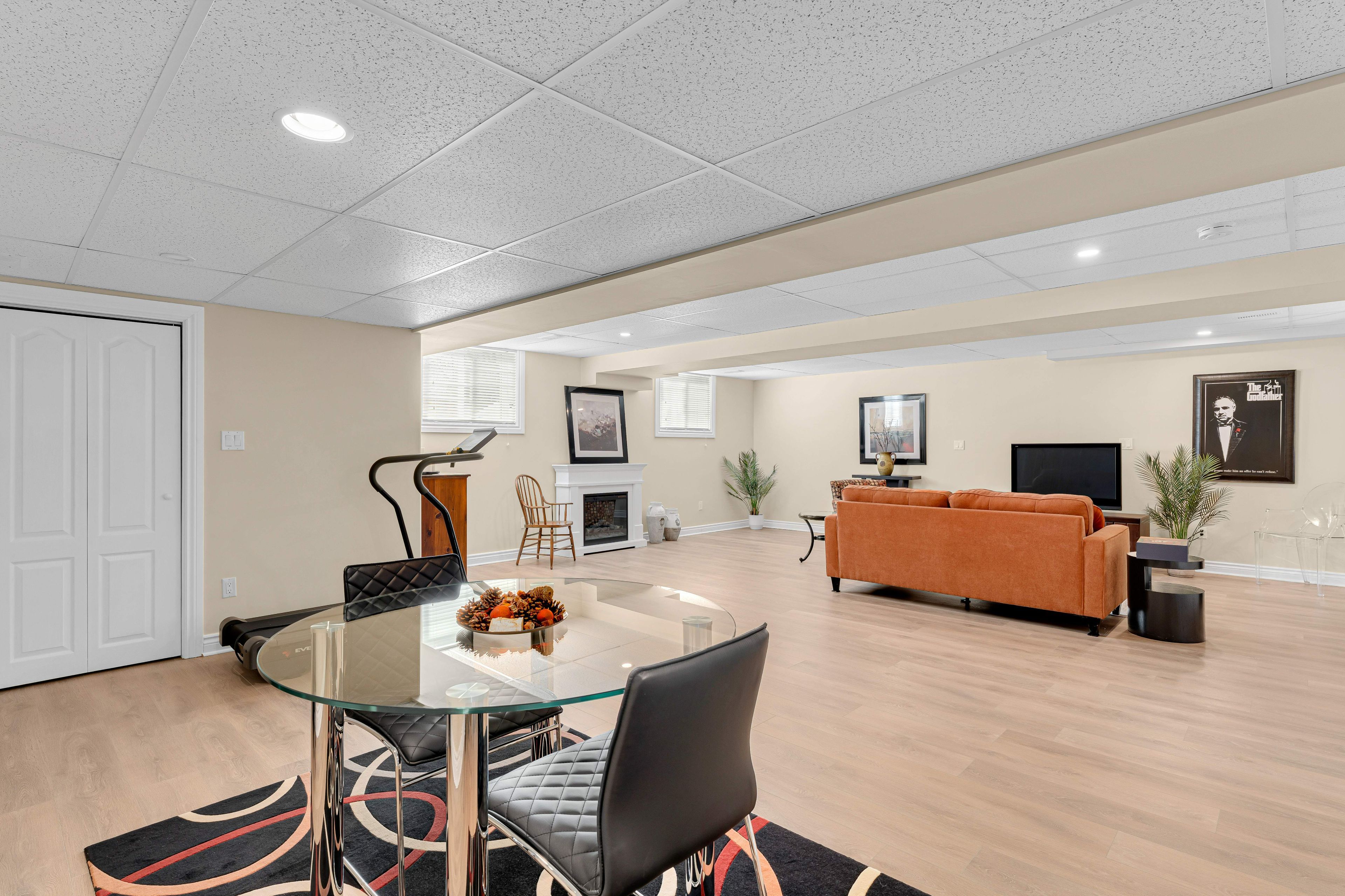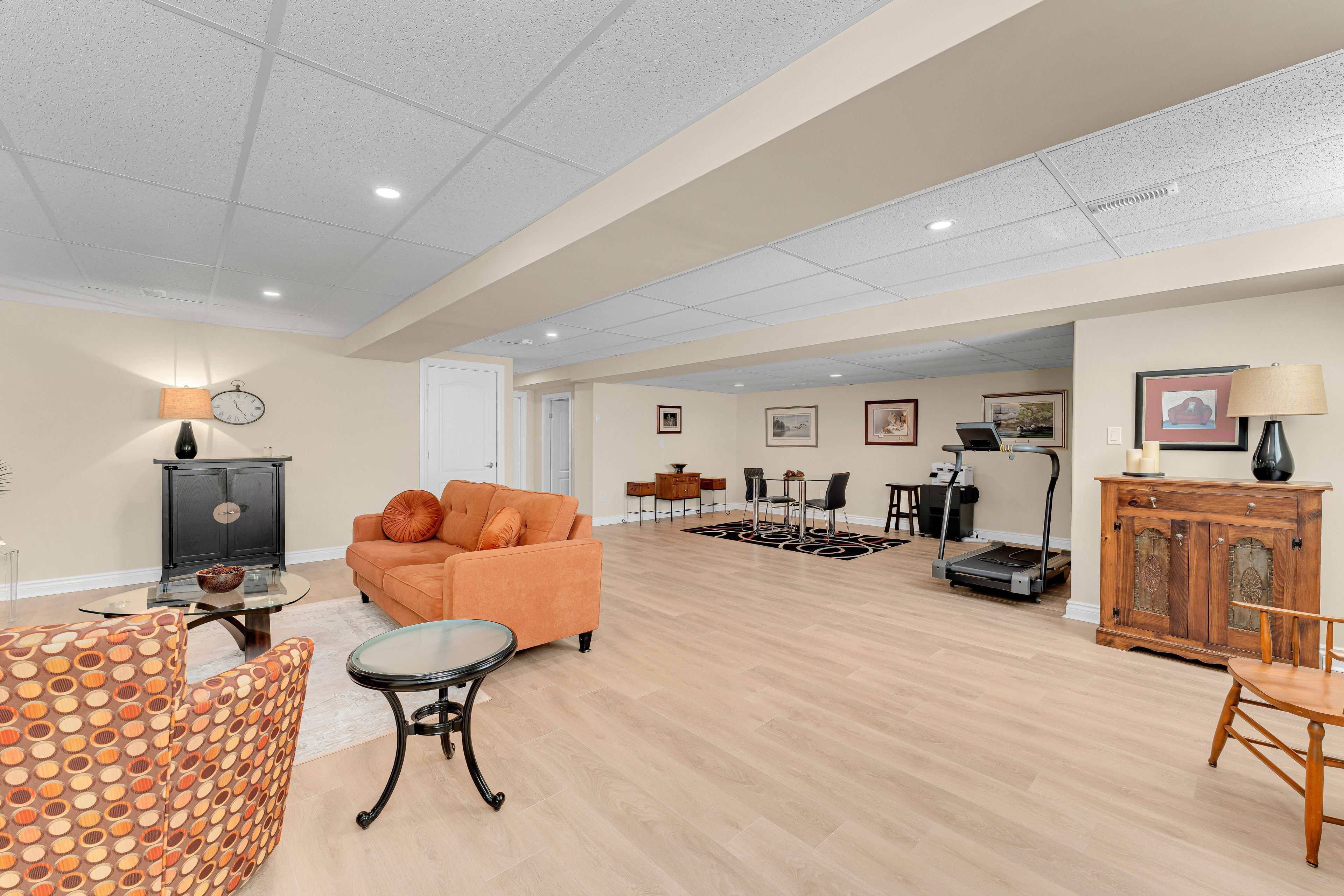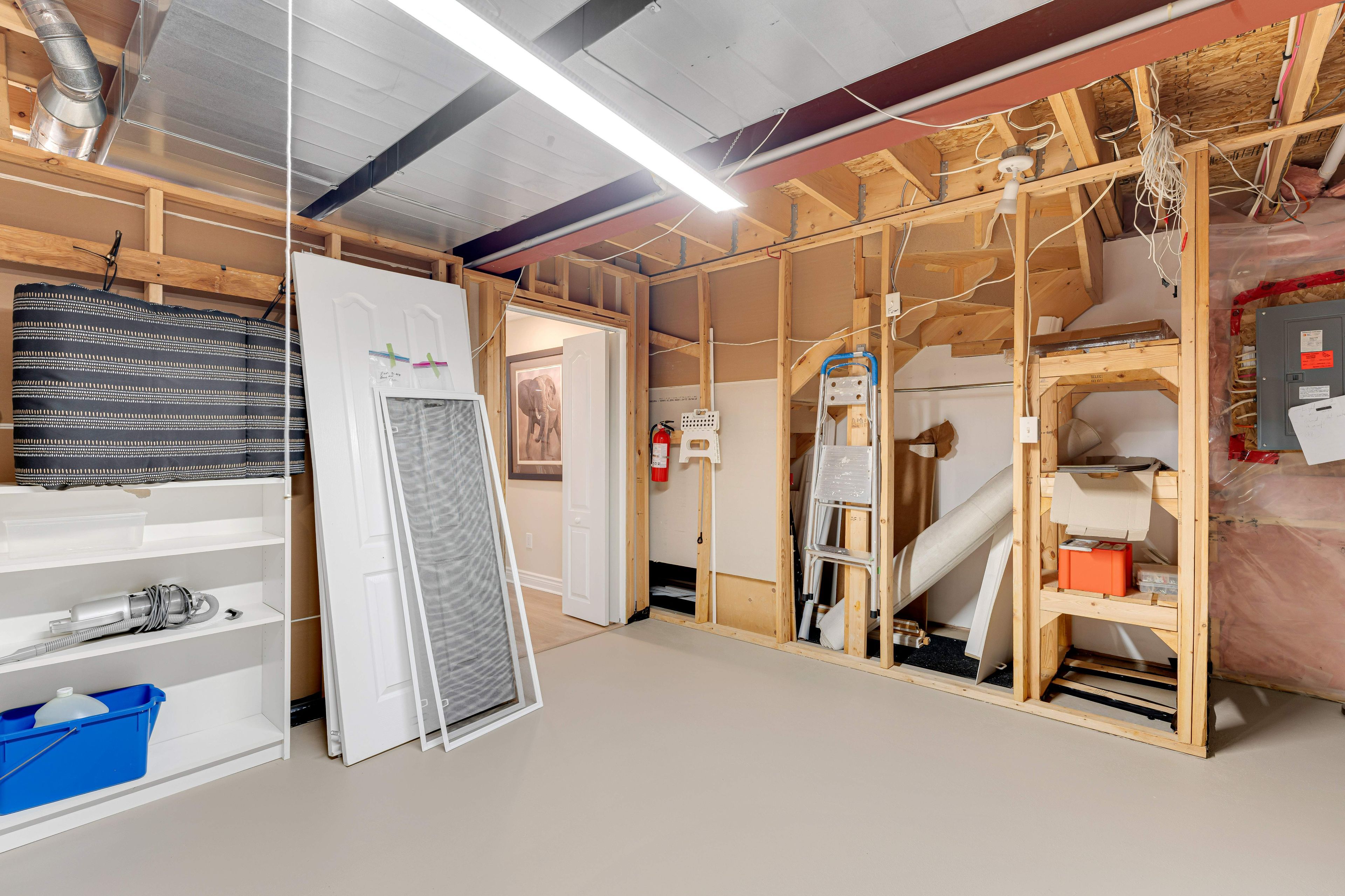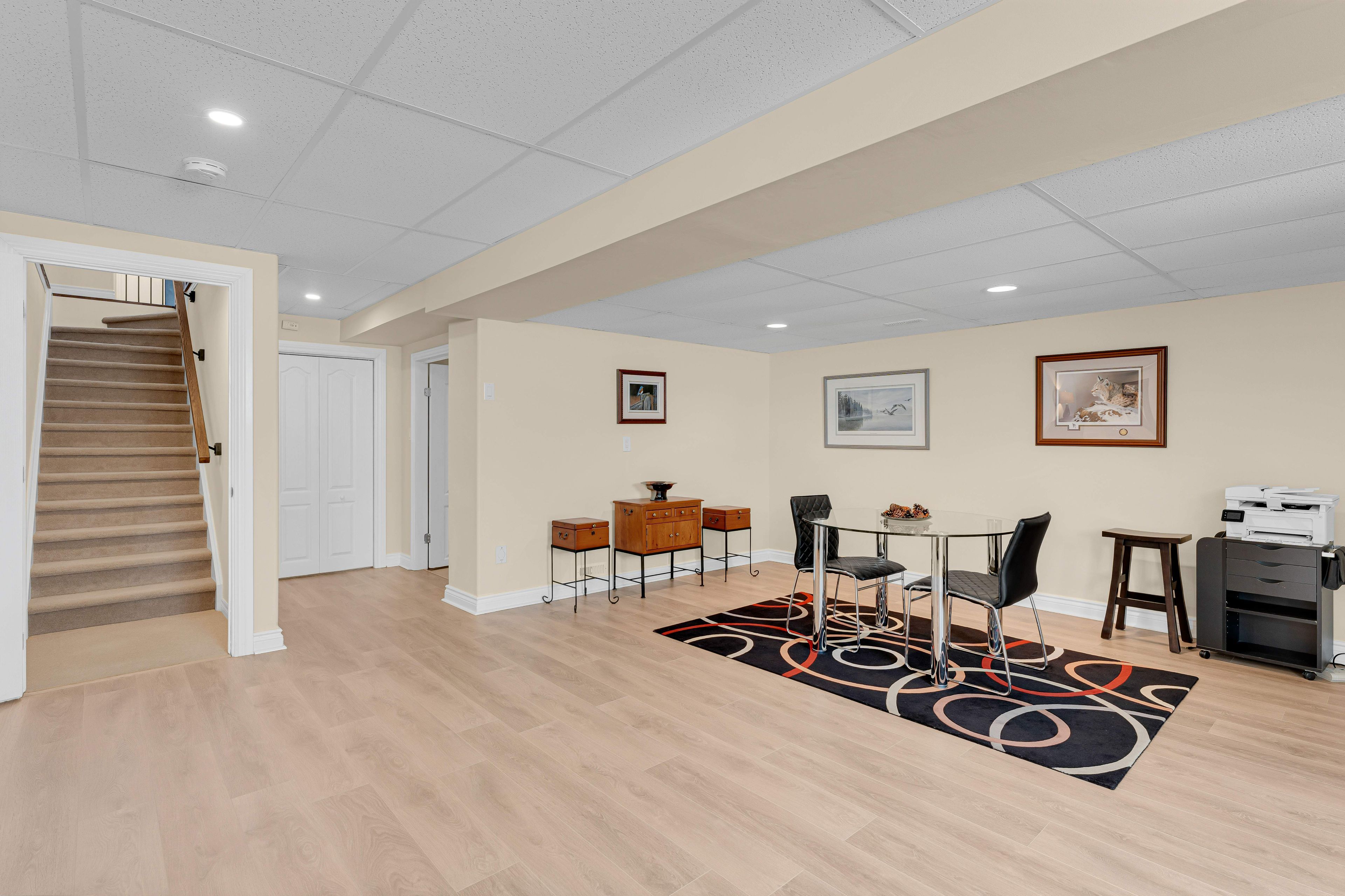 • Large carpet-free recreation room with additional storage and laundry options.