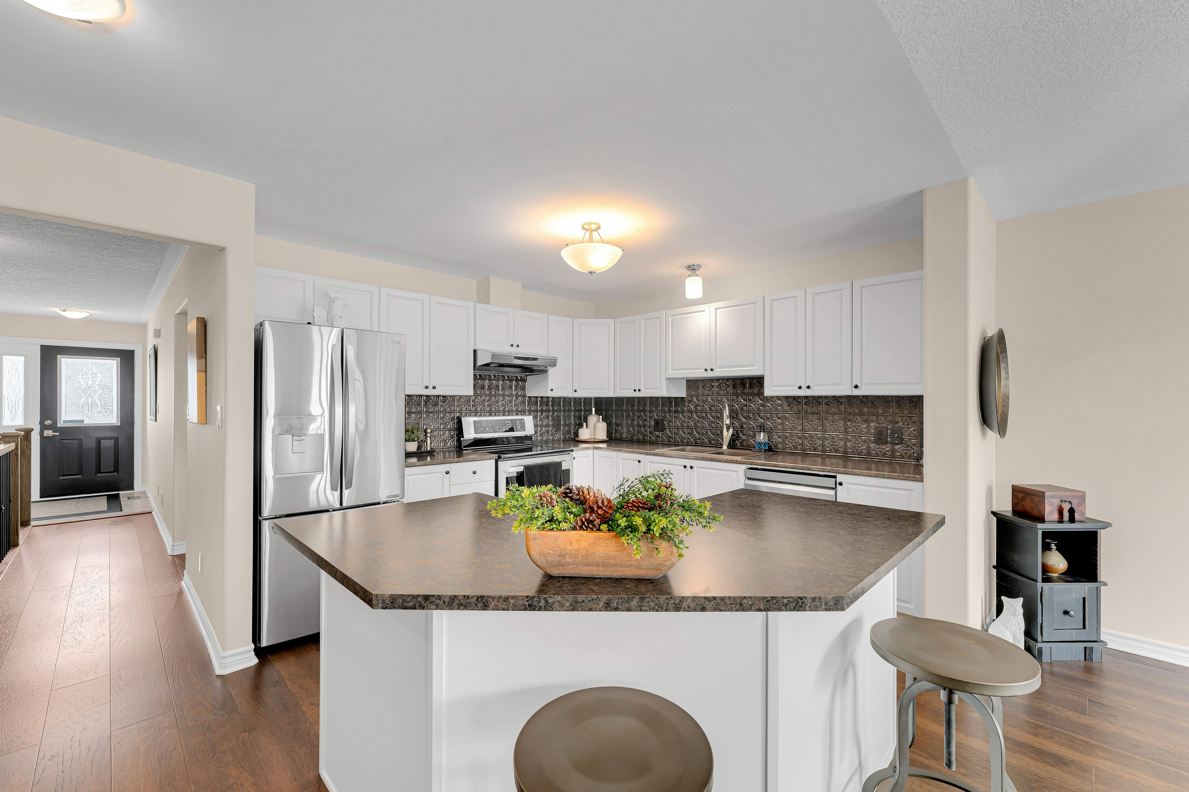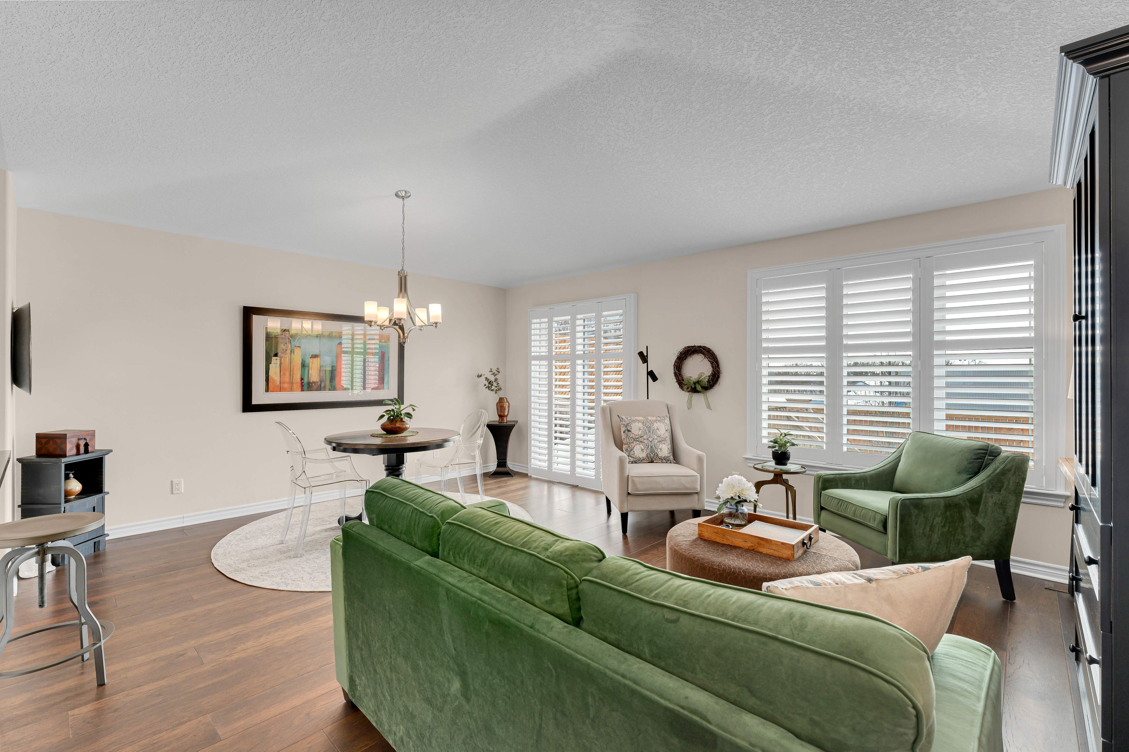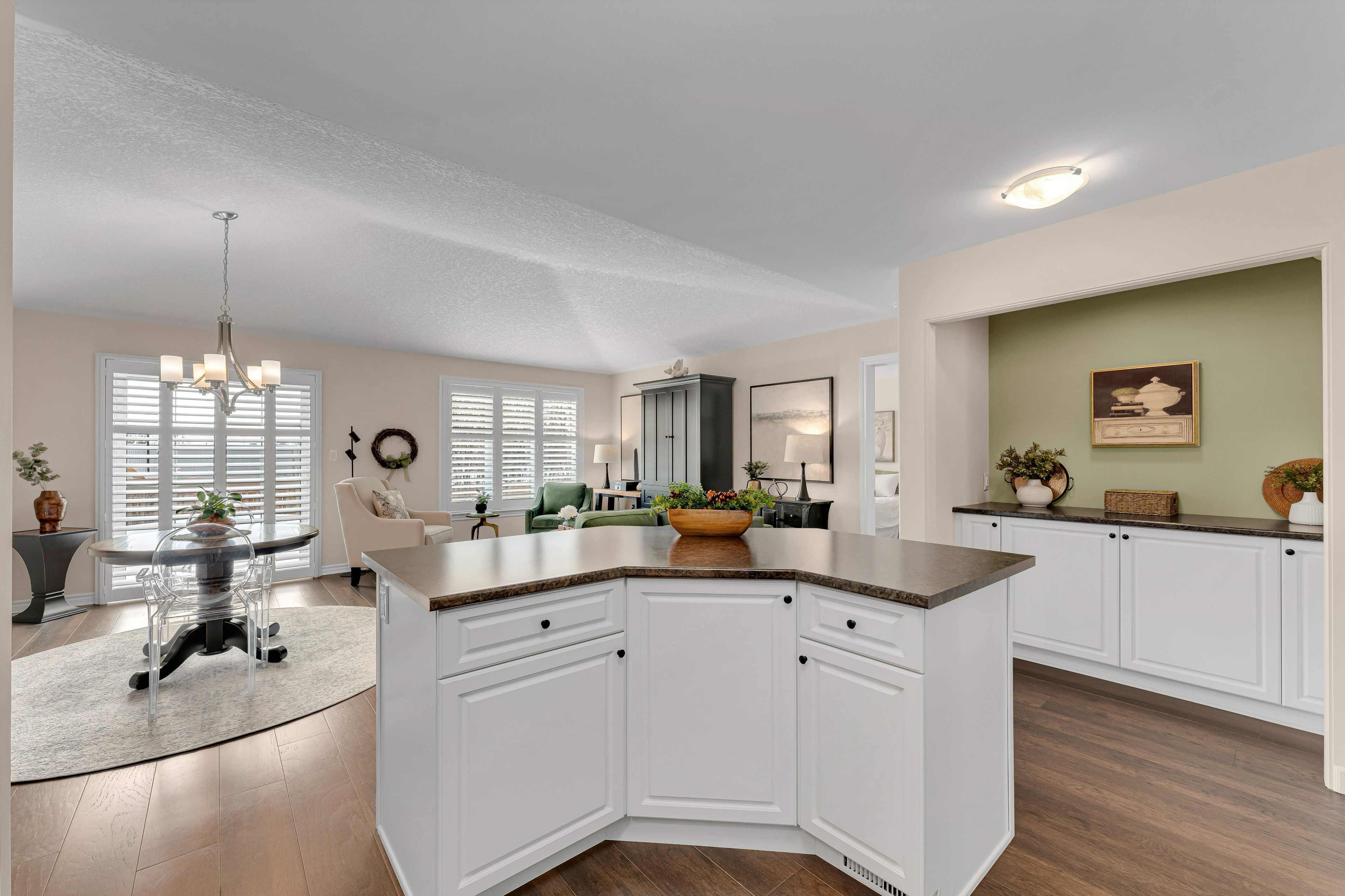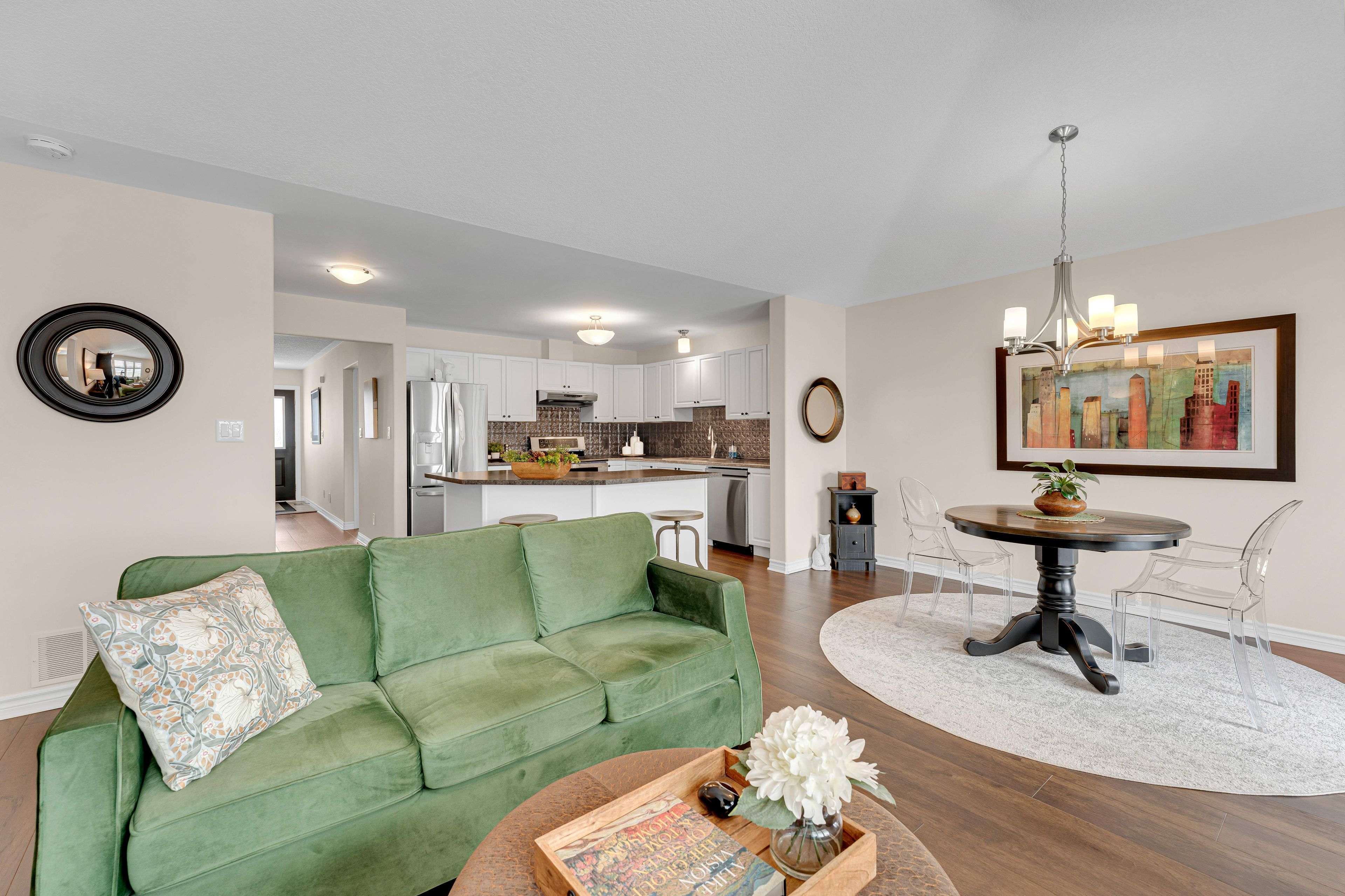 • Open concept living with engineered hardwood and south facing windows.