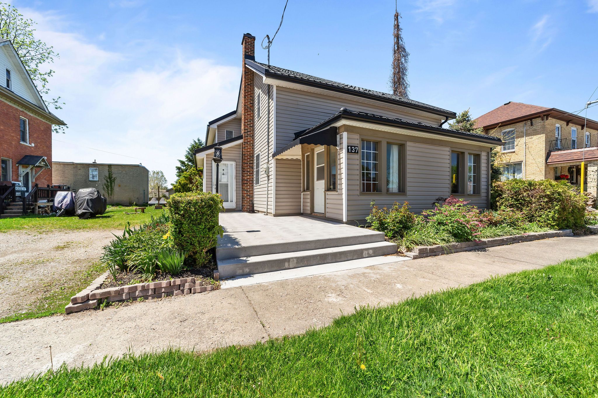 Set on a private quarter-acre lot surrounded by breathtaking gardens and mature fruit trees, this beautifully updated 4+1 bedroom home features a steel roof and an abundance of charm. A crisp concrete front porch and back walkways lead you into a spacious mudroom that sets the welcoming tone as you step inside. The main floor is open and inviting, with a bright kitchen and dining area perfect for gatherings. The family room features a cozy freestanding stove, while a large main floor bedroom adds flexibility to the layout. You'll also find a sun-filled front porch and a walk-in shower bathroom conveniently located near the home office and laundry room, which provides direct access to the garage. Upstairs, youll be impressed by the additional family room with exposed wood beams and another full bathroom. One of the upper bedrooms features a walkout porch overlooking the stunning backyard a true garden lovers dream with 78 fruit trees, including apple, pear, peach, and cherry, as well as berry bushes like gooseberry and red currants. The property also includes two chicken coops for those looking to embrace a homestead lifestyle. Updates 2025: new eavestroughs, seamless aluminum & downspouts, new soffit and facia2024 - all new floors up & down, painting, professionally refinished cabinets, quartz countertops, closet doors, baseboards. 2023 updated fridge, gas stove, built-in microwave, dishwasher, new window/doors (2002), new steel roof life warranty (2022) updated insulation in the walls (2002) newer front porch & side concrete, furnace 2020, air conditioner - 2020, new fence, front porch (2025)