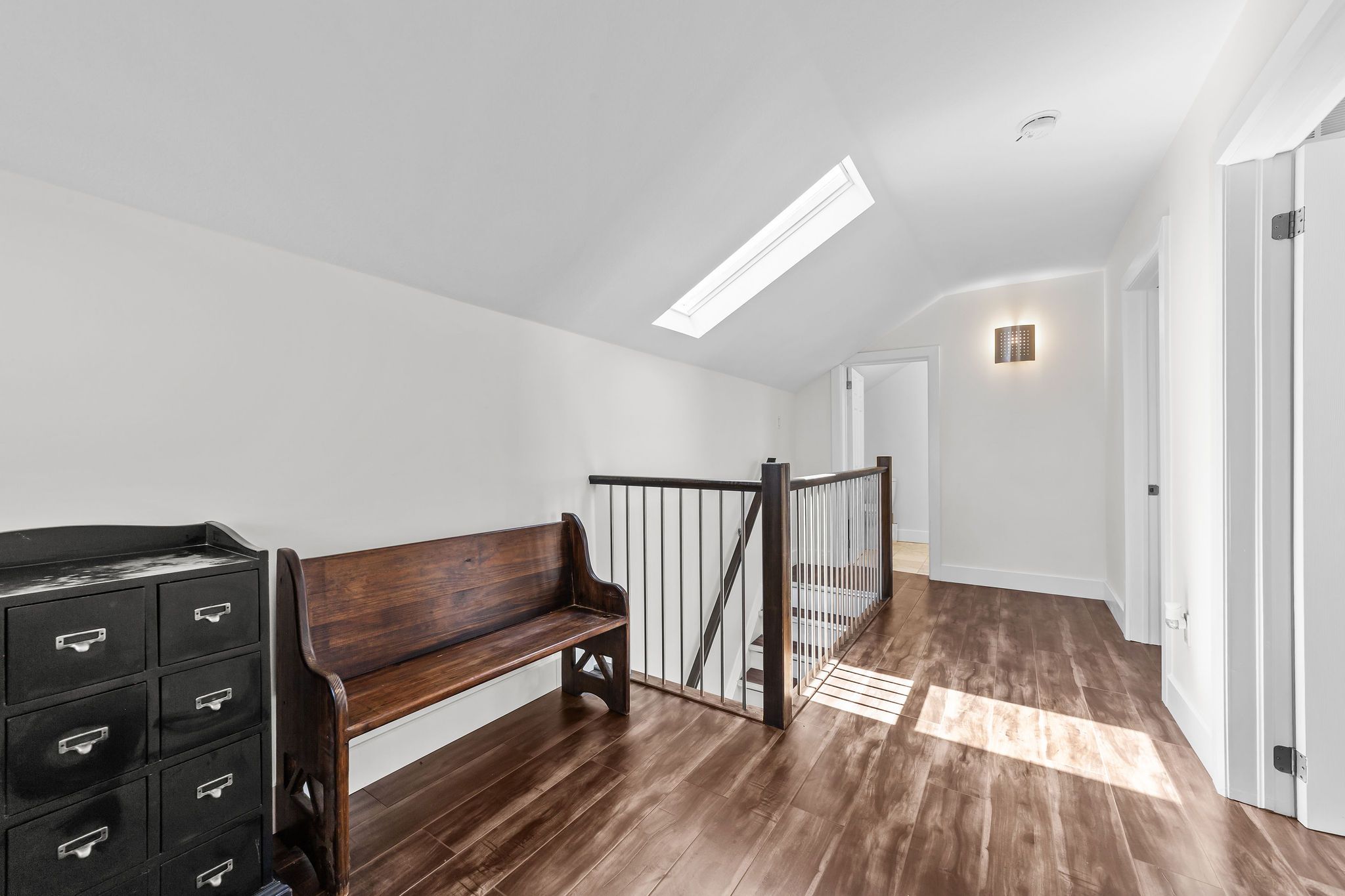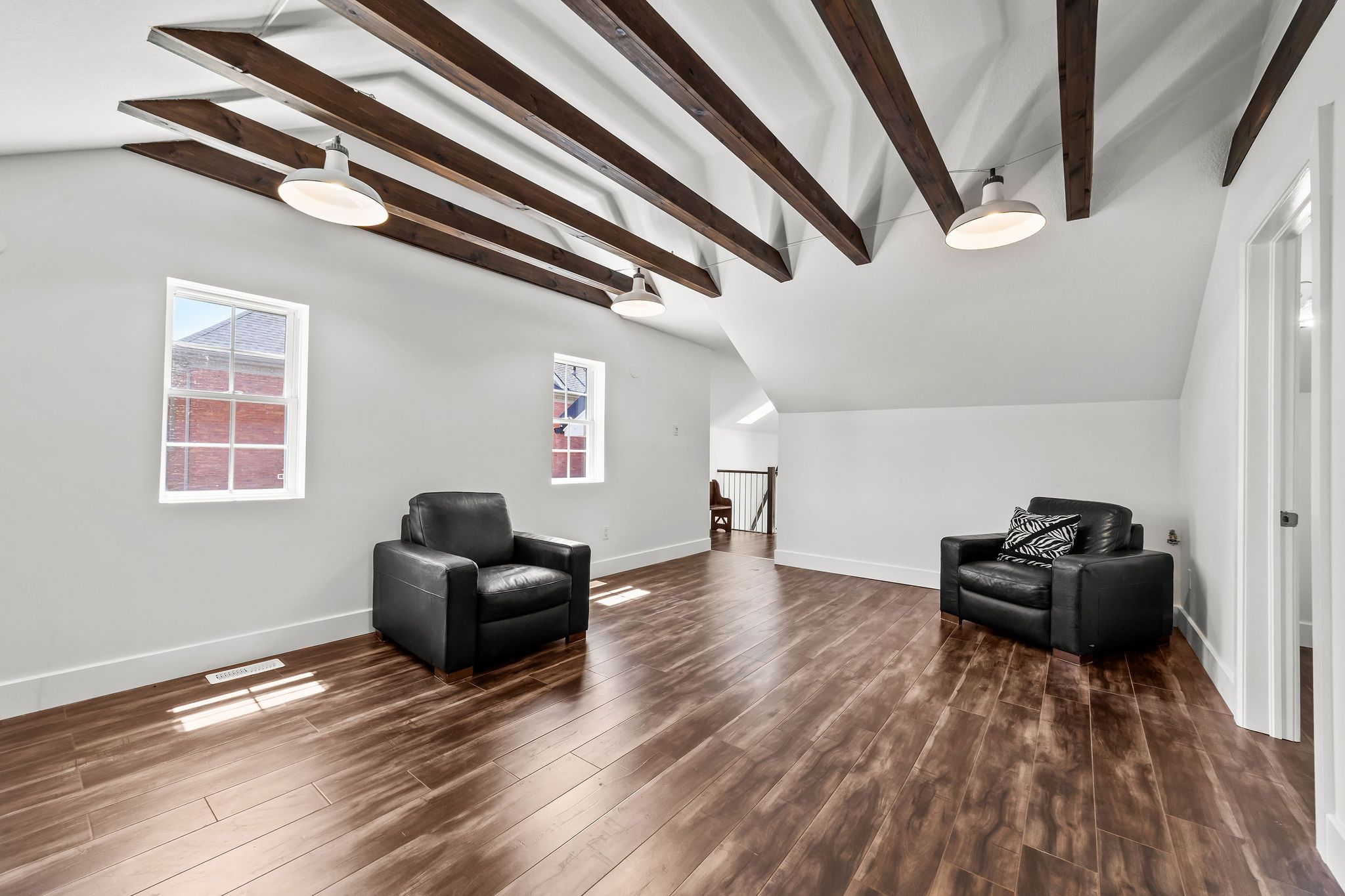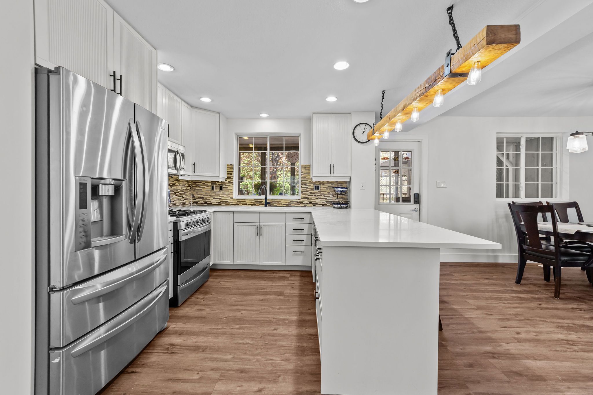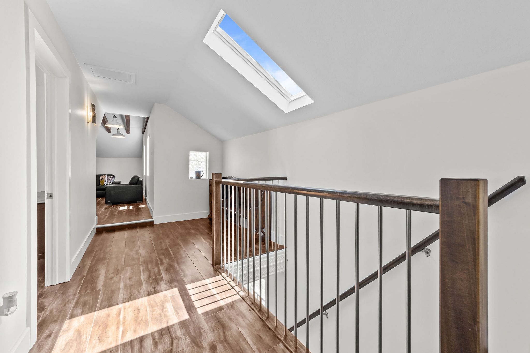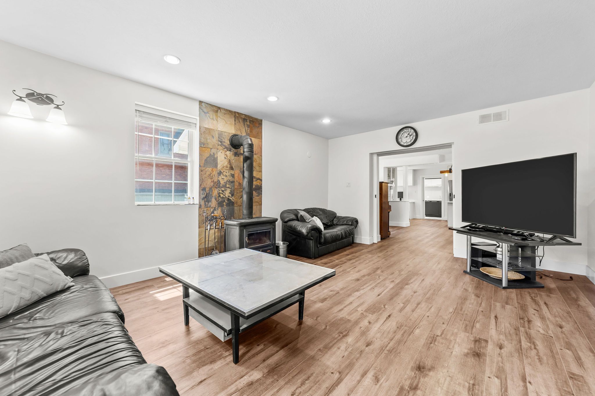 Set on a private quarter-acre lot surrounded by breathtaking gardens and mature fruit trees, this beautifully updated 4+1 bedroom home features a steel roof and an abundance of charm. A crisp concrete front porch and back walkways lead you into a spacious mudroom that sets the welcoming tone as you step inside. The main floor is open and inviting, with a bright kitchen and dining area perfect for gatherings. The family room features a cozy freestanding stove, while a large main floor bedroom adds flexibility to the layout. You'll also find a sun-filled front porch and a walk-in shower bathroom conveniently located near the home office and laundry room, which provides direct access to the garage. Upstairs, youll be impressed by the additional family room with exposed wood beams and another full bathroom. One of the upper bedrooms features a walkout porch overlooking the stunning backyard a true garden lovers dream with 78 fruit trees, including apple, pear, peach, and cherry, as well as berry bushes like gooseberry and red currants. The property also includes two chicken coops for those looking to embrace a homestead lifestyle. Updates 2025: new eavestroughs, seamless aluminum & downspouts, new soffit and facia2024 - all new floors up & down, painting, professionally refinished cabinets, quartz countertops, closet doors, baseboards. 2023 updated fridge, gas stove, built-in microwave, dishwasher, new window/doors (2002), new steel roof life warranty (2022) updated insulation in the walls (2002) newer front porch & side concrete, furnace 2020, air conditioner - 2020, new fence, front porch (2025)