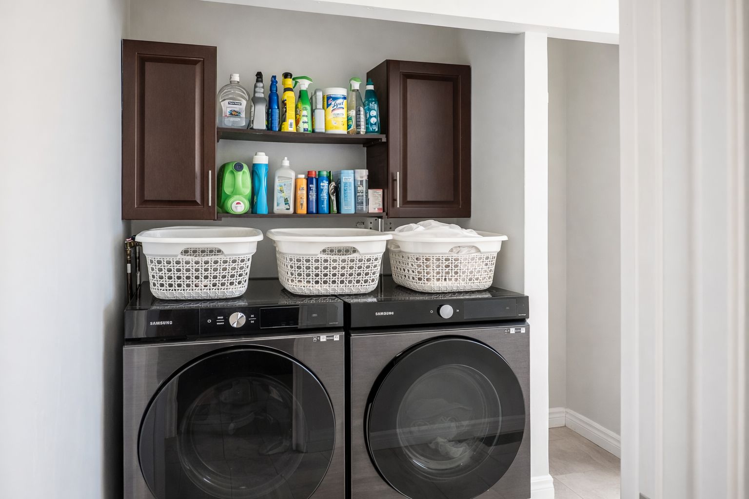 • Three bedrooms upstairs and two in the basement for flexible living.
