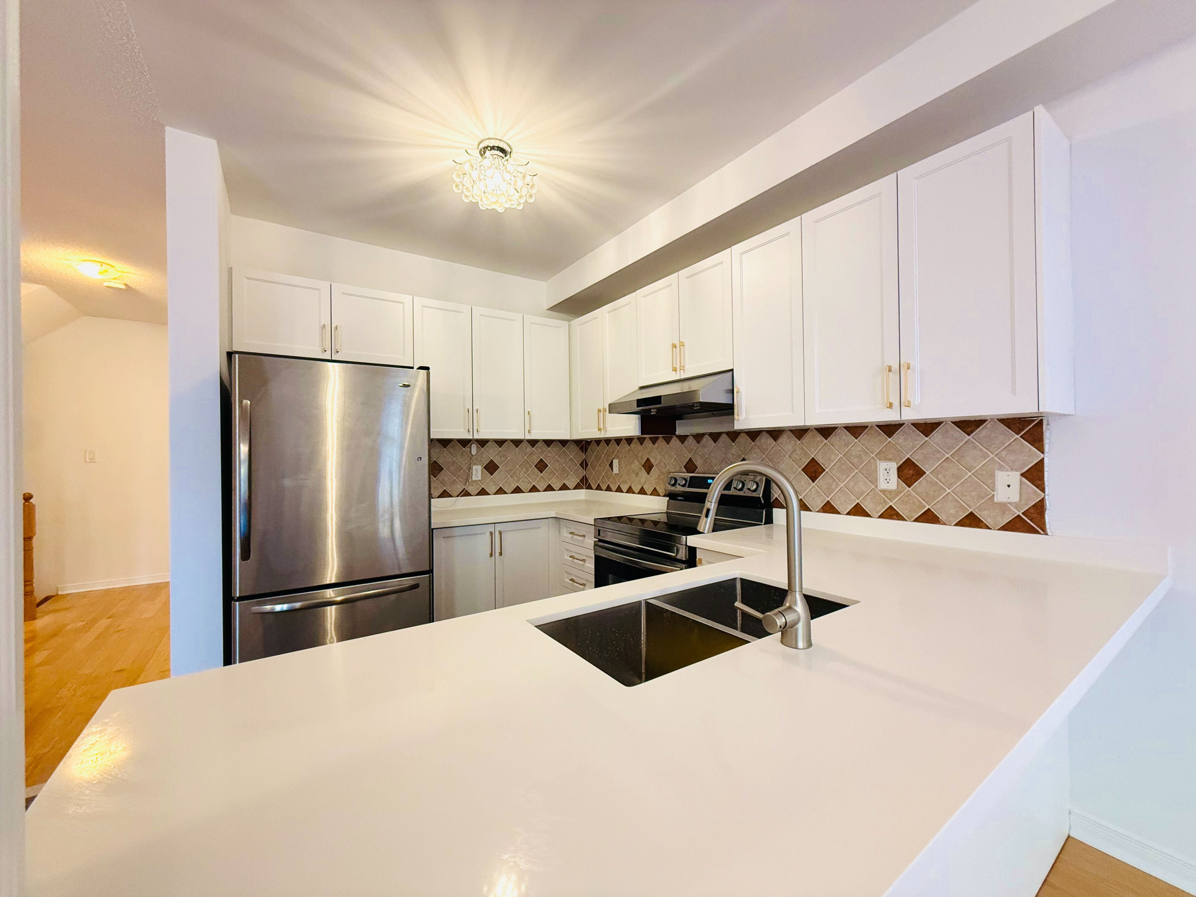 • Upgraded detached home with a long driveway accommodating four cars.