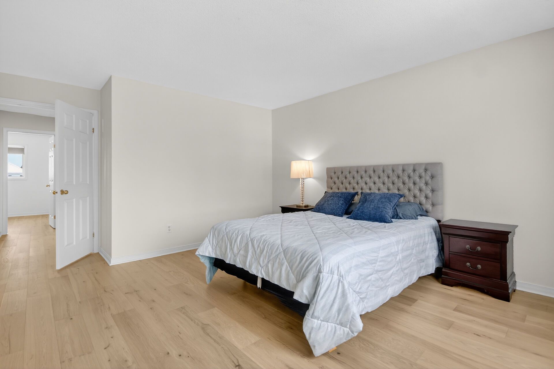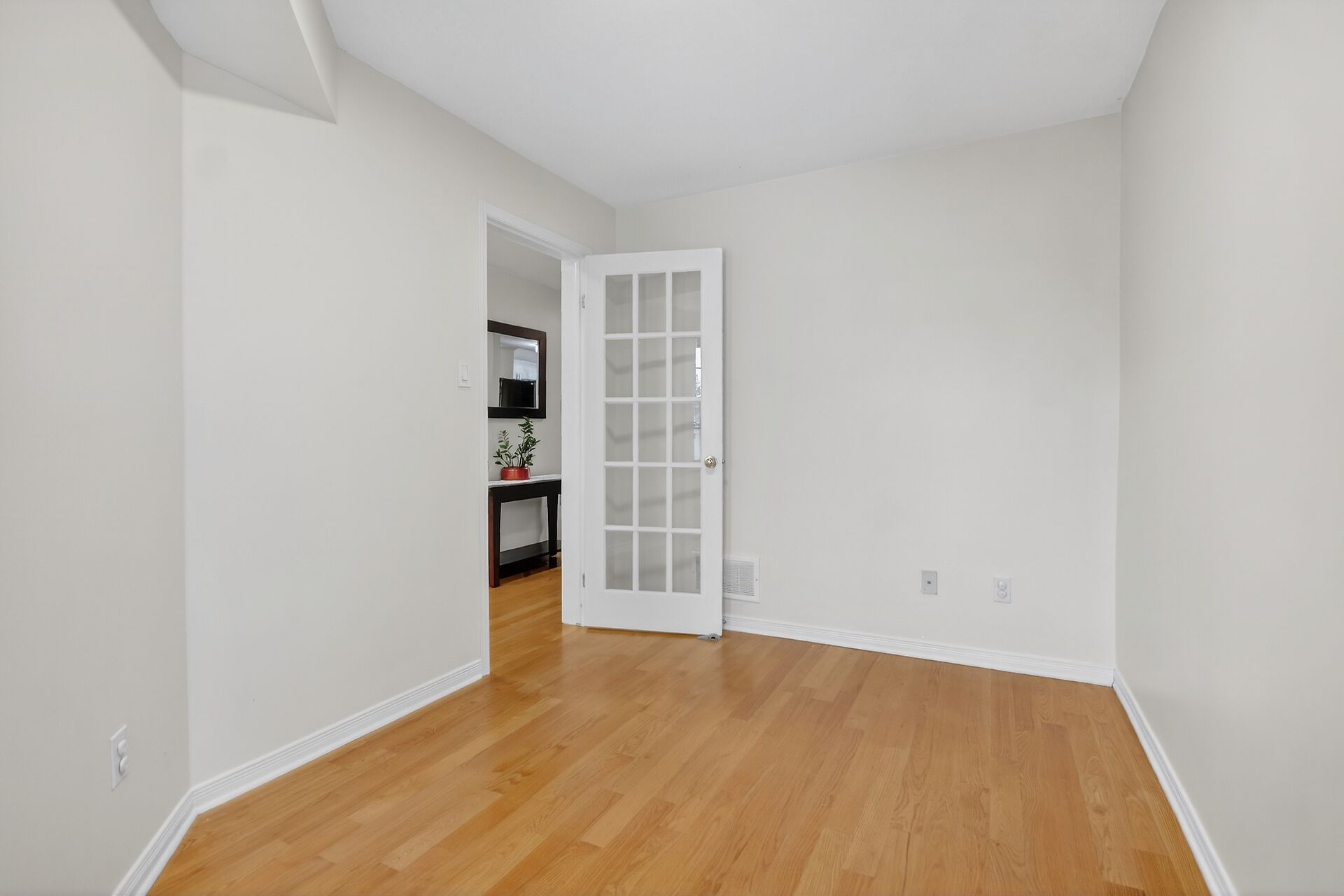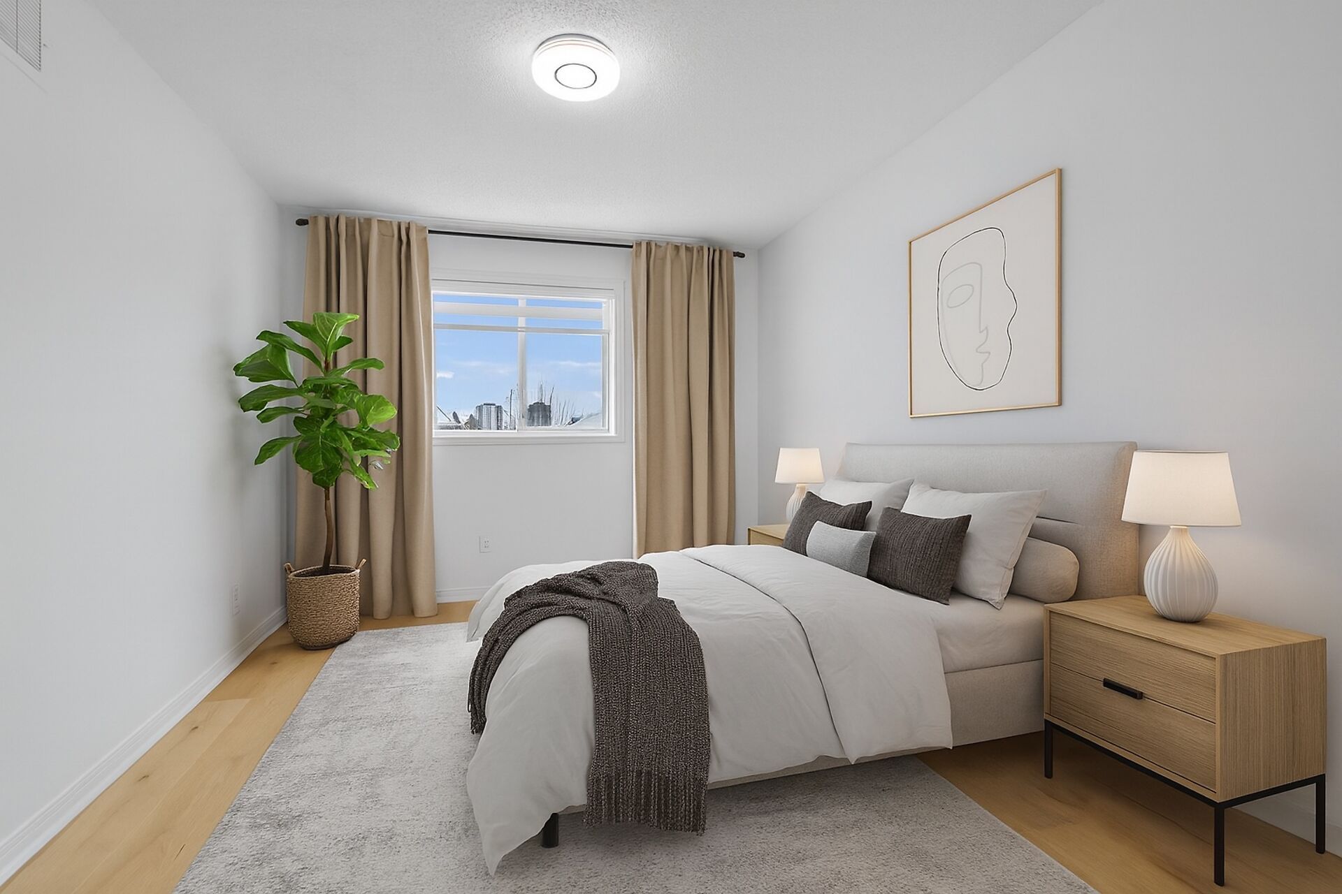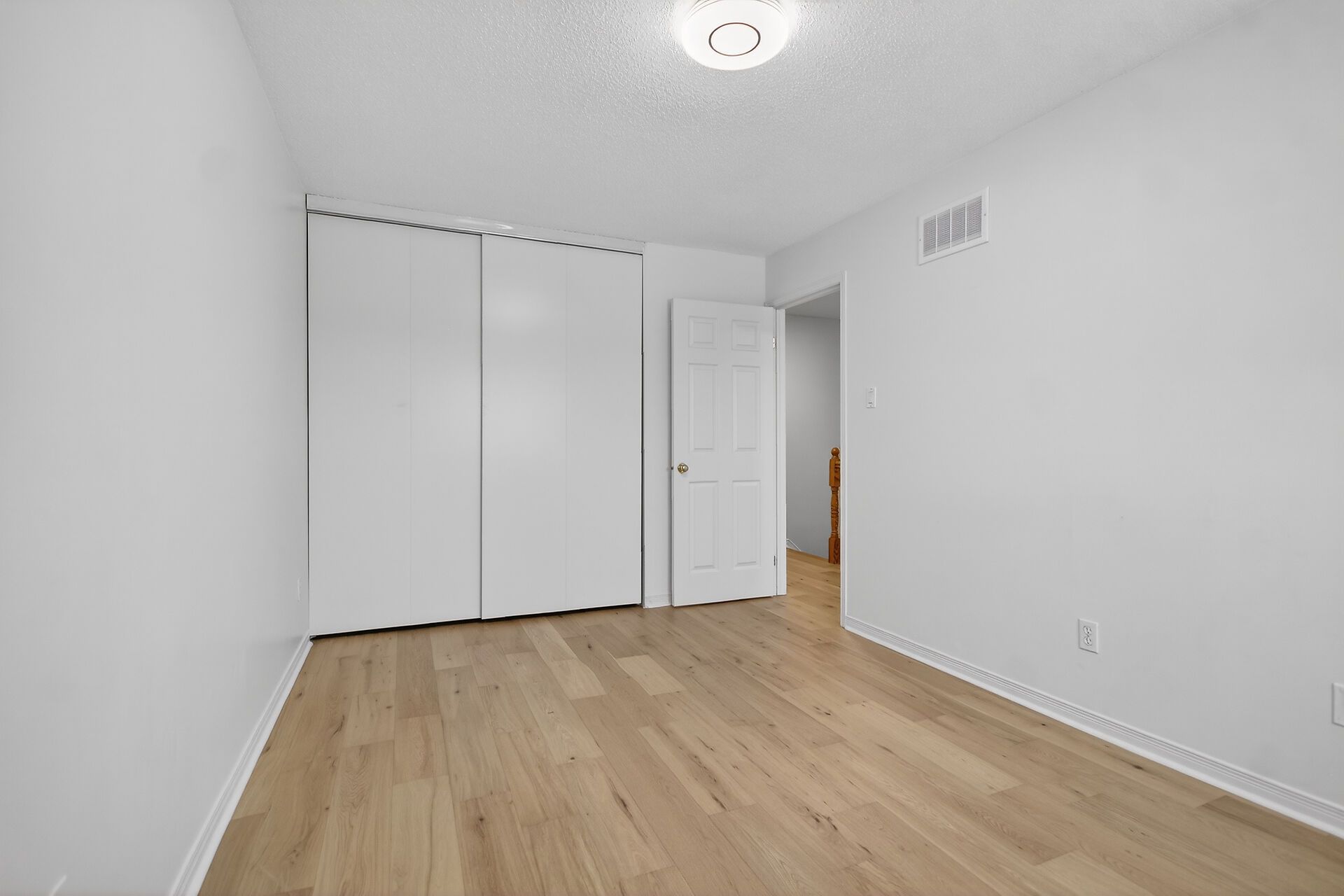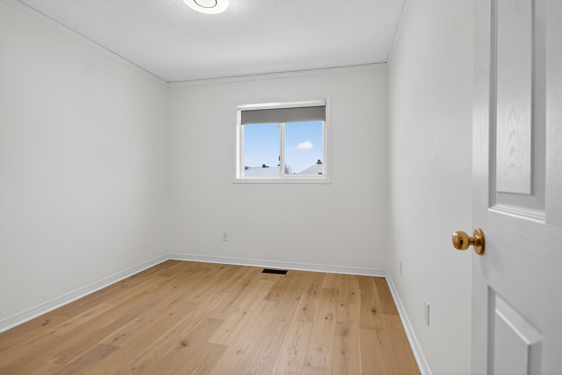 Welcome to this move-in ready end-unit townhouse that backs on the albion park's walking path in the popular hunt club area! Offering 1,665 sq/ft + a finished basement, this home is conveniently located within walking distance to multiple parks, great schools, various shopping plazas, restaurants & both the albion & the jim durrell recreational centre. Walking into the open-concept main level you find a large foyer that connects to the mudroom with direct access to the garage. This bright level with hardwood floors showcases a private front office, an updated powder room, a dining room, a living room with cozy gas fireplace & a refreshed kitchen with new countertops, stainless steel appliances, gas stove, custom backsplash & eat-in area. The 2nd level has new hardwood floors and hosts 2 big secondary bedrooms, an updated main bathroom & a spacious primary bedroom with walk-in closet and private ensuite with soaker tub & stand-up shower. The lower level features a sizable family room with big windows, walk-in closet & new modern laminate floors. The large storage room has plenty of free area to expand & create more living space... Perfect for a future home gym or hobby room. This home is located on a quiet & low traffic street and backs on the walking path connected to albion park. The widened front driveway allows room to park 4 cars and the fully fenced backyard is zeroscaped with patio stones with a handy shed for extra storage. Great features and updates include: smart thermostat, custom privacy blinds, furnace & a/c (2022), freshly painted (2025), stair carpet (2025), 2nd level hardwood (2025), basement laminate flooring (2025), kitchen countertops (2025).