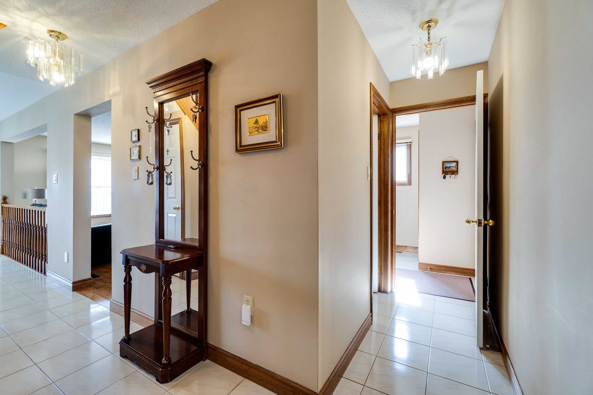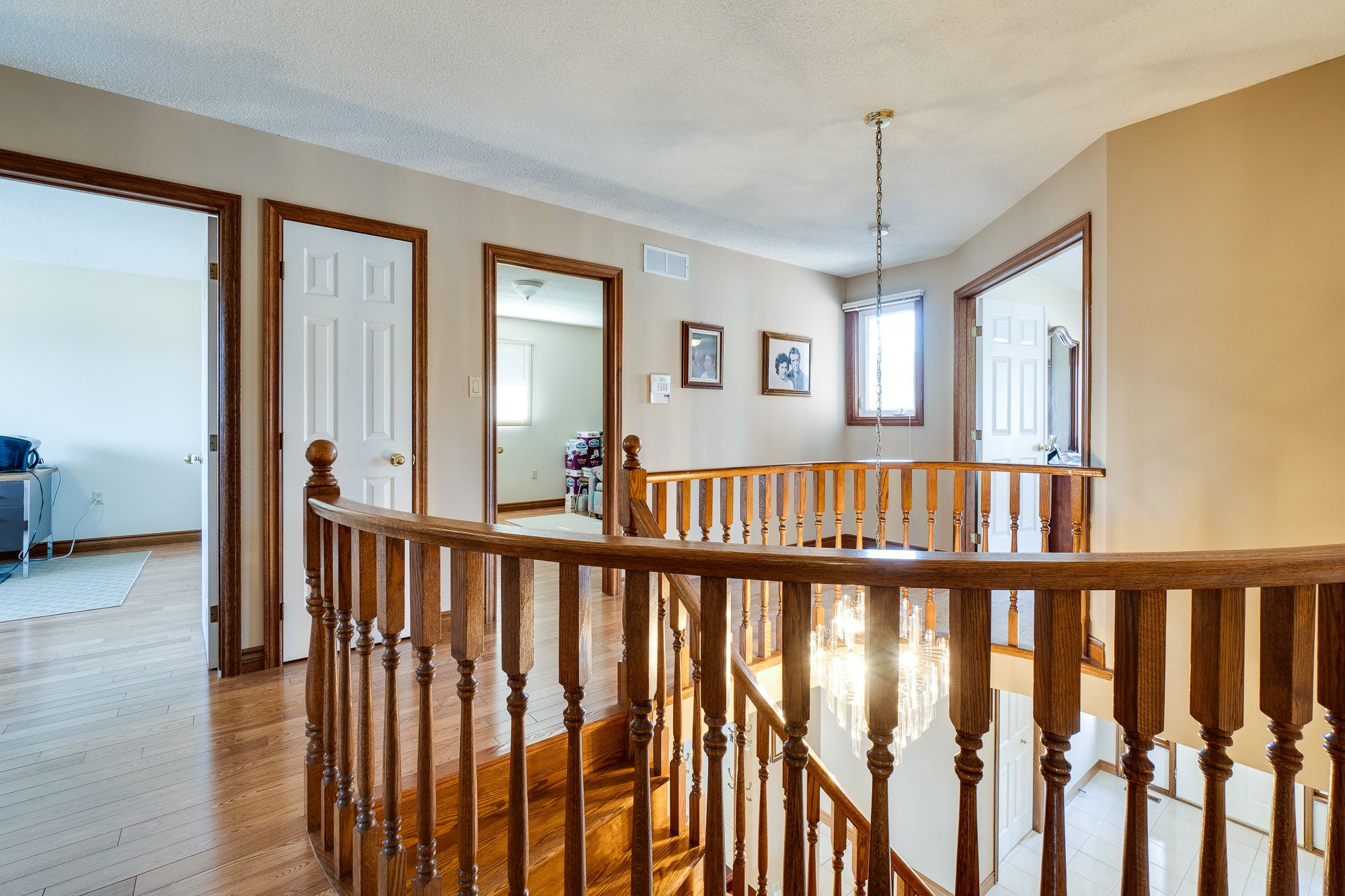 Timeless and distinguised in a highly sought-after east hamilton neighbourhood! This meticulously maintained 4-bedroom 2. 5-bathroom corner residence with 2600 square feet of living space is being offered for the first time. Nestled within an enclave of executive detached homes, this one-owner property showcases classic charm, rich wood accents, and a warm, inviting atmosphere - ideal for family living. Designed for both formal entertaining and everyday comfort, the main level offers a bright living and dining room, a spacious eat-in kitchen, and an inviting family room with a brick-surround fireplace. A convenient main-floor laundry/mudroom and 2-piece powder room add to the home's functionality. A striking curved staircase makes a grant first impression, leading to the upper level where hardwood flooring continues throughout four spacious bedrooms. The primary suite features a walk-in closet and private ensuite, while the additional bedrooms share a well-appointed main bathroom. The lower level provides endless possibilities for customization along with ample storage space. Enjoy exceptional curb appeal with inside access to a convenient attached double car garage. Ideally located just minutes from eastgate square, queenston/centennial amenities, st. Joseph's hospital, and offering quick access to the red hill parkway and qew. A rare opportunity to own a cherished home in a prime location-perfect for growing families seeking space, comfort and convenience.