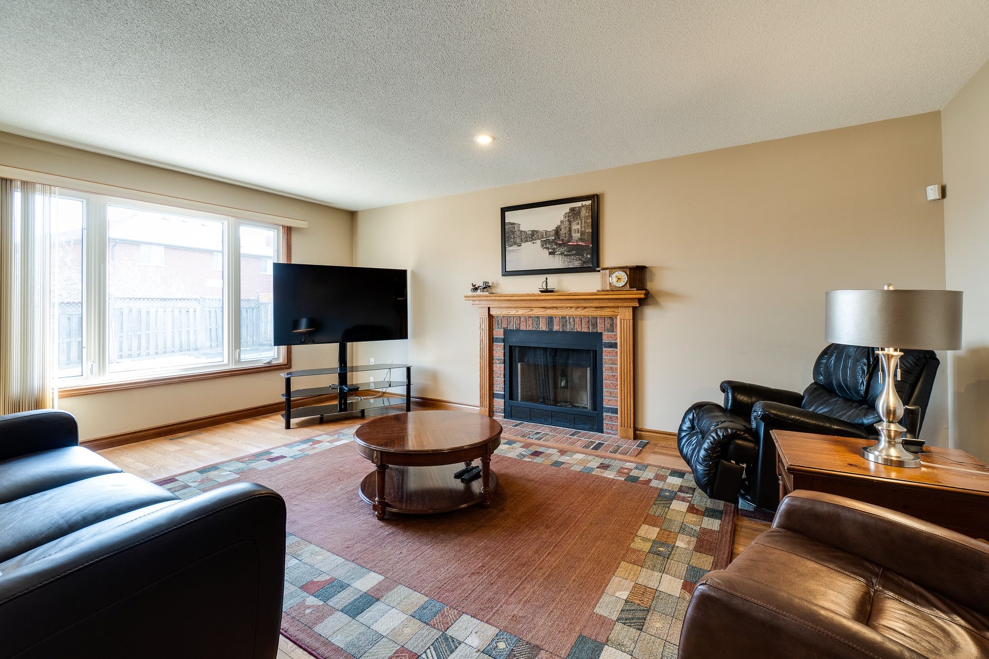 • Inviting family room featuring a brick-surround fireplace for cozy gatherings.