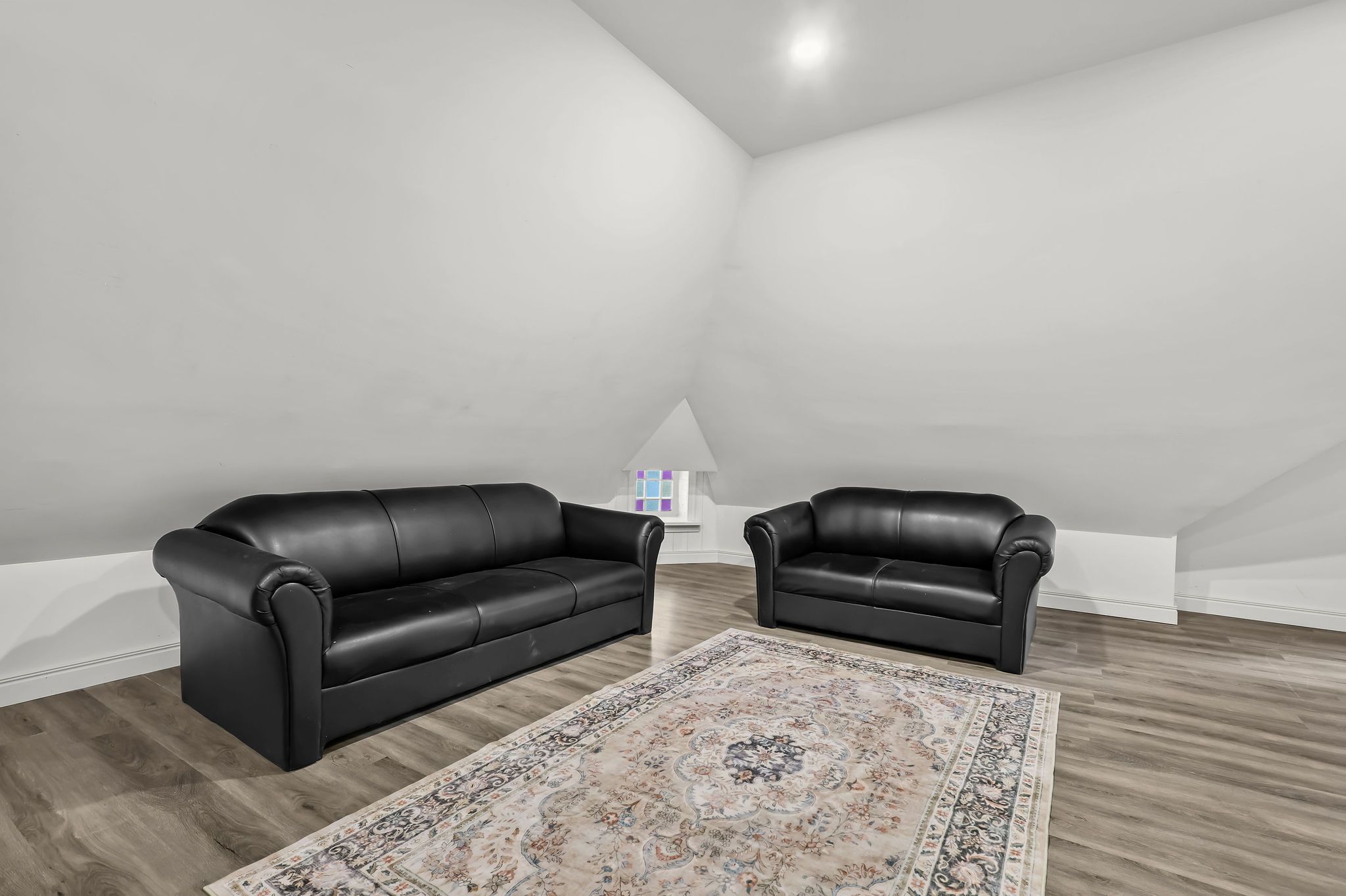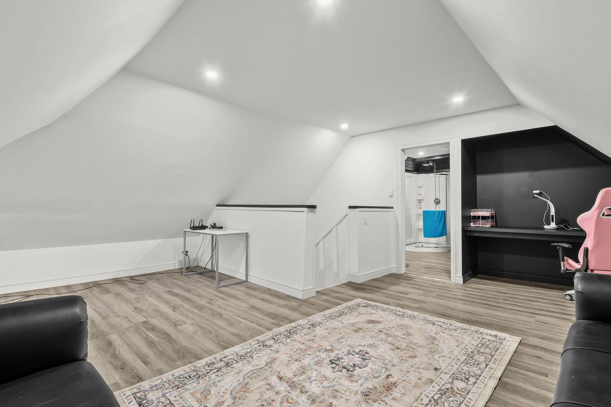 • Unique upper loft retreat, perfect for a bedroom or creative space.