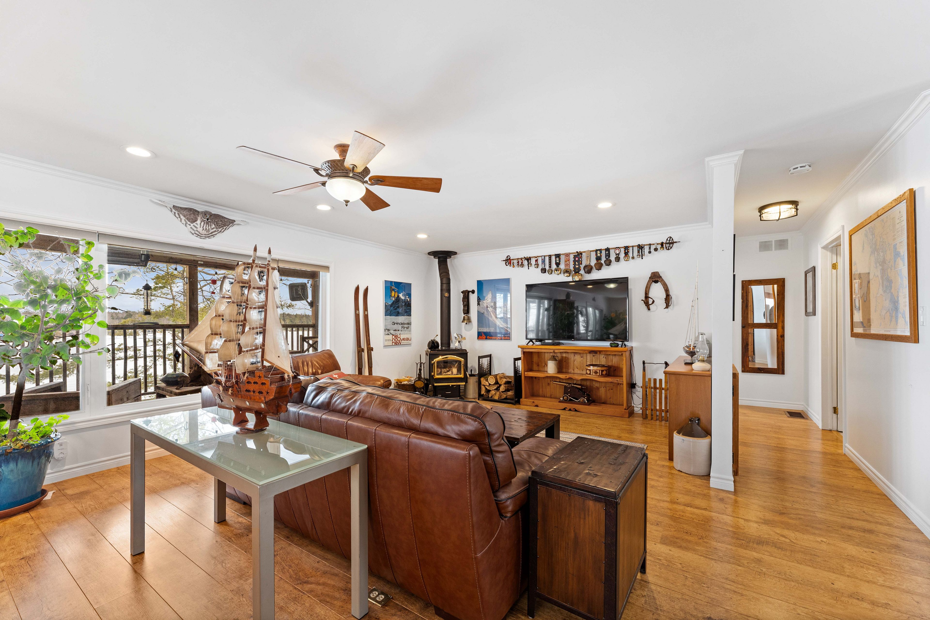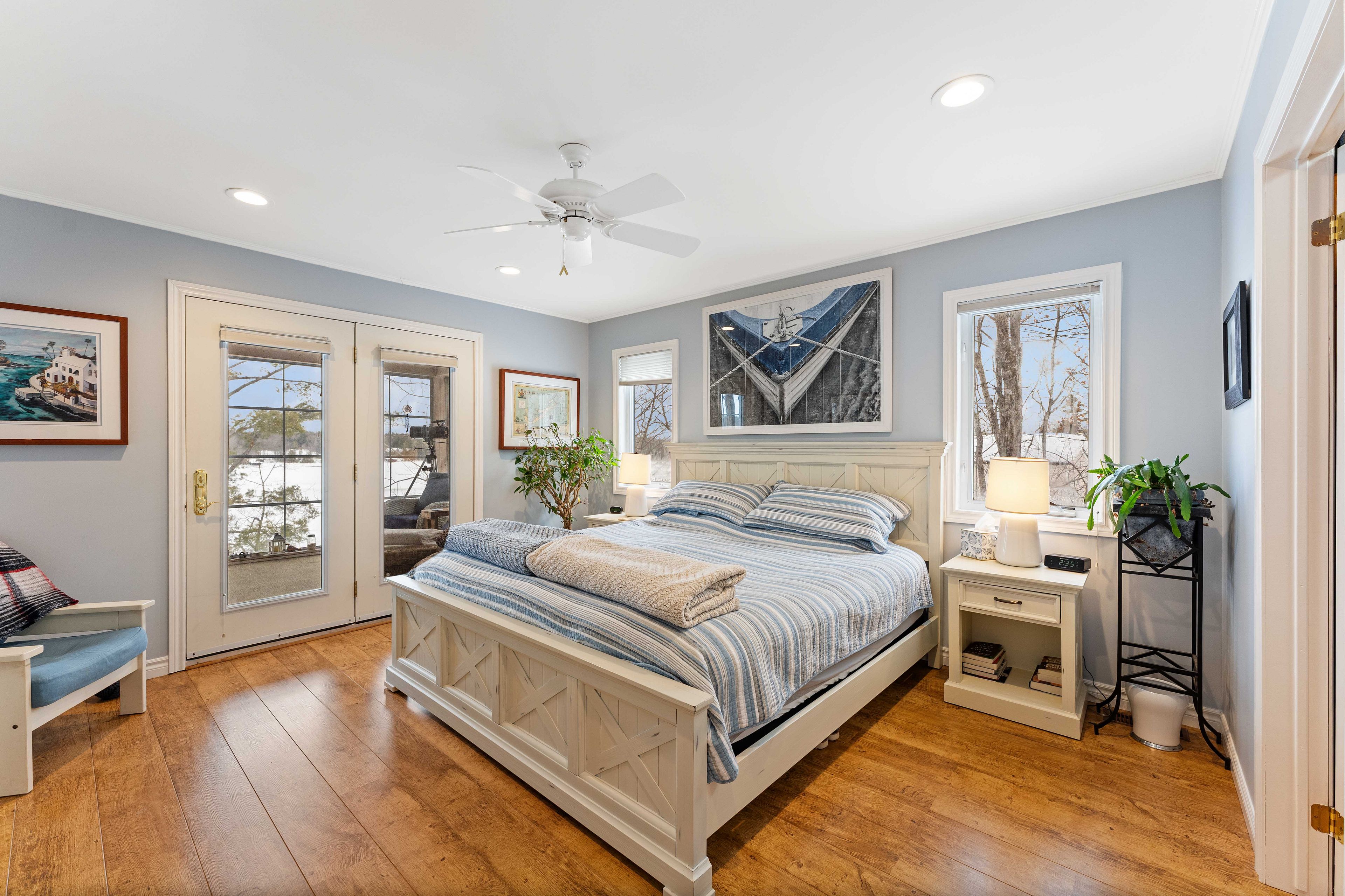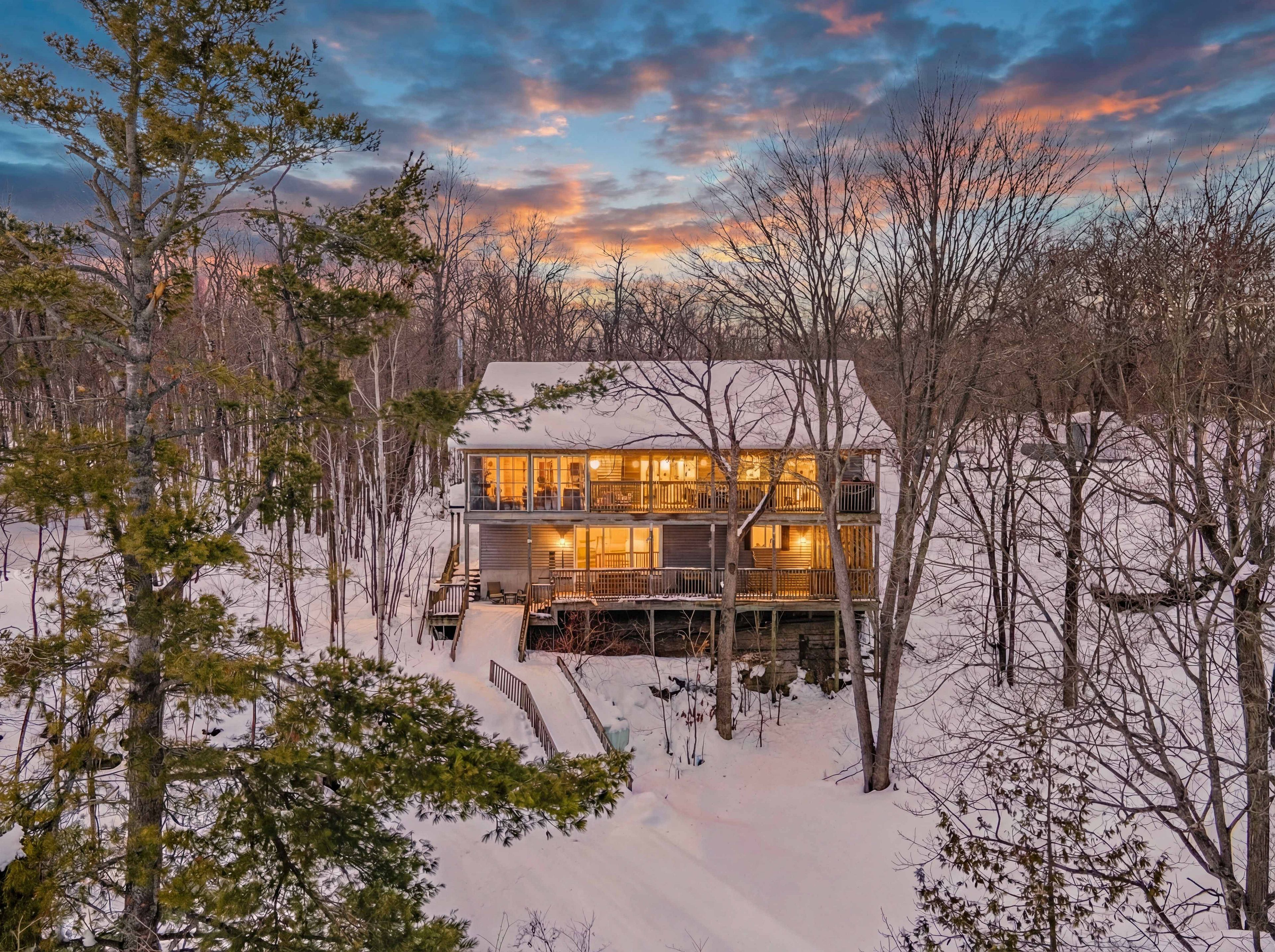 Welcome to muskoka. Located on white's bay of gloucester pool, at the gateway to muskoka and georgian bay, this exceptional 0. 6-acre waterfront property offers privacy, natural beauty, and comfortable year-round living... All just 1. 5 hours from toronto. Set between crown land and the shoreline, the setting provides a rare sense of seclusion and direct connection to nature. The modern bungalow offers bright, open-concept living with oversized windows that frame peaceful water views. The main level features a comfortable living room and a kitchen that is designed for gathering, with a large sit-at island and seamless flow to the living and dining areas and the 52ft long covered deck. There is a spacious primary suite with a walkout to the 3-season room deck and a walk-through closet with oversize ensuite. The main floor also offers a second bedroom and bathroom as well as a large laundry room. The fully finished walkout lower level extends the living space with a welcoming family room featuring a cozy gas fireplace and direct access to the waterfront, along with a third bedroom, another bathroom, workshop and generous storage. Outdoors, winding paths lead through the enchanted forest that has been thoughtfully maintained with beautiful gardens, mature trees, and natural muskoka granite, creating a peaceful, park-like setting. A detached double garage with workshop provides excellent space for hobbies, storage, or recreational equipment. Gloucester pool is part of the trent-severn waterway, offering endless boating opportunities and easy access to georgian bay just one lock away. This is a rare opportunity to own a private waterfront property in one of muskoka's most accessible and scenic locations, ready to be enjoyed in every season.