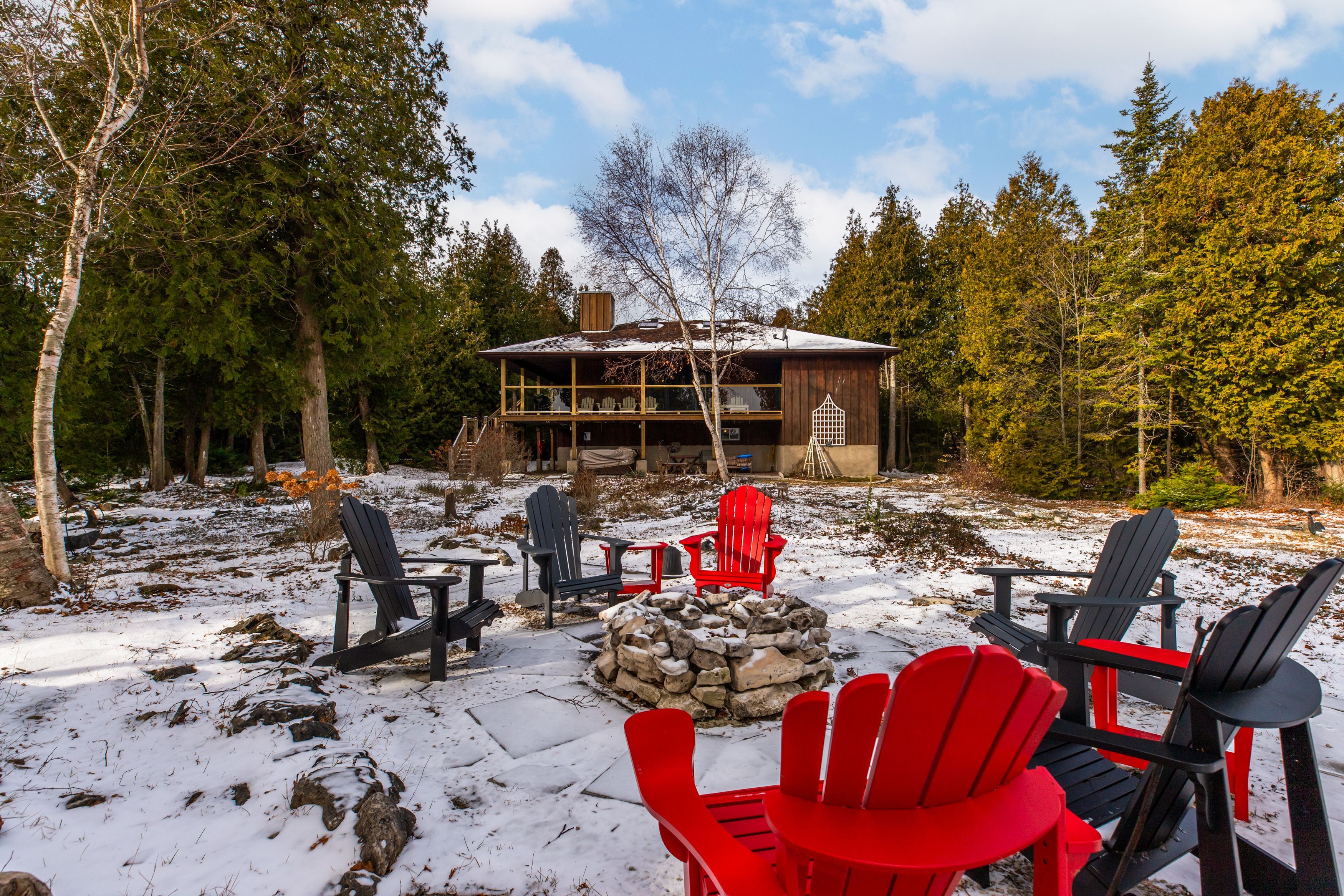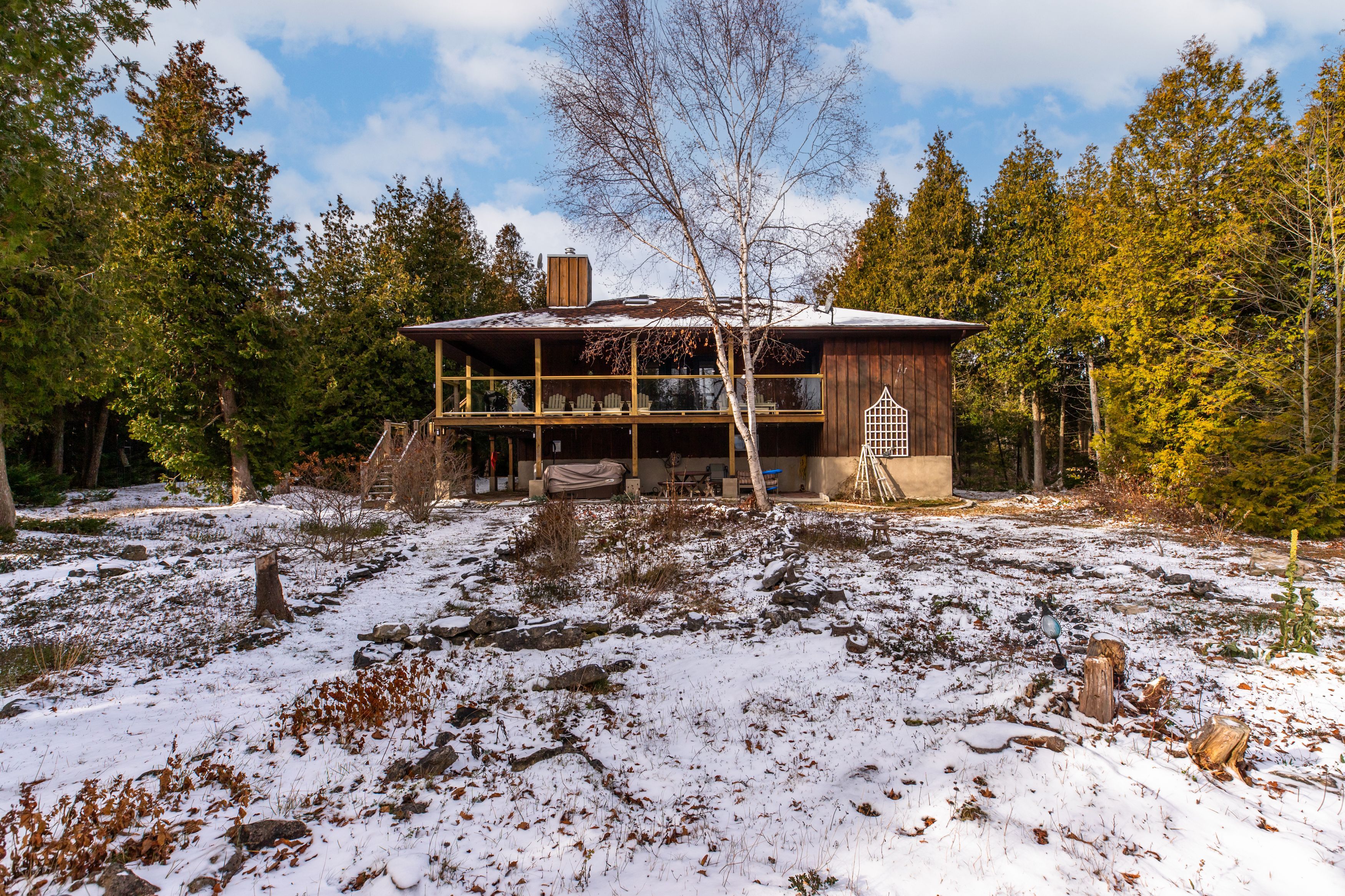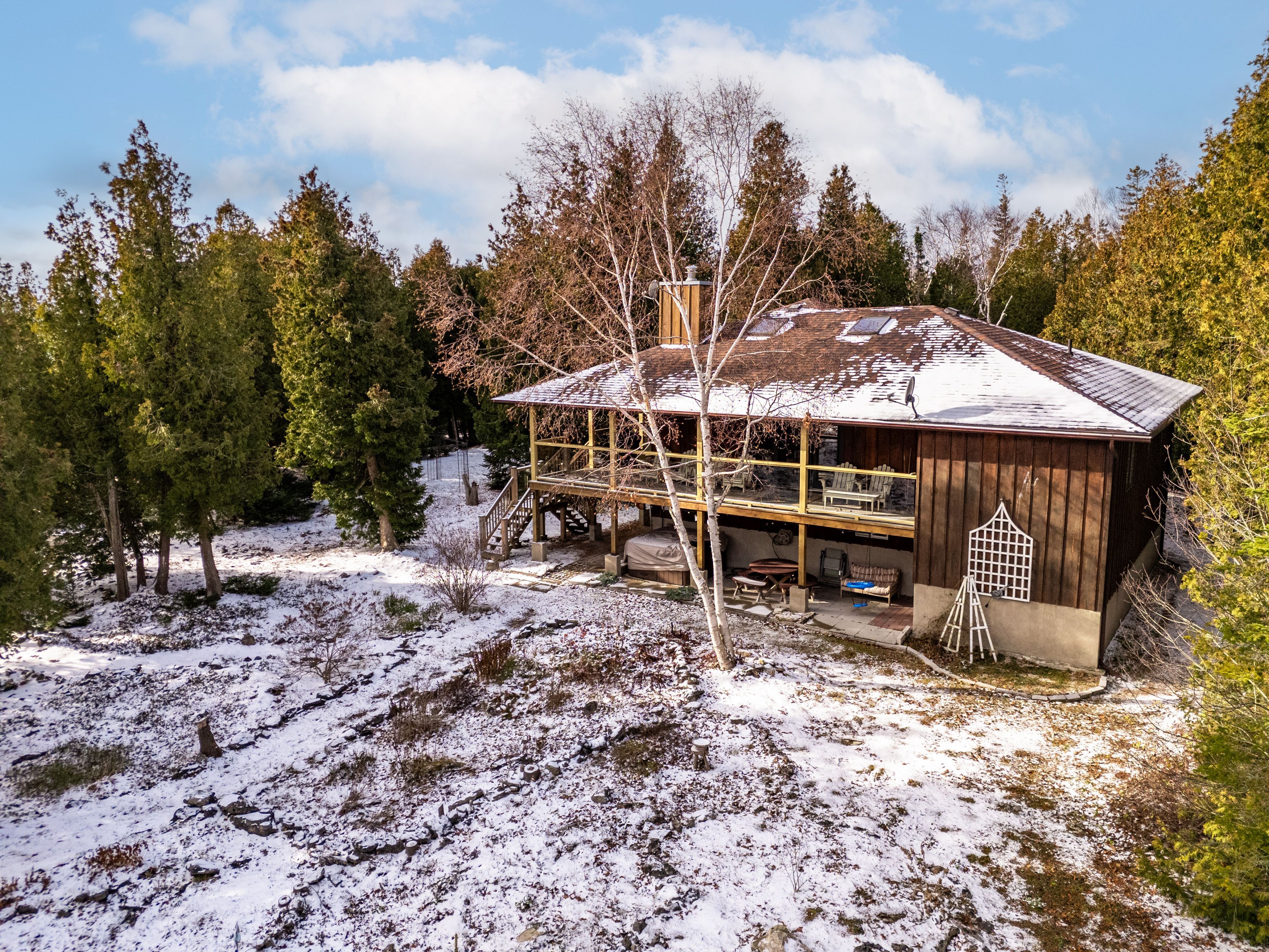 This exceptional lake huron point property offering sweeping, uninterrupted water views and rare privacy, with shoreline wrapping three sides. Set at the end of a quiet road with 390 feet of shoreline, this retreat features a naturally sheltered harbour ideal for swimming, paddling, and launching watercraft-perfect for families or investment purposes with great rental potential. The raised bungalow offers two levels of living, with the main floor showcasing a bright, open-concept kitchen, dining, and living area oriented toward stunning lake vistas. A propane fireplace adds warmth, while multiple walkouts lead to a covered wraparound deck with water views and outdoor access from two bedrooms, the dining room, and the living room--creating exceptional indoor-outdoor flow for relaxing, and entertaining. Three bedrooms and two full baths complete the main level. The full walkout basement is unfinished and ready for customization, offering potential additional living space, a guest suite, or income potential. Appliances, most furnishings, and a hot tub are included, making this a ready-to-enjoy waterfront escape or a strong short-term rental opportunity. Centrally located between tobermory & lions head positions this retreat close to the bruce trail, national parks & many other popular attractions. 137 pine tree harbour blends peace, nature, and adventure in a truly unmatched setting.