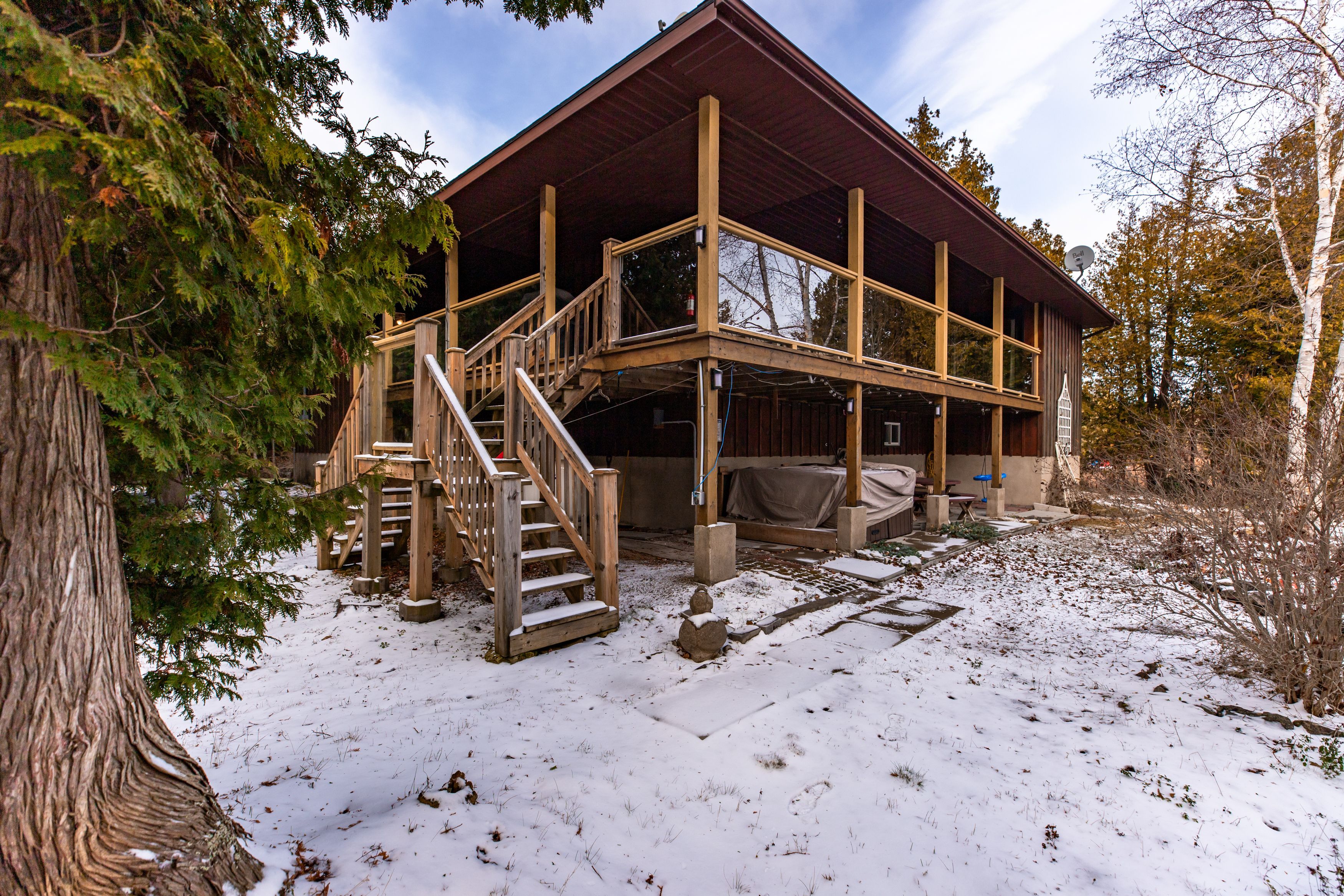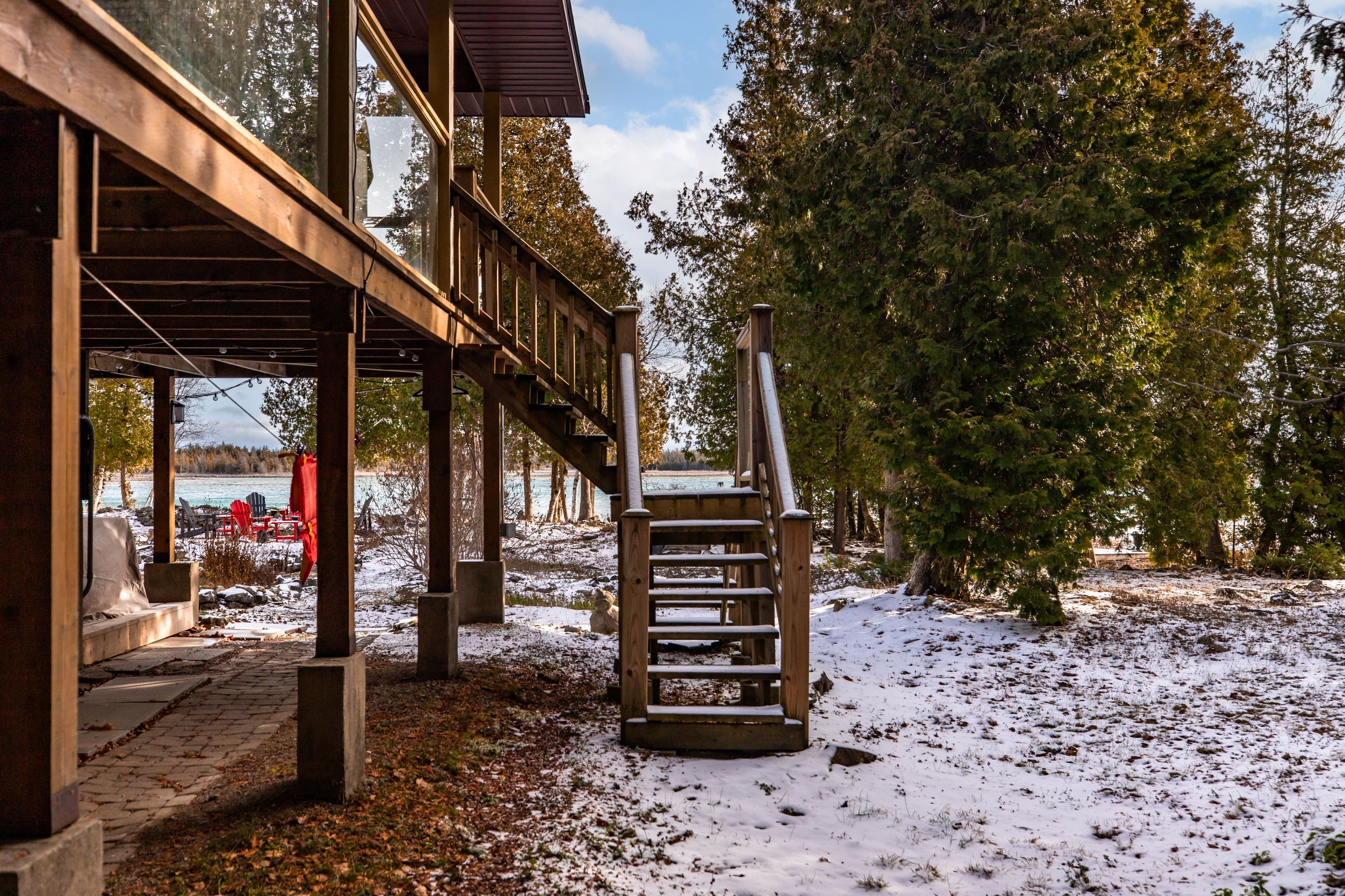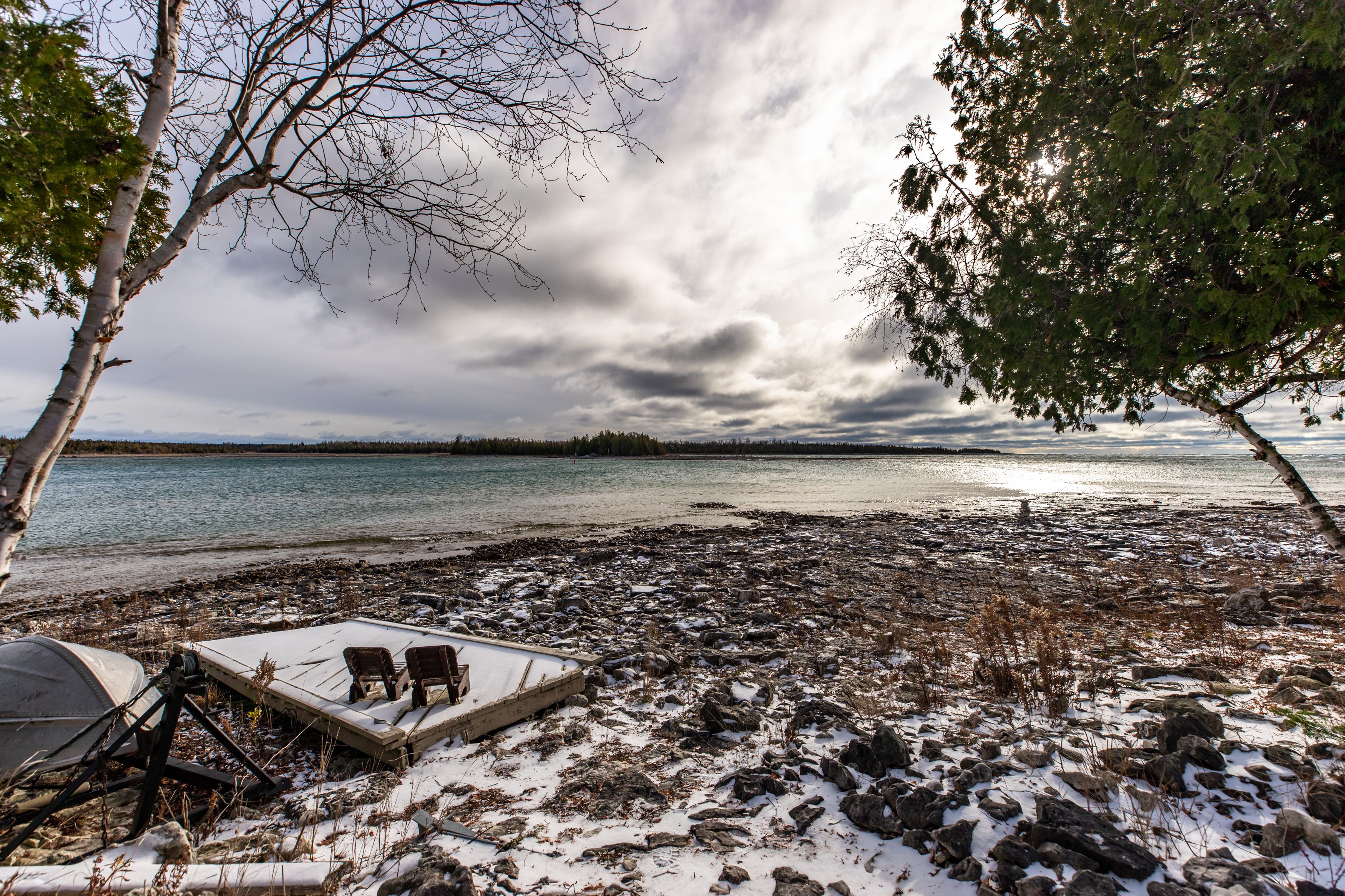 This exceptional lake huron point property offering sweeping, uninterrupted water views and rare privacy, with shoreline wrapping three sides. Set at the end of a quiet road with 390 feet of shoreline, this retreat features a naturally sheltered harbour ideal for swimming, paddling, and launching watercraft-perfect for families or investment purposes with great rental potential. The raised bungalow offers two levels of living, with the main floor showcasing a bright, open-concept kitchen, dining, and living area oriented toward stunning lake vistas. A propane fireplace adds warmth, while multiple walkouts lead to a covered wraparound deck with water views and outdoor access from two bedrooms, the dining room, and the living room--creating exceptional indoor-outdoor flow for relaxing, and entertaining. Three bedrooms and two full baths complete the main level. The full walkout basement is unfinished and ready for customization, offering potential additional living space, a guest suite, or income potential. Appliances, most furnishings, and a hot tub are included, making this a ready-to-enjoy waterfront escape or a strong short-term rental opportunity. Centrally located between tobermory & lions head positions this retreat close to the bruce trail, national parks & many other popular attractions. 137 pine tree harbour blends peace, nature, and adventure in a truly unmatched setting.