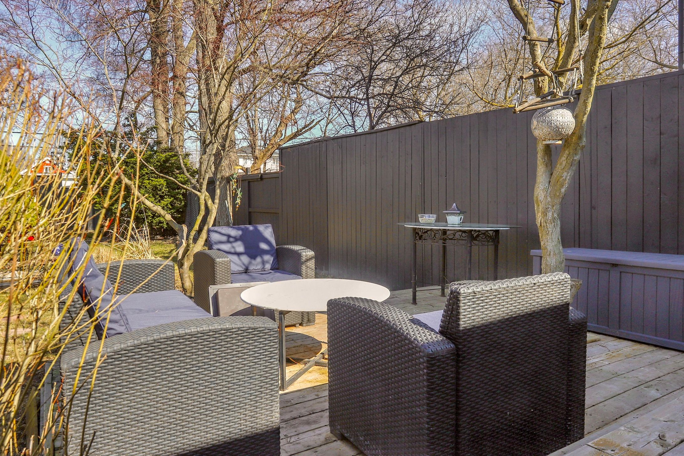 • Private backyard and charming cherry tree add to the outdoor appeal.