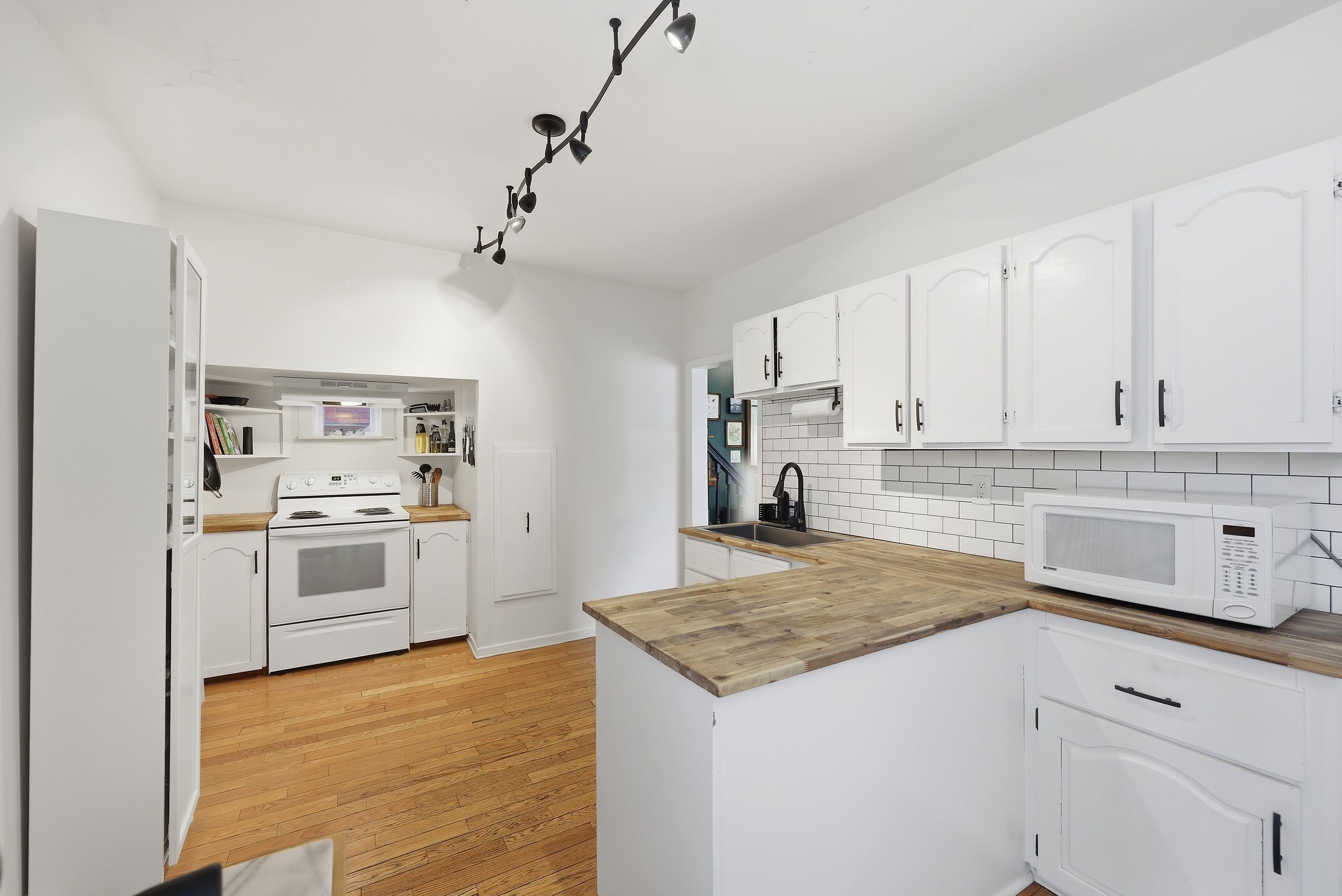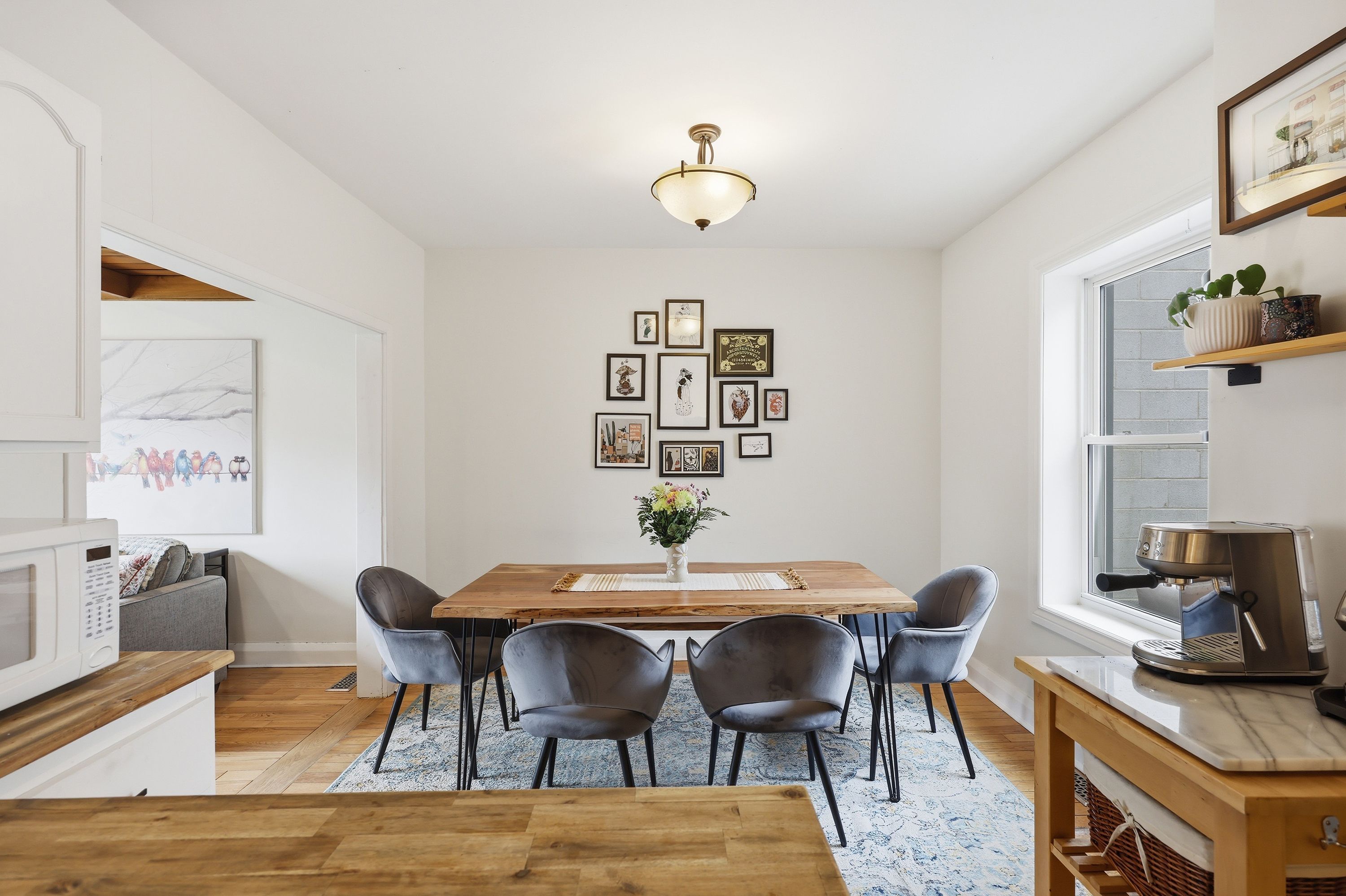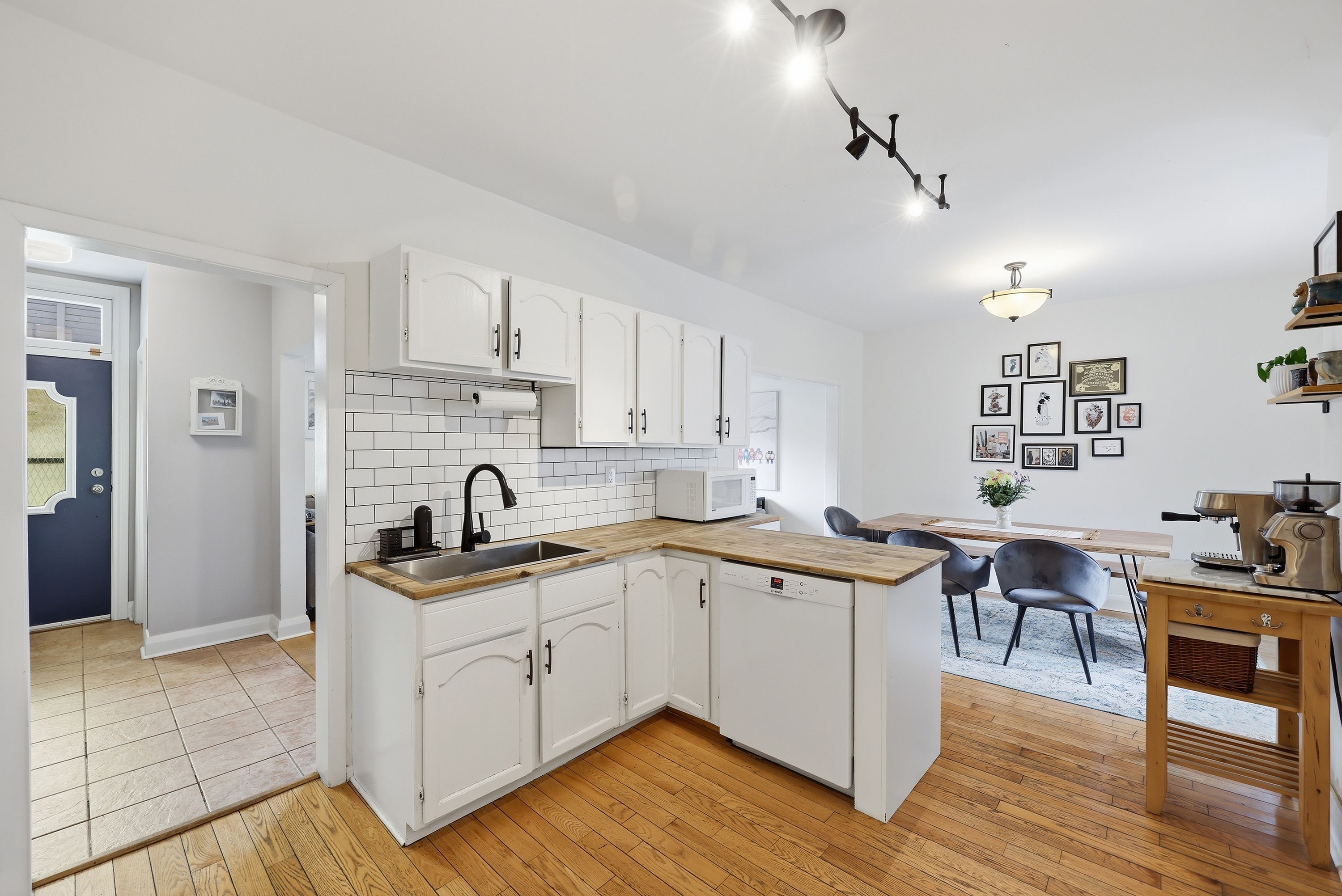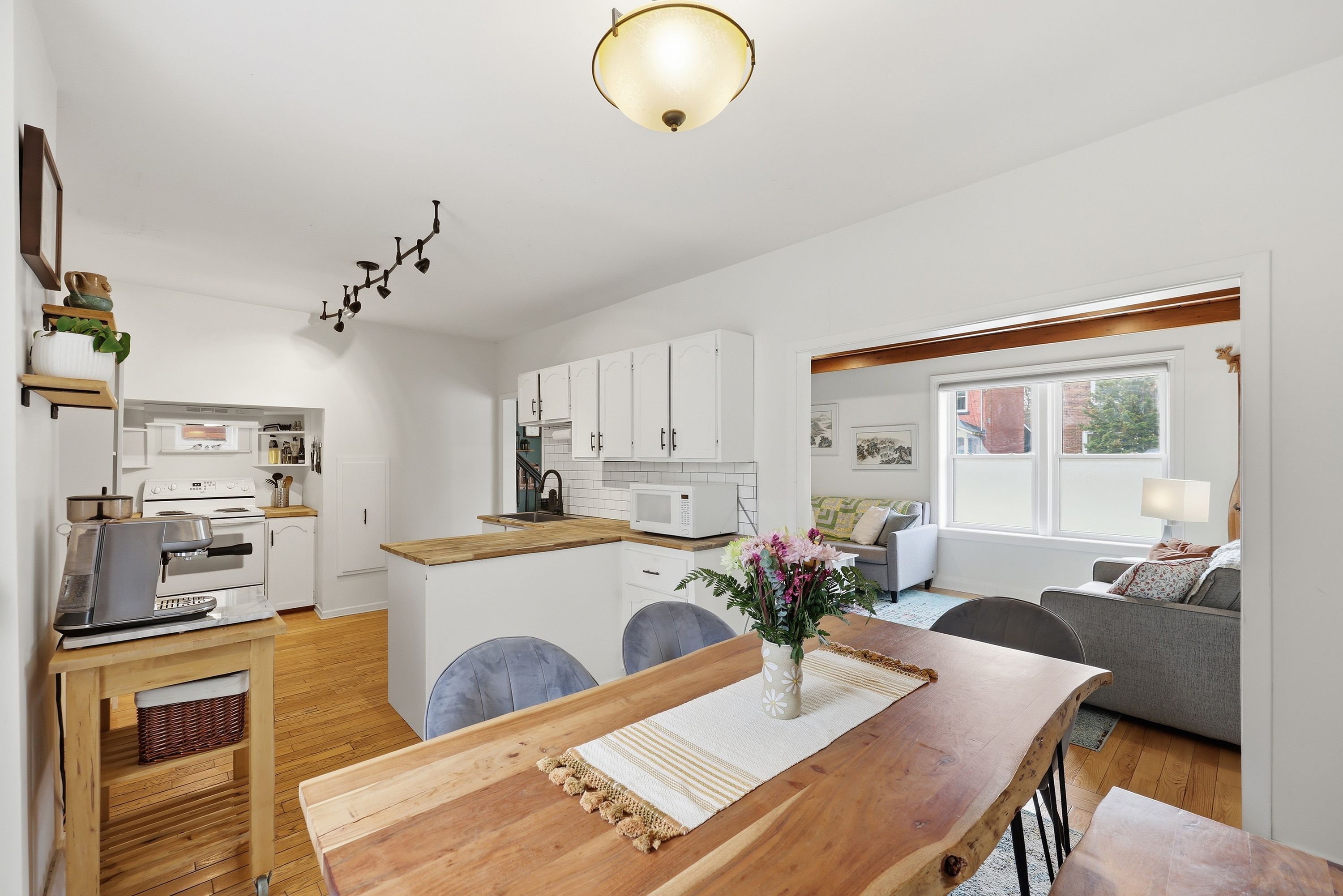 Full of character and thoughtfully updated, this all-brick semi-detached century home blends storybook charm with modern comfort. Step inside to bright, inviting spaces featuring oak hardwood floors and a functional layout that flows effortlessly throughout. The heart of the home is the open kitchen and dining area, leading into a warm and welcoming living room highlighted by a stunning wood ceiling that adds both character and depth. Upstairs, you'll find three well-sized bedrooms and an updated bathroom, offering flexible space for families, guests, or a home office. At the rear, a practical mudroom with main floor laundry provides direct access to the backyard-making everyday living easy and convenient. Outside, the large, recently landscaped yard is perfect for entertaining, gardening, or simply unwinding on the spacious deck ideal for summer evenings. The property also features a private rear parking space, a rare and valuable bonus in this central location. Backing onto regiopolis-notre dame catholic high school with no rear neighbours, this home offers a unique combination of lifestyle, outdoor space, and convenience close to schools, parks, and amenities. A move-in ready home with character, functionality, and room to enjoy both inside and out.