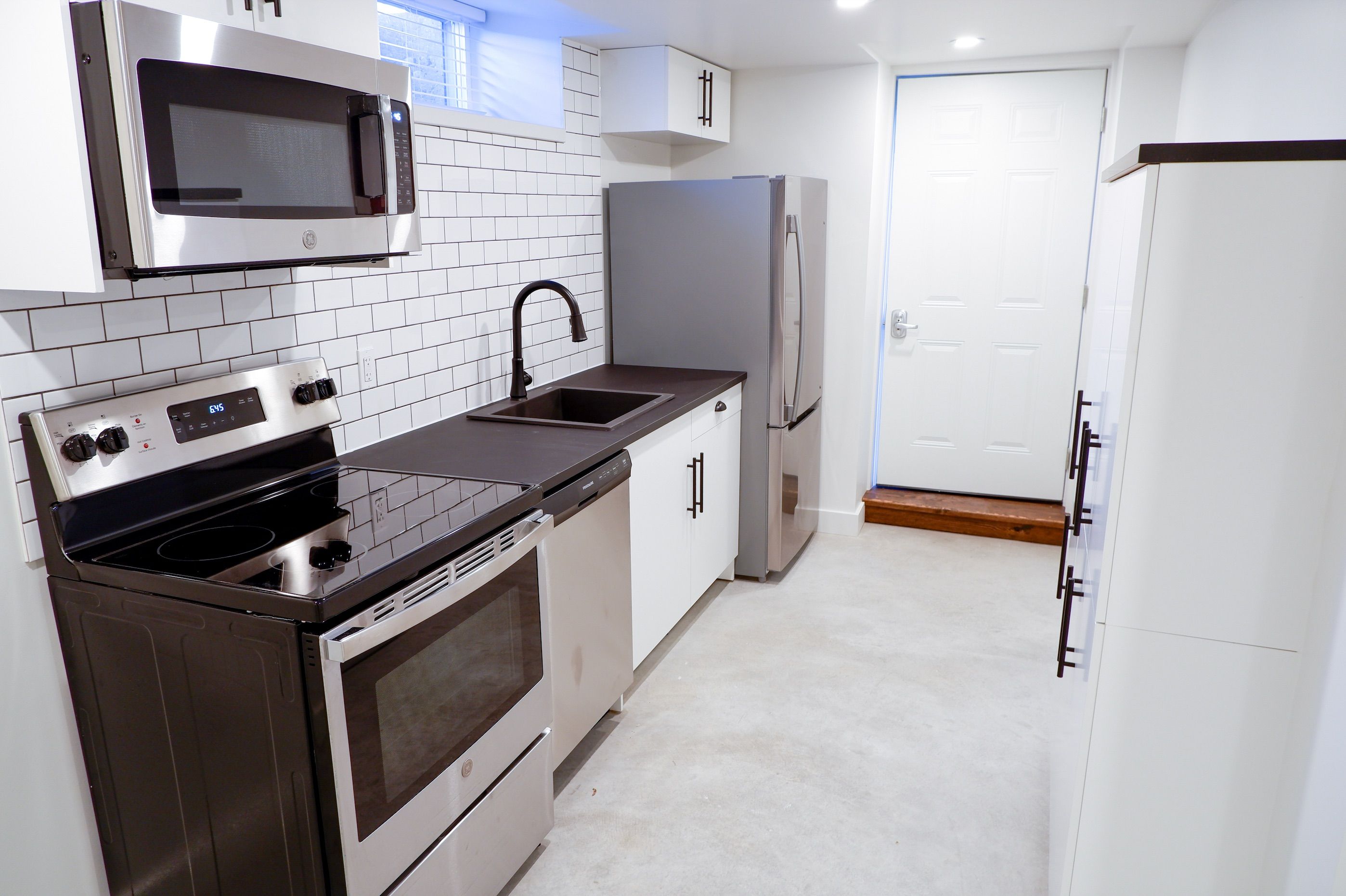 Building fully renovated in 2021. 2-bedroom basement suite. Fridge, stove, dishwasher, microwave/range hood. In-floor heating, ac unit, security cameras, coin laundry on site. Private parking by entrance, and guest parking., outdoor area. * reporting member of the landlord credit bureau