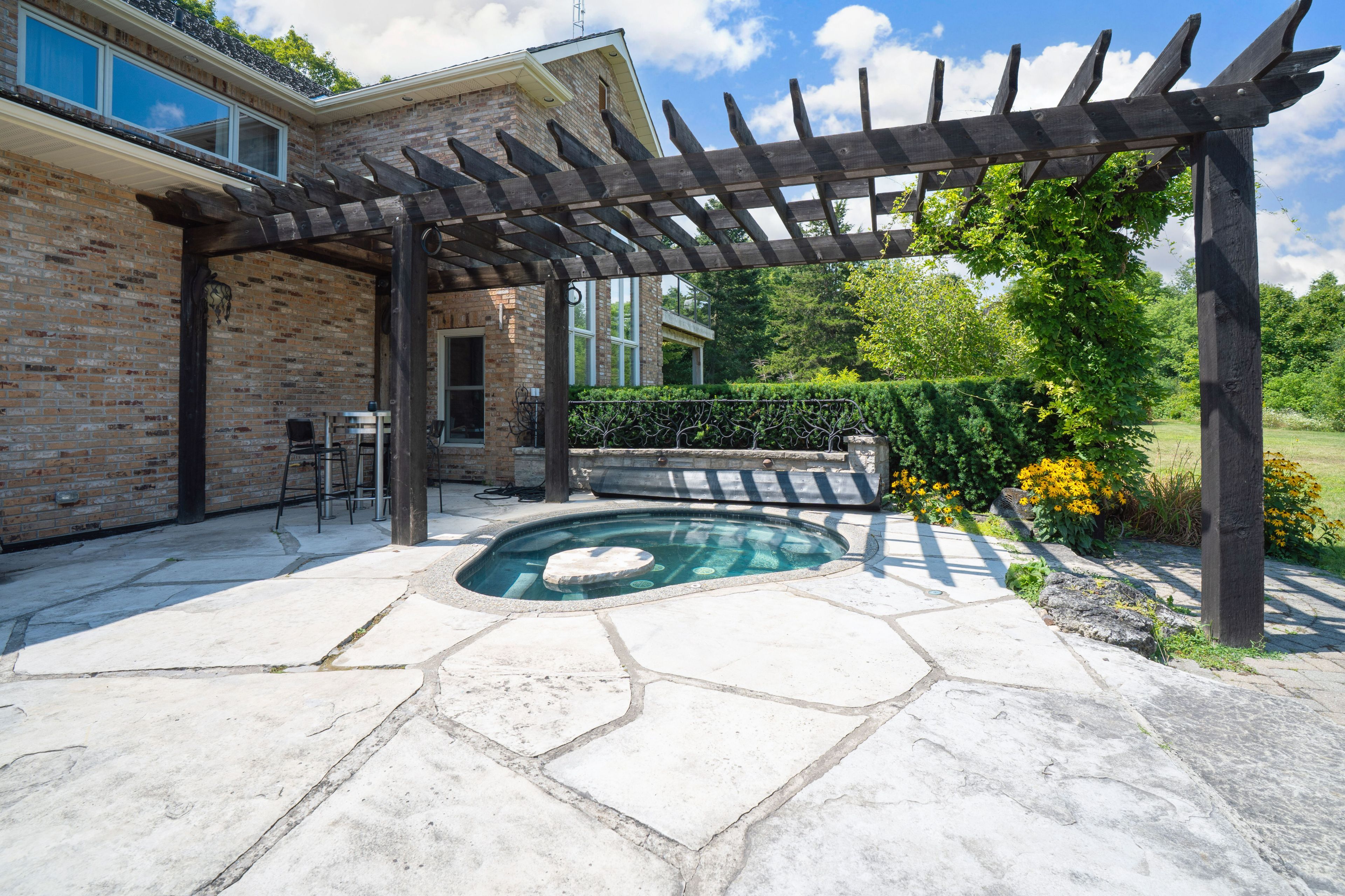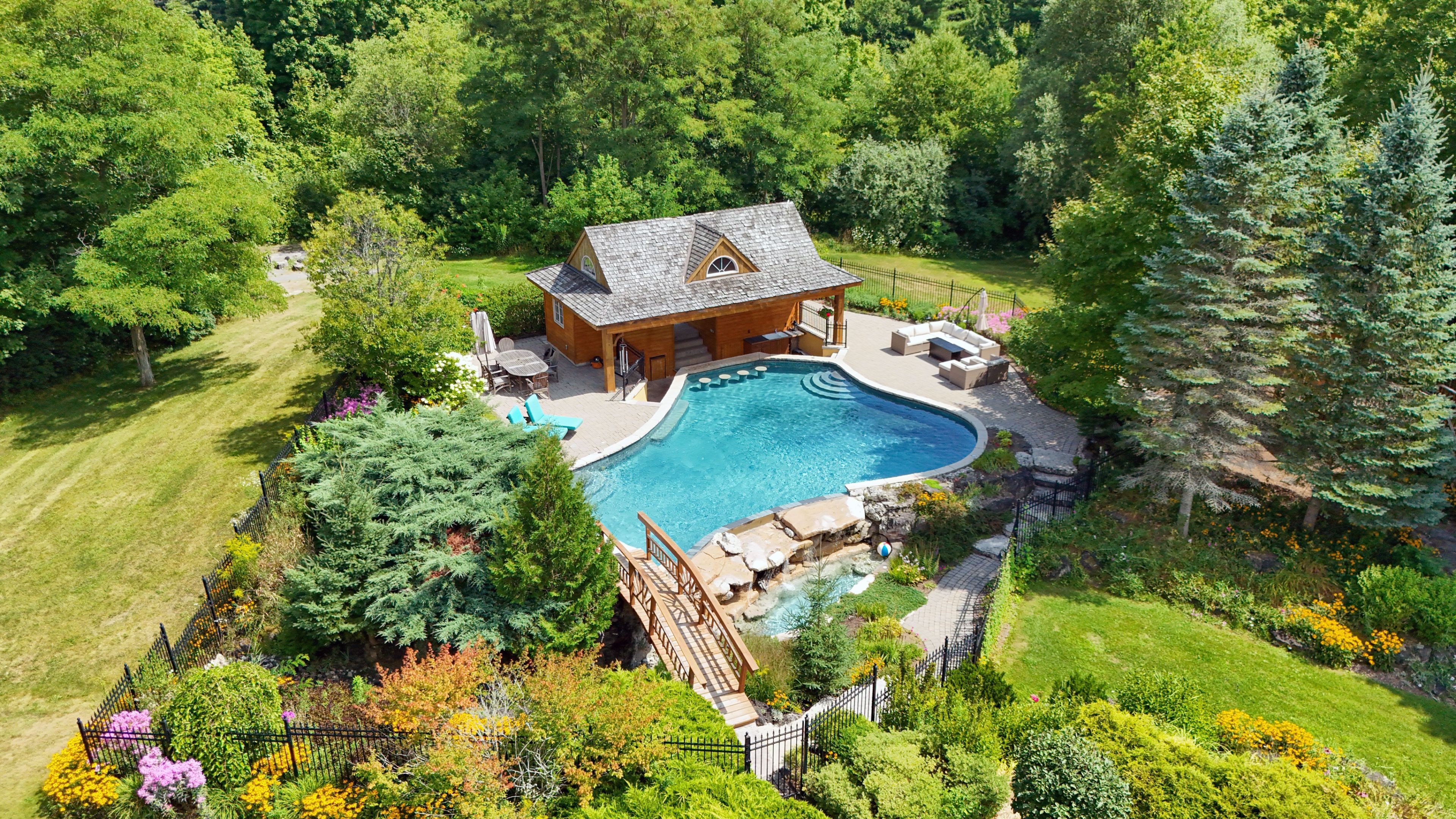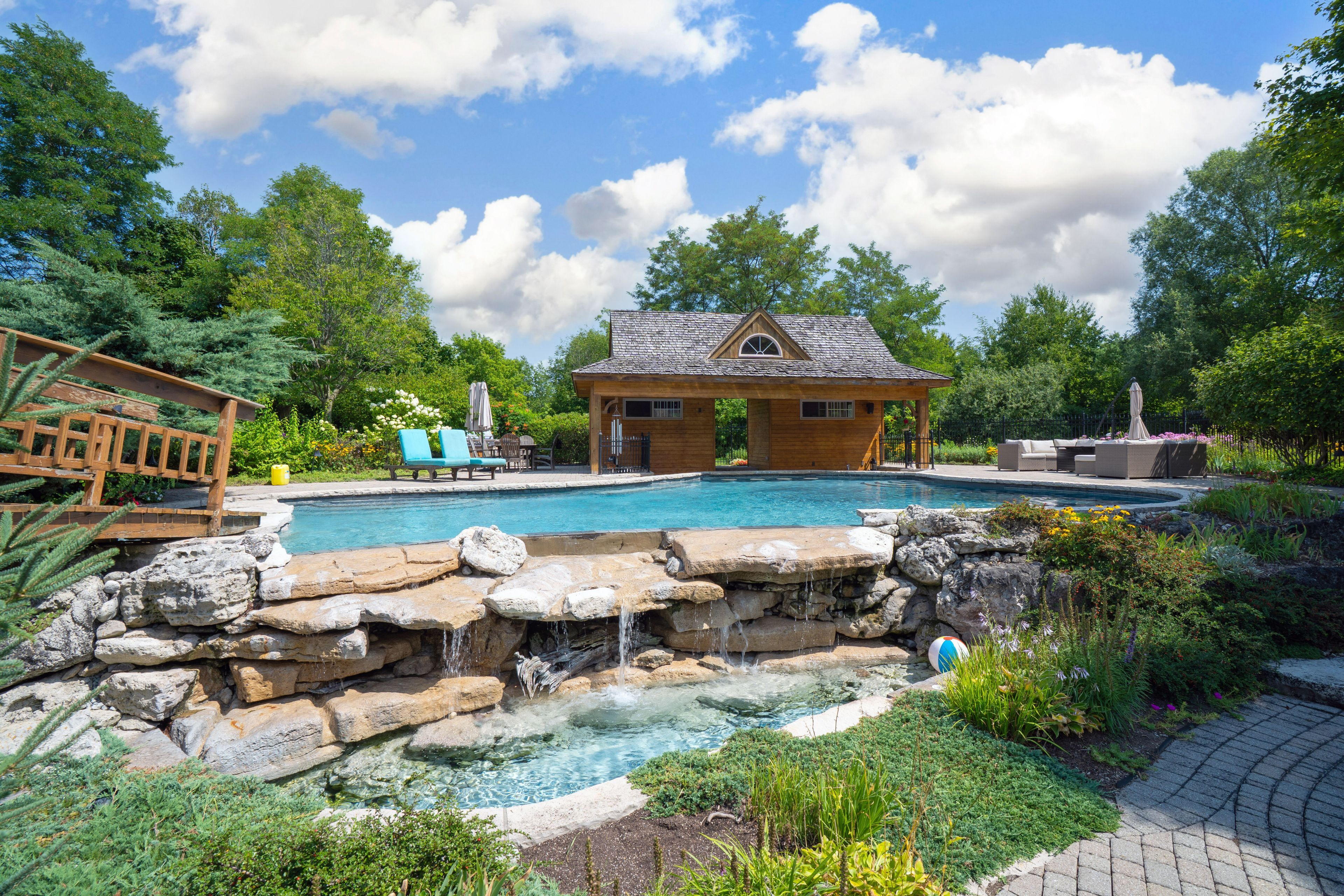 A signature estate in nassagaweya. Set at the end of a long, tree-lined drive, this remarkable custom-built 4-bedroom, 7-bathroom residence delivers over 6,100 sq. Ft. Above grade plus approx 2,000 sq. Ft. Finished walk-out lower level. The grand two-storey foyer leads to a striking great room with floor-to-ceiling stone fireplace, a light-filled conservatory, private office, and a sunken living room. The chefs kitchen showcases premium appliances, live-edge granite surfaces, an oversized island, and a sunny breakfast nook, while the formal dining room offers a two-sided stone fireplace and custom cabinetry. A billiards lounge with lava rock bar, waffle ceiling, and bespoke built-ins adds to the main floors appeal. Upstairs, the primary suite features a spa-like ensuite and a custom walk-in closet, while three additional bedrooms each have their own designer baths. A secondary staircase provides direct access to the kitchen and laundry. The lower level is fully finished with a large recreation area, games room, and 2-piece bath. Outdoors, the resort-style grounds feature a lagoon-inspired saltwater pool with waterfall, wading area, swim-up bar, and custom hot tub. A cedar pool house with 2- piece bath, sunken outdoor kitchen, and stone patio bbq space make entertaining effortless. The property also includes two fire pits, a playhouse, horseshoe pit, vast lawn areas, a detached garage with heated workshop, and parking for 50+ vehicles. All within minutes of rockwood, and an easy commute to guelph, milton, the gta, and pearson airport. A home that delivers unmatched luxury, privacy, and lifestyle.