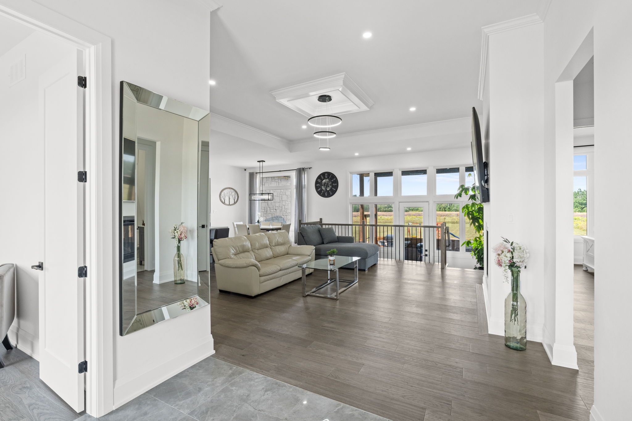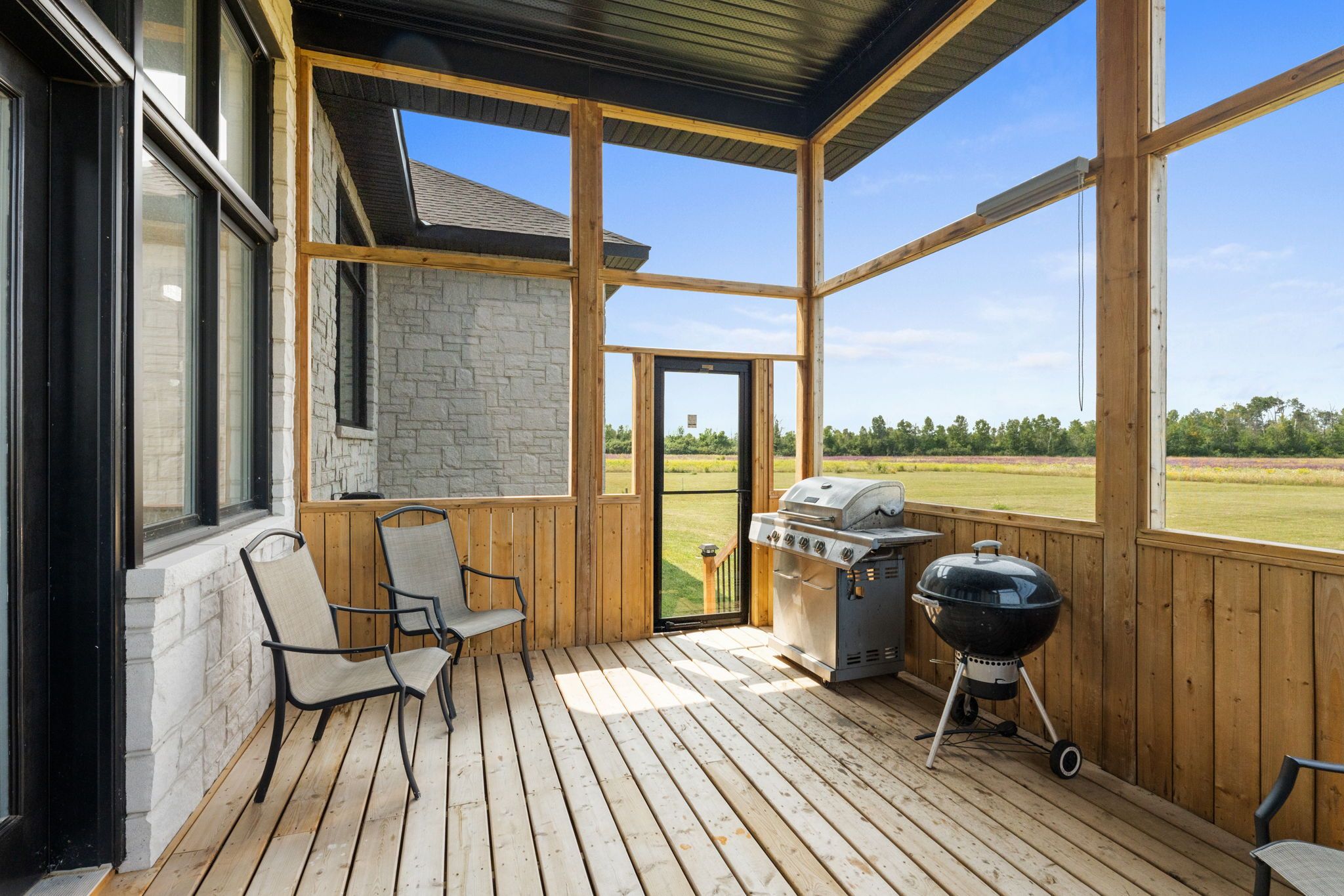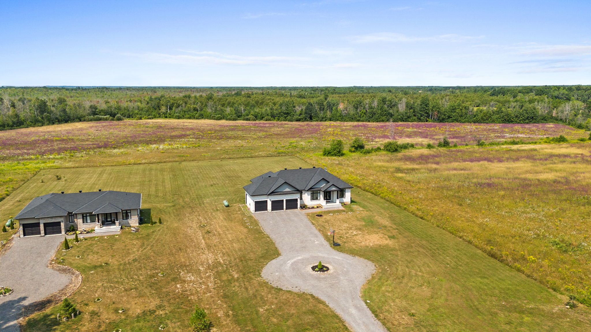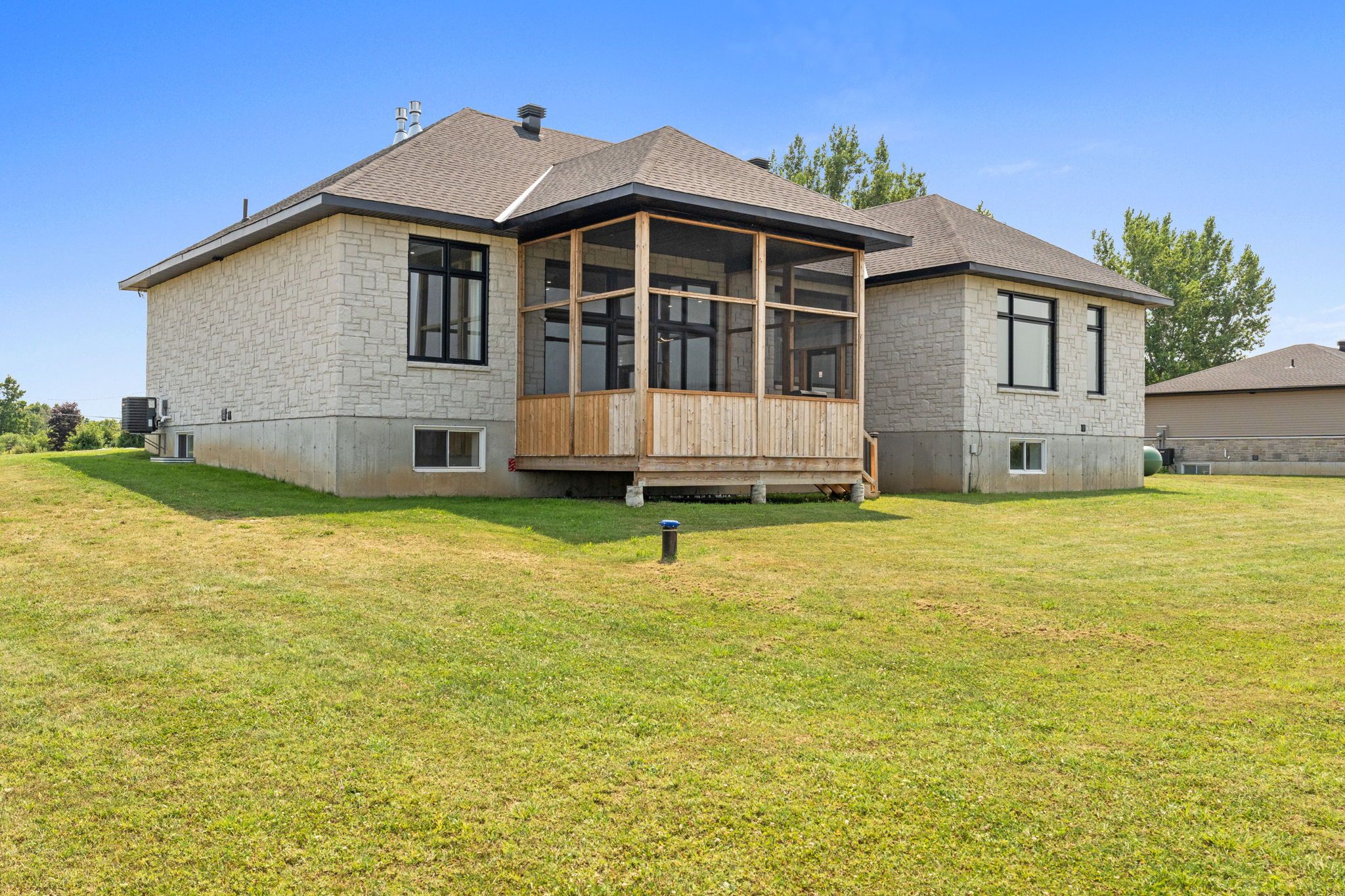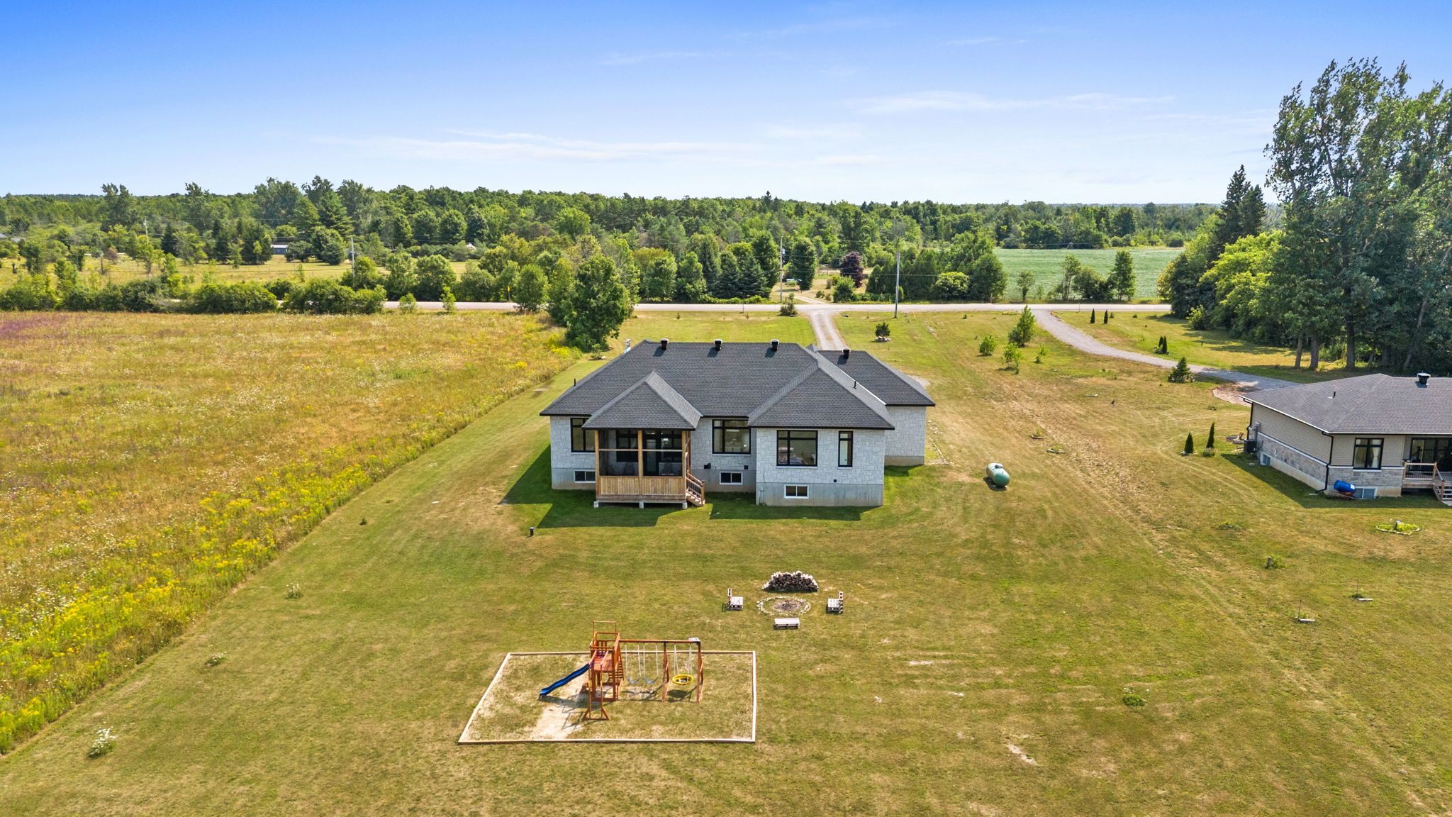 Welcome to this stunning all-stone 5-bedroom, 3-bathroom energy star-rated bungalow (2023), blending timeless style with modern comfort, set on a private 2-acre lot just minutes from historic merrickville. With10ft ceilings on main level and 9ft on lower level. Step inside the beautifully tiled entry and you're greeted with a bright, open layout where the gorgeous chefs kitchen and great room are the heart of the home. Dream kitchen for any cook, custom tall cabinetry, quartz countertops, massive island & breakfast bar, a second sink, plus top-of-the-line stainless appliances. Upgrades include gorgeous light fixtures, beautiful white textured tile backsplash, pot filler tap above stove, and pantry. The great room's 11 ft ceilings, huge windows, stunning hardwood floors, and cozy fireplace create a warm, welcoming space for living and entertaining. The spacious primary suite a walk-in closet and a spa-inspired 5-piece ensuite with a soaker tub and glass shower. Two more bedrooms, plus a flexible room perfect for a home office or den, offer plenty of options for family or guests. A main floor laundry room and a mud room for more functionality. Professionally finished lower level with over 2,000 sq ft, featuring large family room with fireplace, full kitchen/bar, perfect for hosting gatherings or accommodating extended family. Two additional large bedrooms, full bathroom and a huge rec room complete. Outdoors, unwind in the huge screened-in muskoka room while taking in beautiful country views, or enjoy the open yard, future pool, gardens, play, or simply soaking in the peace and quiet. Massive 3-car garage tons room for vehicles, storage, etc. Boasting over 4,000 square feet of finished living space, this home offers the perfect blend of quality, comfort, and privacy, just a minutes from the historic rideau river and town of merrickville with artists, restaurants, shops, dining, waterfall and rideau boat locks. This is truly peaceful paradise, you don't want too miss.