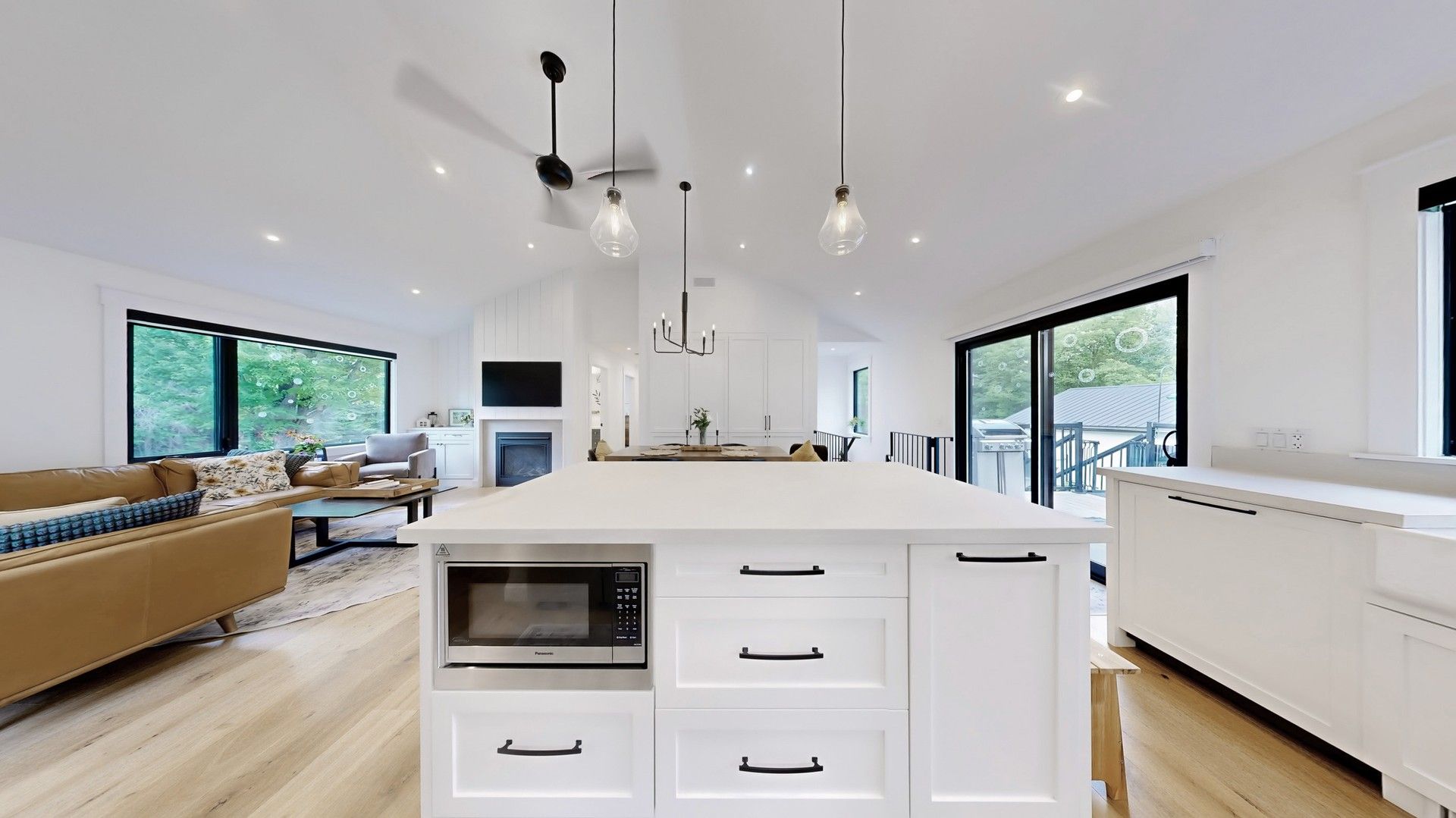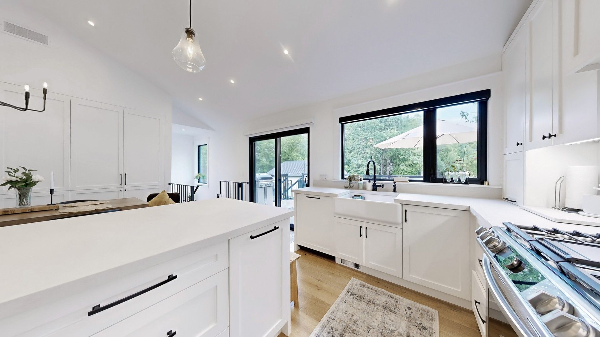 Welcome to this stunning, open concept, 2 bedroom, 3 bathroom bungalow nestled on a private ravine lot. With direct access to nearby hiking trails and surrounded by mature trees, this home offers a rare combination of tranquility and modern living. The main floor features vaulted ceilings, elegant white oak hardwood, custom cabinetry throughout and pot lights that create a bright, welcoming atmosphere. The thoughtfully designed kitchen opens onto a spacious deck with stairs that lead down to large back yard. This gem has been fully renovated, electrical, plumbing, roof, siding, windows, doors, new appliances (all done 2023) the home is generator ready with natural gas hook up. There is a natural gas hook up for your bbq perfect for entertaining. A finished basement provides additional living space with endless possibilities such as a home office, media room or playroom. Smart outdoor security cameras add peace of mind. With 2 driveways and plenty of parking, this property is as functional as it is beautiful. Enjoy great tasting water throughout the house with a comprehensive, low-maintenance water system that includes a saltless water softener, uv light purification and sediment and carbon filters. Water testing done in june 2025, results available upon request. Buyer and buyer agent to verify all measurements and taxes.