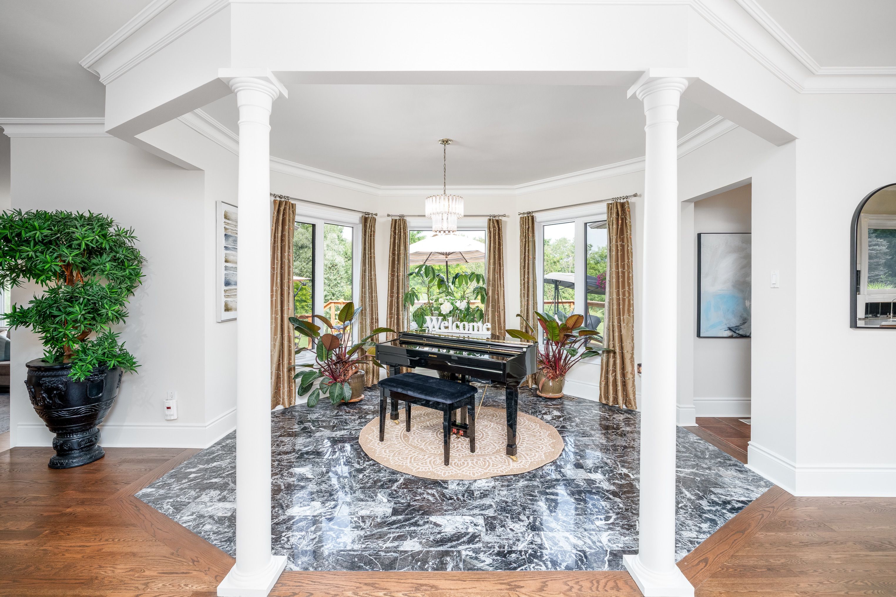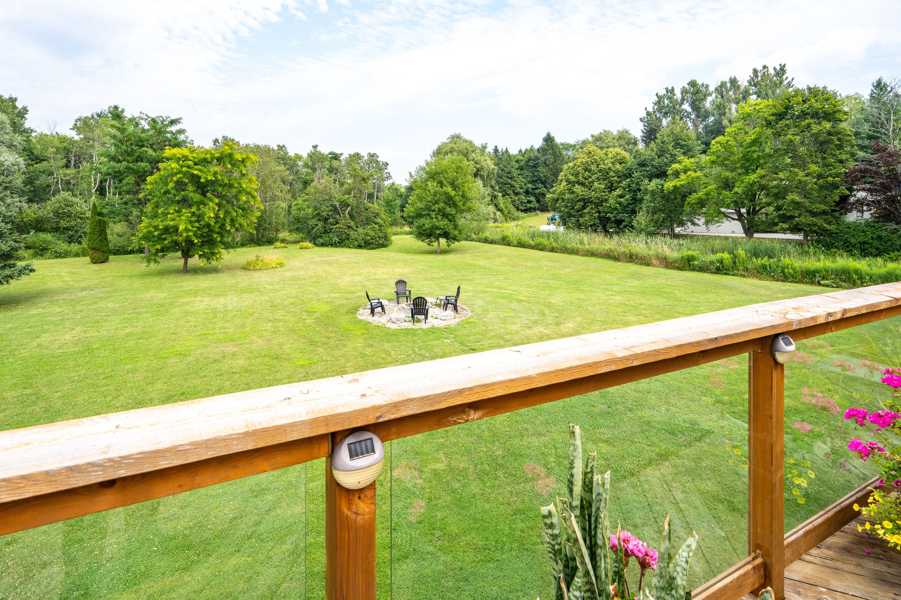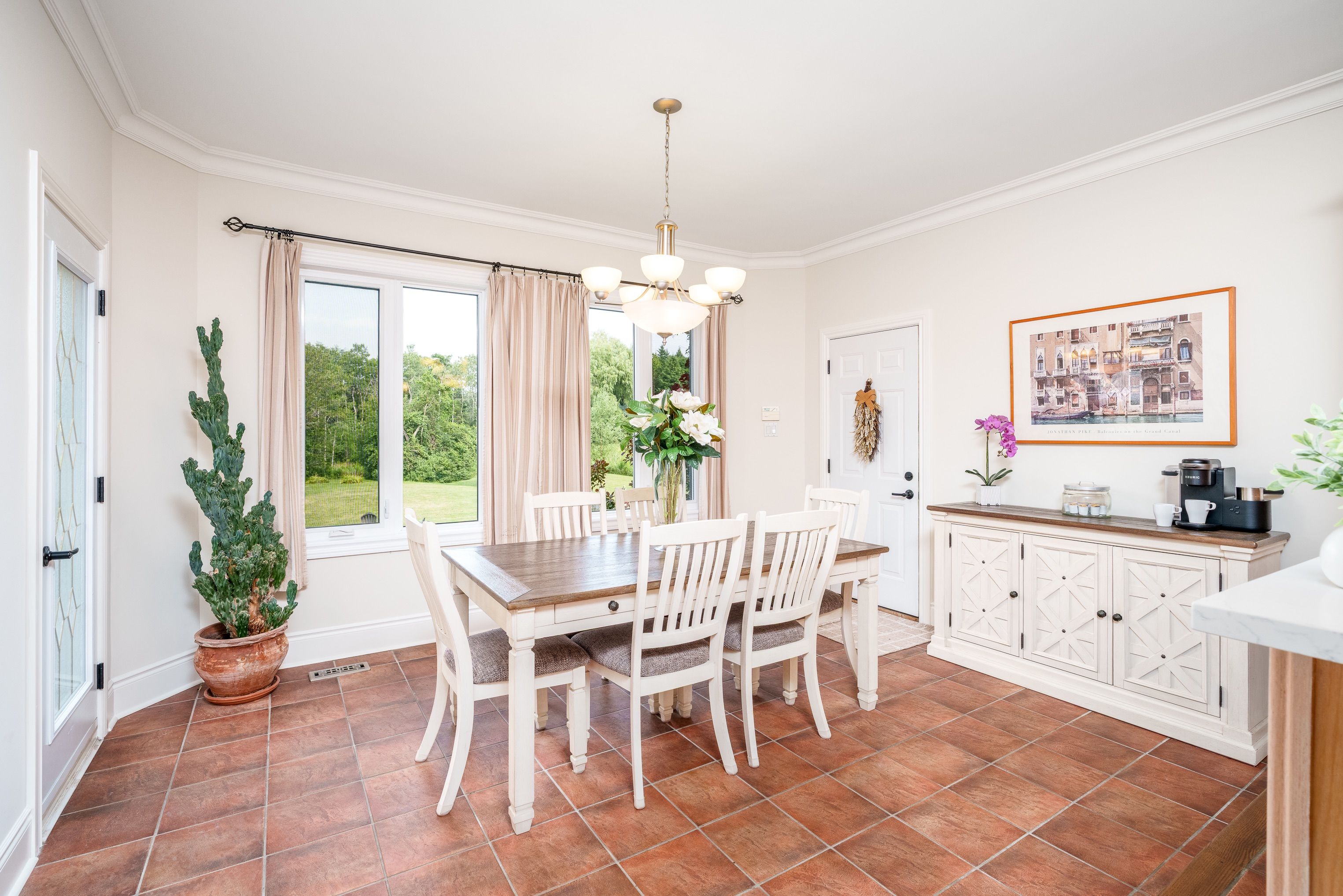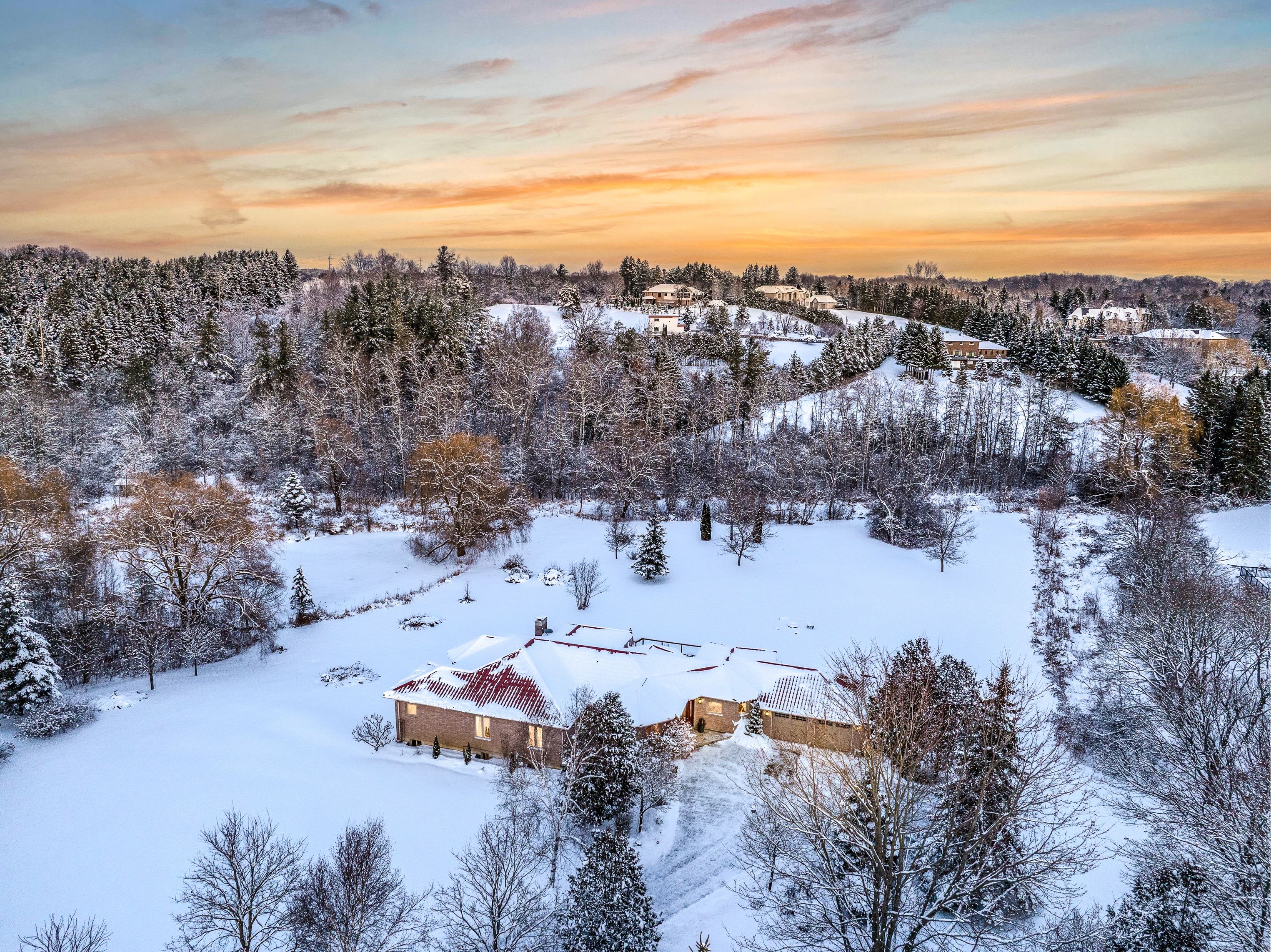 Welcome to this spacious and beautifully updated 3+2 bedroom multigenerational opportunity home offering privacy, functionality, and natural serenity just minutes from town. Nestled on a picturesque lot backing onto humber river catchment area and mature forest, this home features a thoughtfully landscaped backyard oasis complete with multi-level decks, a pond, perennial gardens, and fruit trees including apple and cherry. Step into the grand open-concept foyer with ceramic flooring that flows into a front den perfect for a home office with french doors and large windows overlooking the front gardens. The main level boasts freshly stained hardwood floors, pot lights, and fresh paint throughout. The versatile music room/dining room includes a coffered ceiling and rounded windows for a touch of elegance. The chefs kitchen features ceramic floors, centre island with breakfast bar, a large walkthrough pantry, and stainless steel appliances. The breakfast area provides garage access and a walk-out to the expansive deck, overlooking the tranquil backyard. The living room offers a warm and inviting atmosphere, featuring large sun-filled windows, and a classic wood-burning fireplace framed by custom built-in cabinetry perfect for both cozy nights in and elegant entertaining. Its thoughtful layout and timeless finishes provide a comfortable space that seamlessly blends charm and functionality. The primary bedroom impresses with double doors, walk-in closet, and 4-piece ensuite, while secondary bedrooms offer large closets, beautiful garden views and ample natural light. The newly renovated basement features new concrete flooring throughout, 3-piece roughed-in kitchen & washroom, laundry room, and two separate entrances ideal for in-laws, rental potential, or extended family use. The basement is ready for your personal touch. Only 5 minutes to king village, schools, shopping, and restaurants, this home combines true country charmwith urban convenience.
