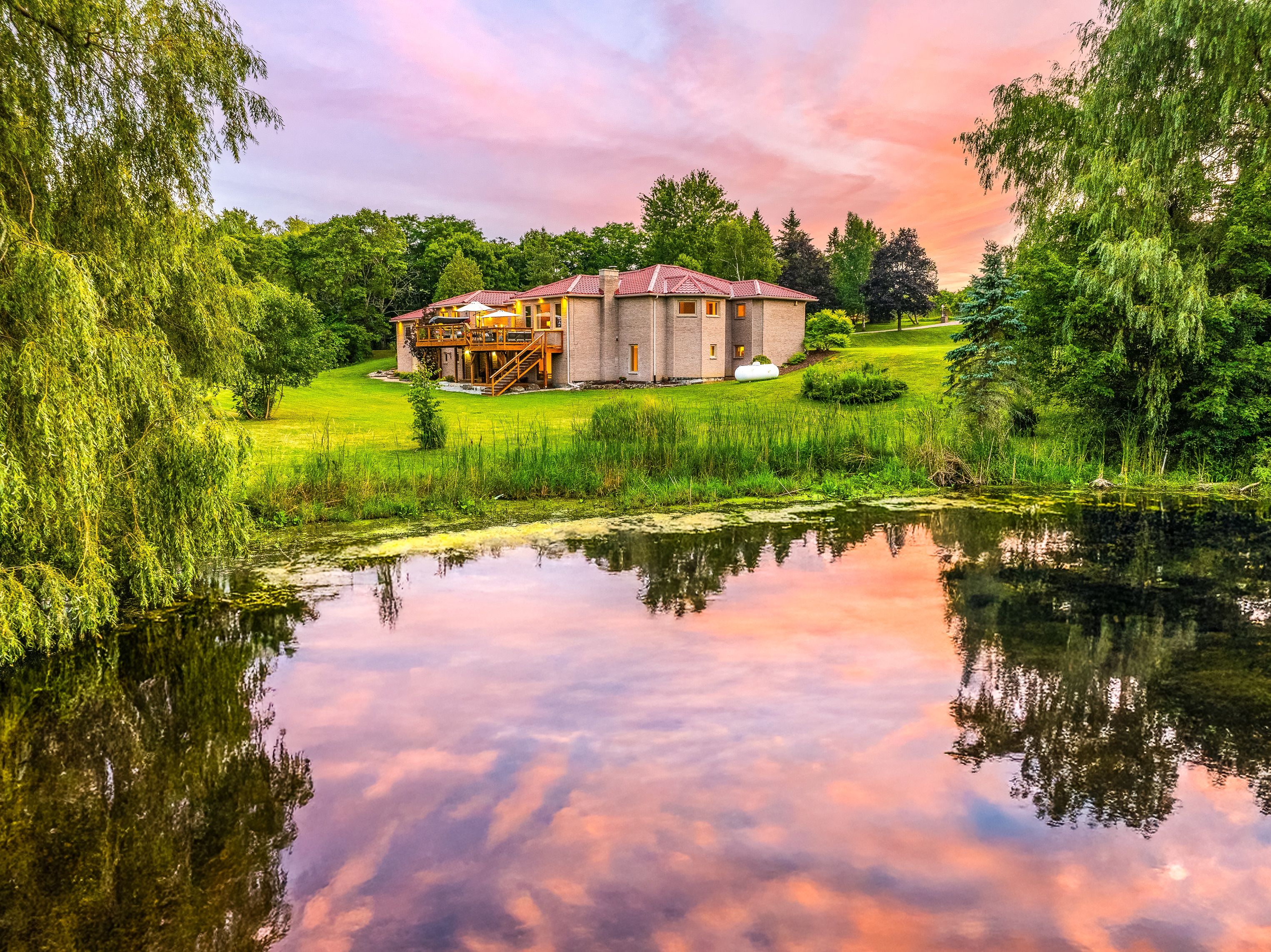Welcome to this spacious and beautifully updated 3+2 bedroom multigenerational opportunity home offering privacy, functionality, and natural serenity just minutes from town. Nestled on a picturesque lot backing onto humber river catchment area and mature forest, this home features a thoughtfully landscaped backyard oasis complete with multi-level decks, a pond, perennial gardens, and fruit trees including apple and cherry. Step into the grand open-concept foyer with ceramic flooring that flows into a front den perfect for a home office with french doors and large windows overlooking the front gardens. The main level boasts freshly stained hardwood floors, pot lights, and fresh paint throughout. The versatile music room/dining room includes a coffered ceiling and rounded windows for a touch of elegance. The chefs kitchen features ceramic floors, centre island with breakfast bar, a large walkthrough pantry, and stainless steel appliances. The breakfast area provides garage access and a walk-out to the expansive deck, overlooking the tranquil backyard. The living room offers a warm and inviting atmosphere, featuring large sun-filled windows, and a classic wood-burning fireplace framed by custom built-in cabinetry perfect for both cozy nights in and elegant entertaining. Its thoughtful layout and timeless finishes provide a comfortable space that seamlessly blends charm and functionality. The primary bedroom impresses with double doors, walk-in closet, and 4-piece ensuite, while secondary bedrooms offer large closets, beautiful garden views and ample natural light. The newly renovated basement features new concrete flooring throughout, 3-piece roughed-in kitchen & washroom, laundry room, and two separate entrances ideal for in-laws, rental potential, or extended family use. The basement is ready for your personal touch. Only 5 minutes to king village, schools, shopping, and restaurants, this home combines true country charmwith urban convenience.