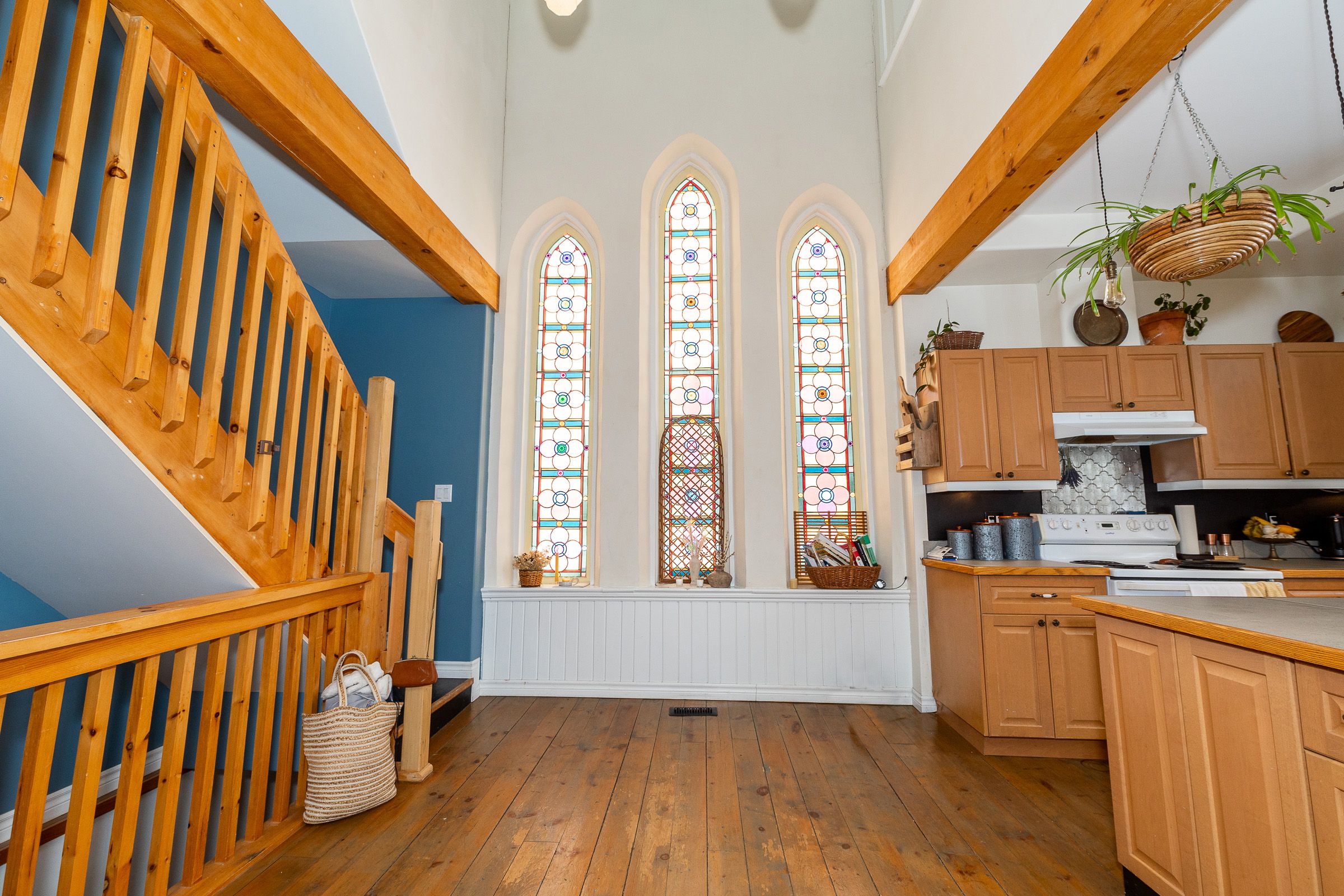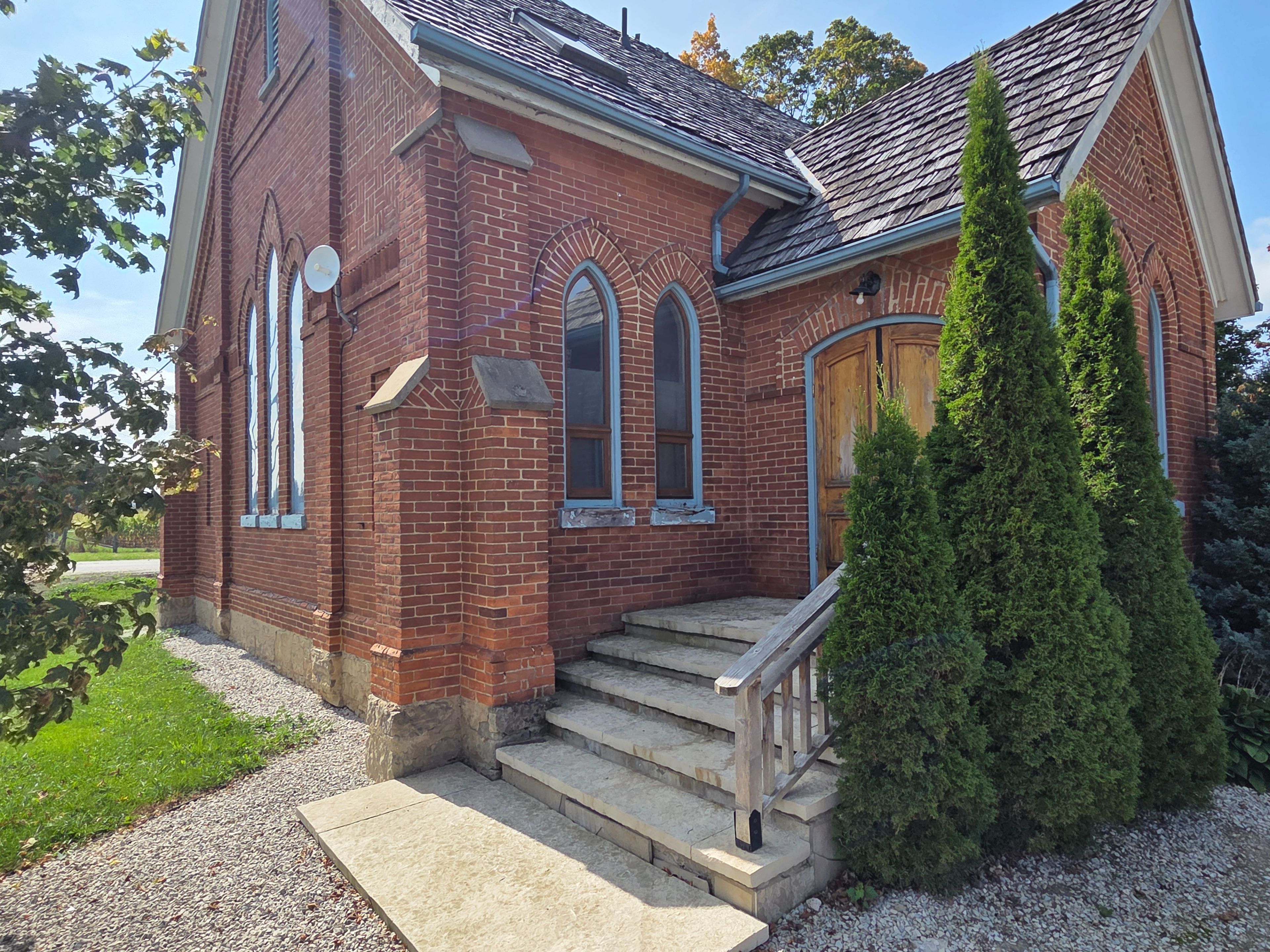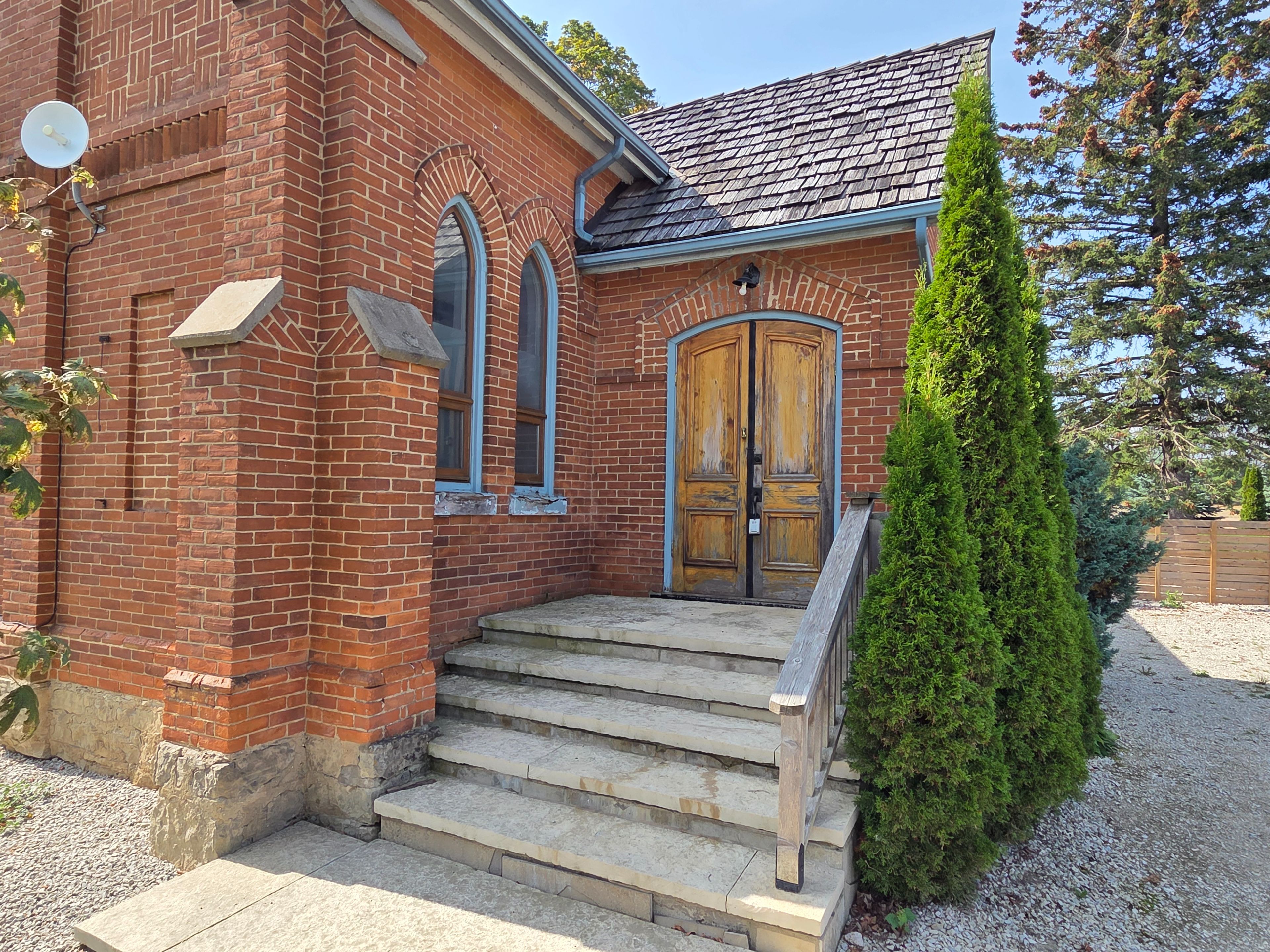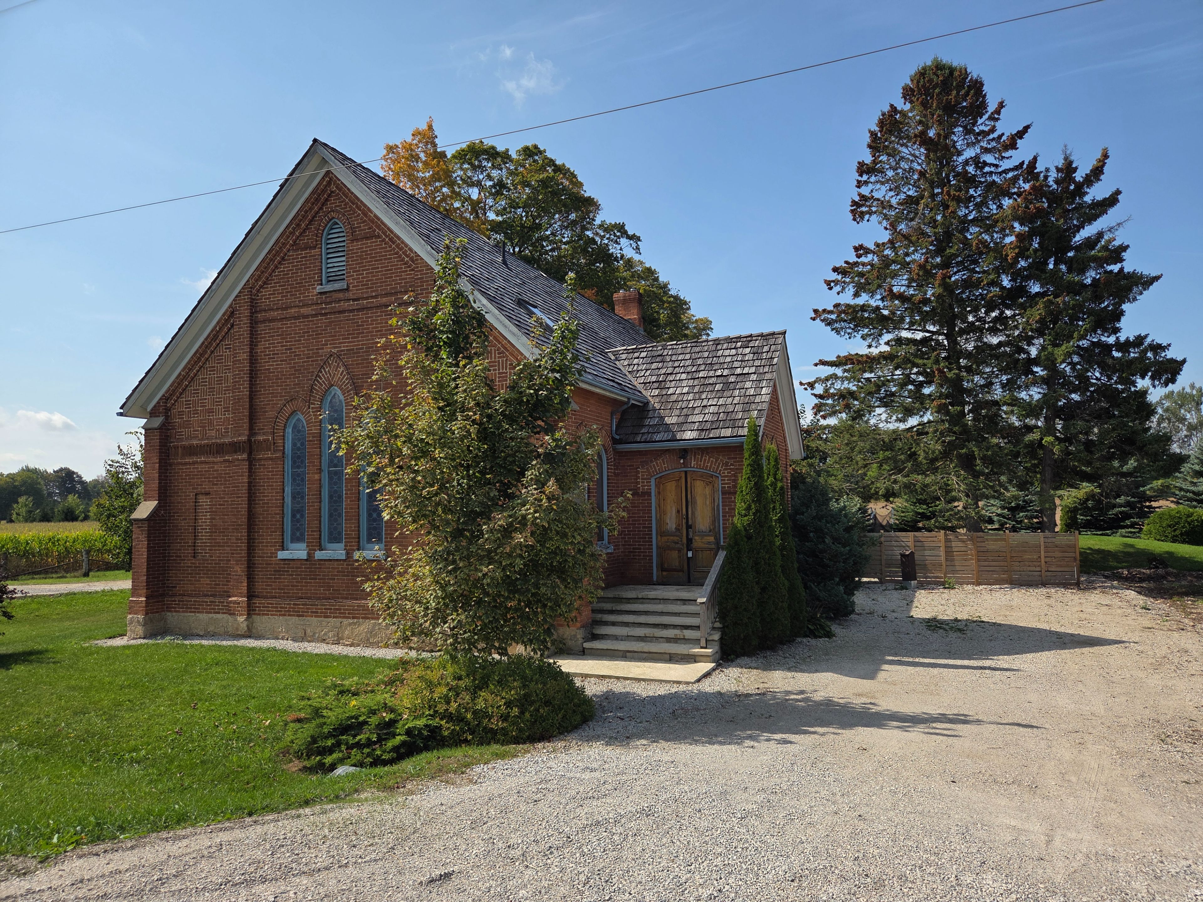 Own a piece of history with this professionally converted knox church home, set atop scenic scotch mountain on half an acre and surrounded by rolling farmland. Renovated in 2008, the home preserves its historic character while incorporating modern updates, showcasing vaulted ceilings, stained glass windows, and hardwood floors throughout. The main living area is expansive, anchored by a wood-burning fireplace that adds warmth and charm. The open-concept kitchen, living, and dining spaces create an inviting setting for both everyday living and entertaining, while a spacious mudroom adds practical function at the entrance. The second level features generously sized bedrooms and a full bathroom with convenient laundry, along with the added benefit of two separate staircases for flexible access. A second full bathroom is located on the main floor for added convenience. Outside, the timeless red brick exterior is complemented by a cedar shake roof, a large level yard, and a back patio ideal for relaxing or entertaining, all set on a paved country road. Ideally situated with easy access to meaford, owen sound, the blue mountains, and markdale, this distinctive property offers peaceful country living within reach of town amenities.