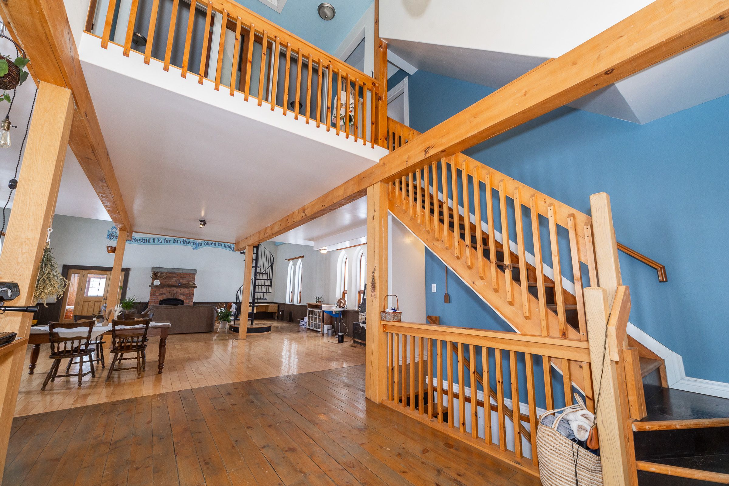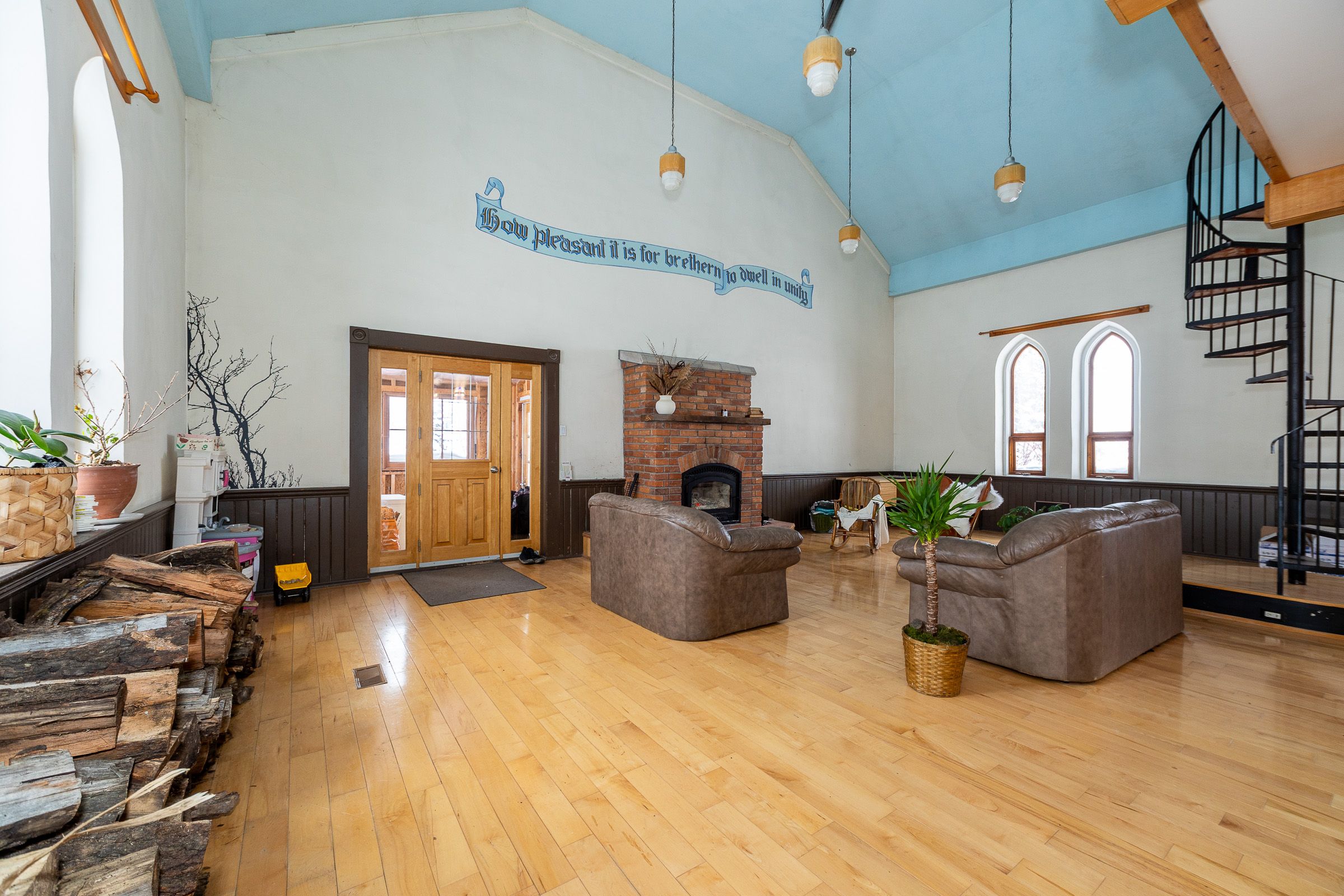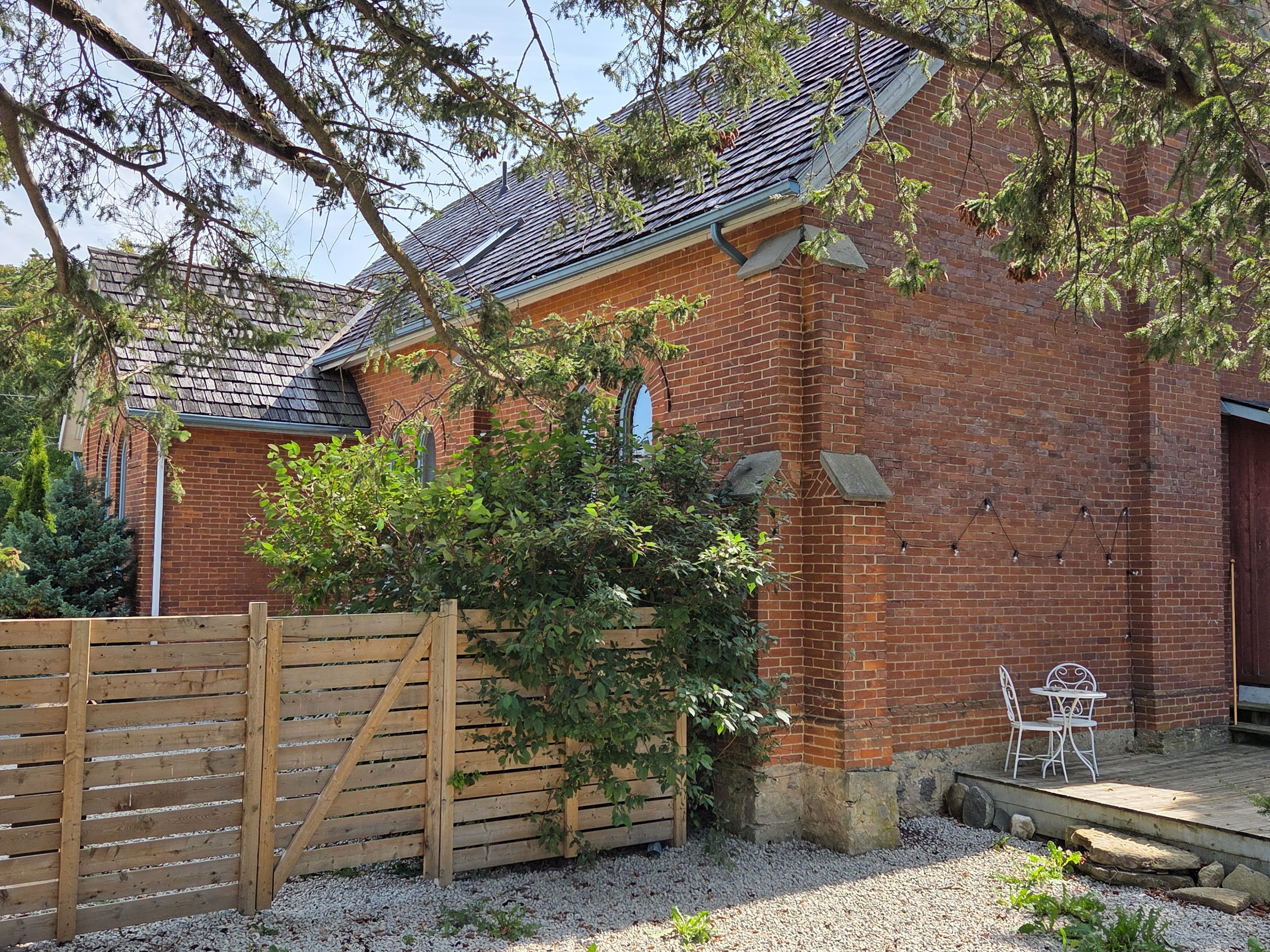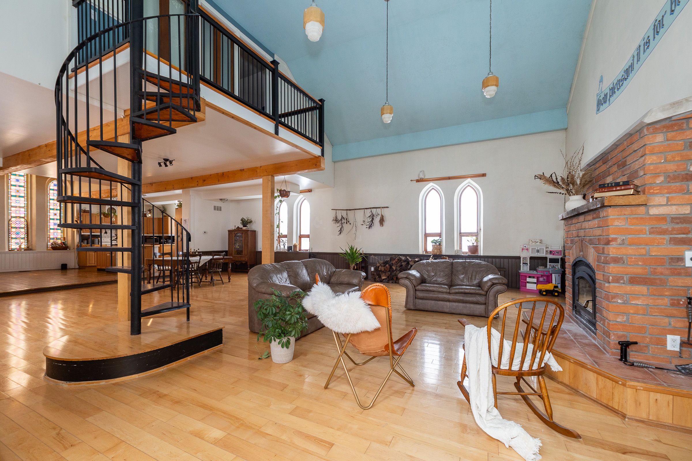 Own a piece of history with this professionally converted knox church home, set atop scenic scotch mountain on half an acre and surrounded by rolling farmland. Renovated in 2008, the home preserves its historic character while incorporating modern updates, showcasing vaulted ceilings, stained glass windows, and hardwood floors throughout. The main living area is expansive, anchored by a wood-burning fireplace that adds warmth and charm. The open-concept kitchen, living, and dining spaces create an inviting setting for both everyday living and entertaining, while a spacious mudroom adds practical function at the entrance. The second level features generously sized bedrooms and a full bathroom with convenient laundry, along with the added benefit of two separate staircases for flexible access. A second full bathroom is located on the main floor for added convenience. Outside, the timeless red brick exterior is complemented by a cedar shake roof, a large level yard, and a back patio ideal for relaxing or entertaining, all set on a paved country road. Ideally situated with easy access to meaford, owen sound, the blue mountains, and markdale, this distinctive property offers peaceful country living within reach of town amenities.